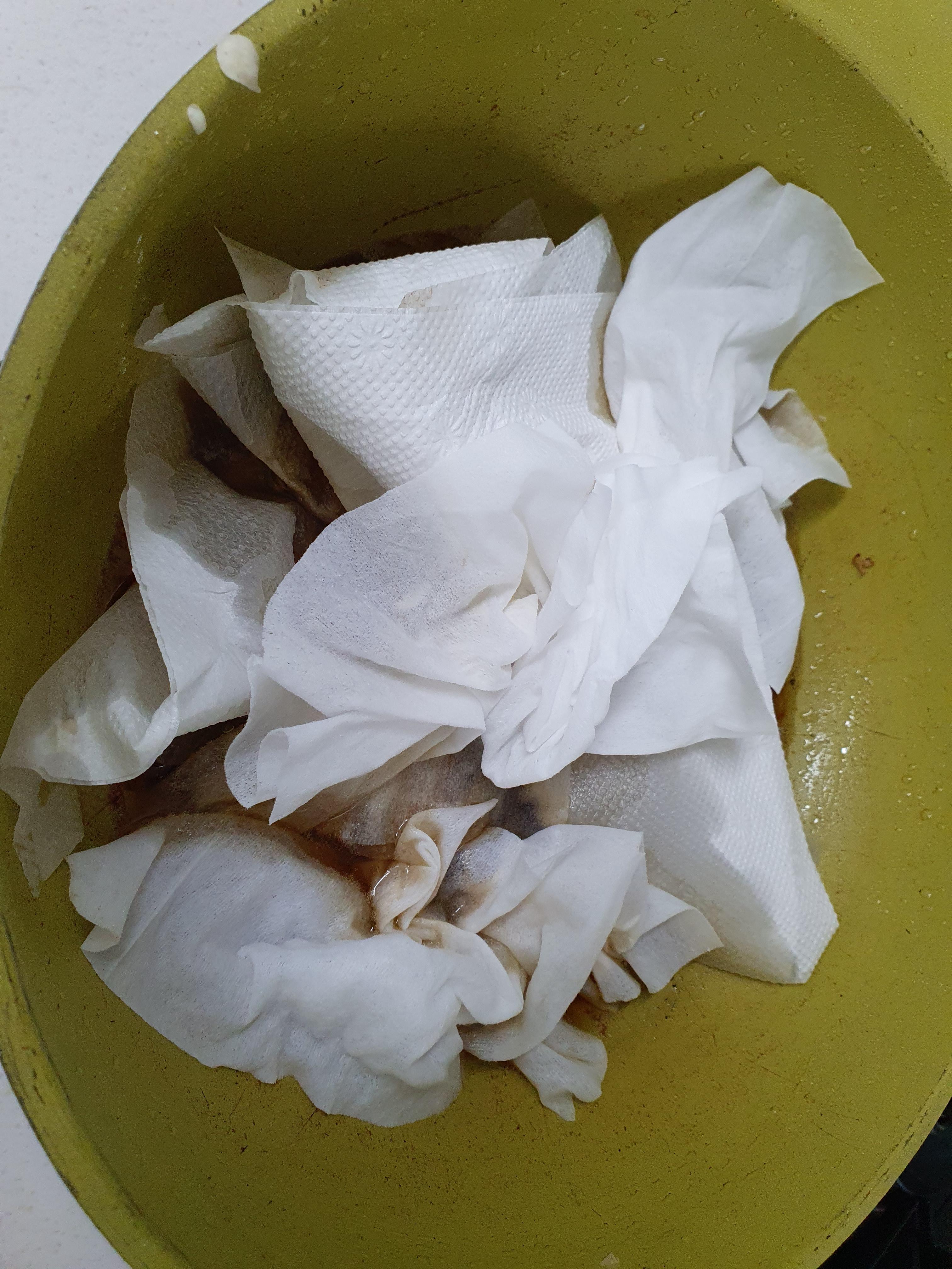 기름에 키친타월이나 물티슈를 넣어서 기름을 흡수하거나