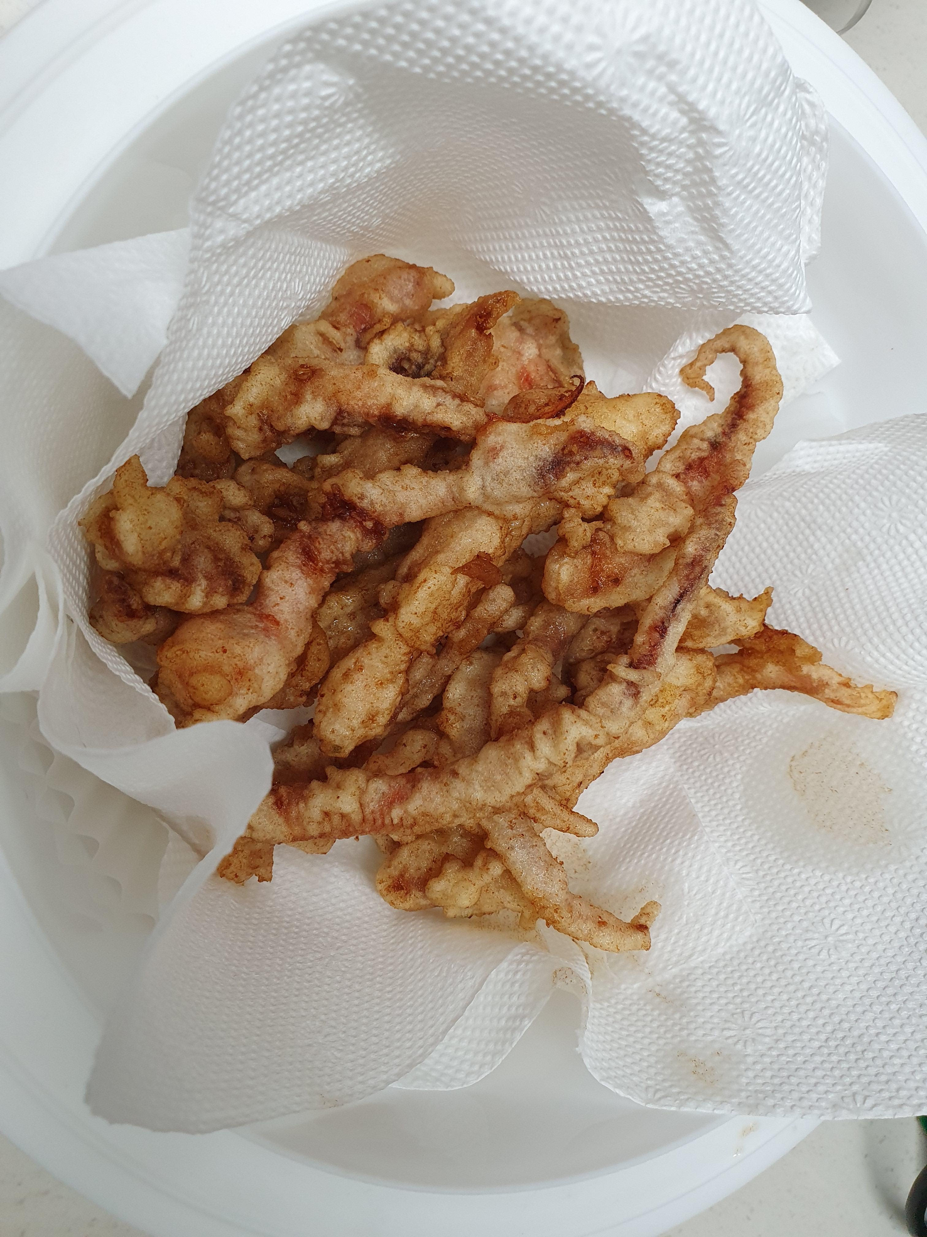 이번에는 오징어를 튀겨 볼까요? 단, 오징어는 계란옷을 입히지 않습니다.