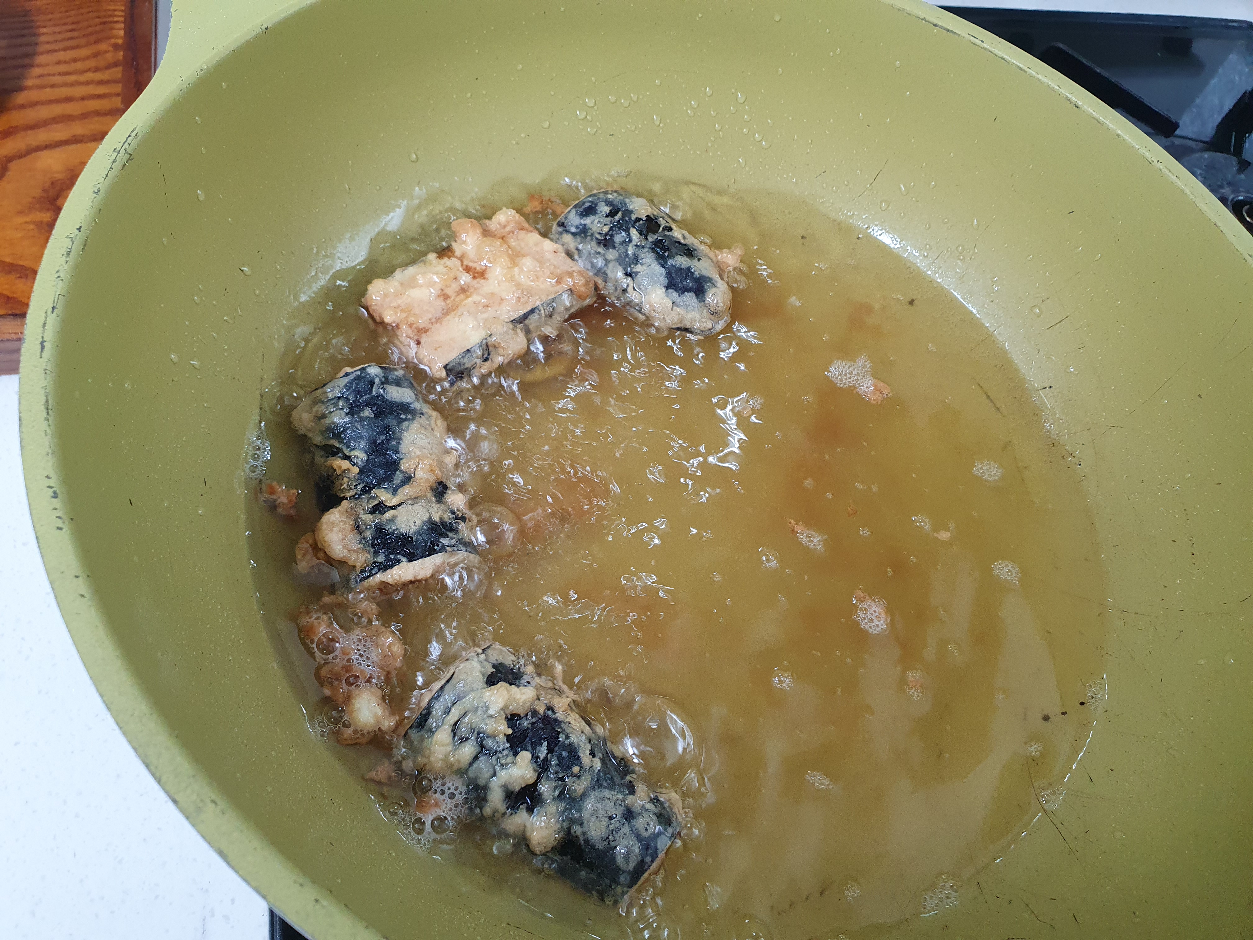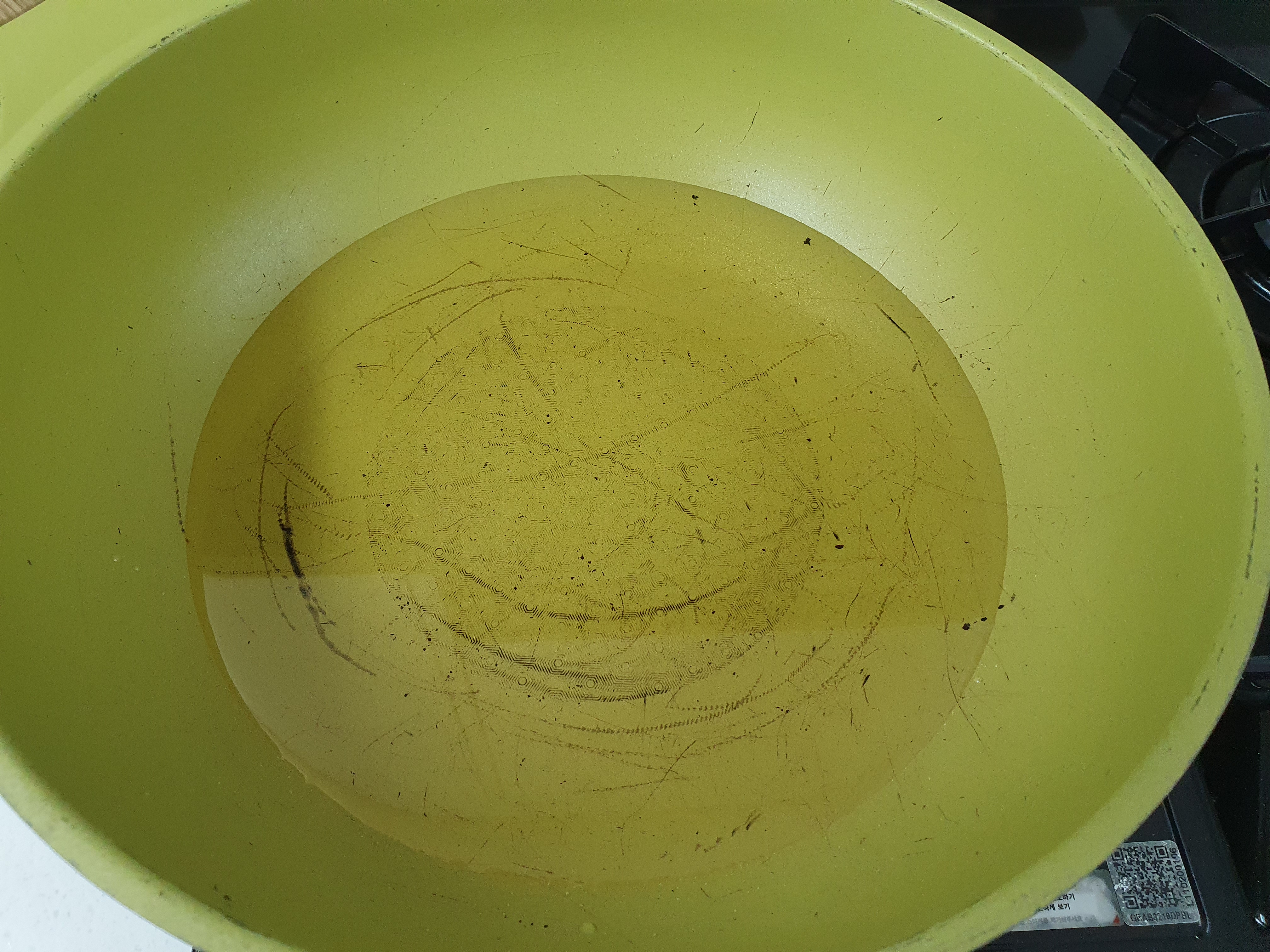 기름은 집에 있는 카놀라유를 사용했습니다. 기름이 먼저 가열해 놓습니다.