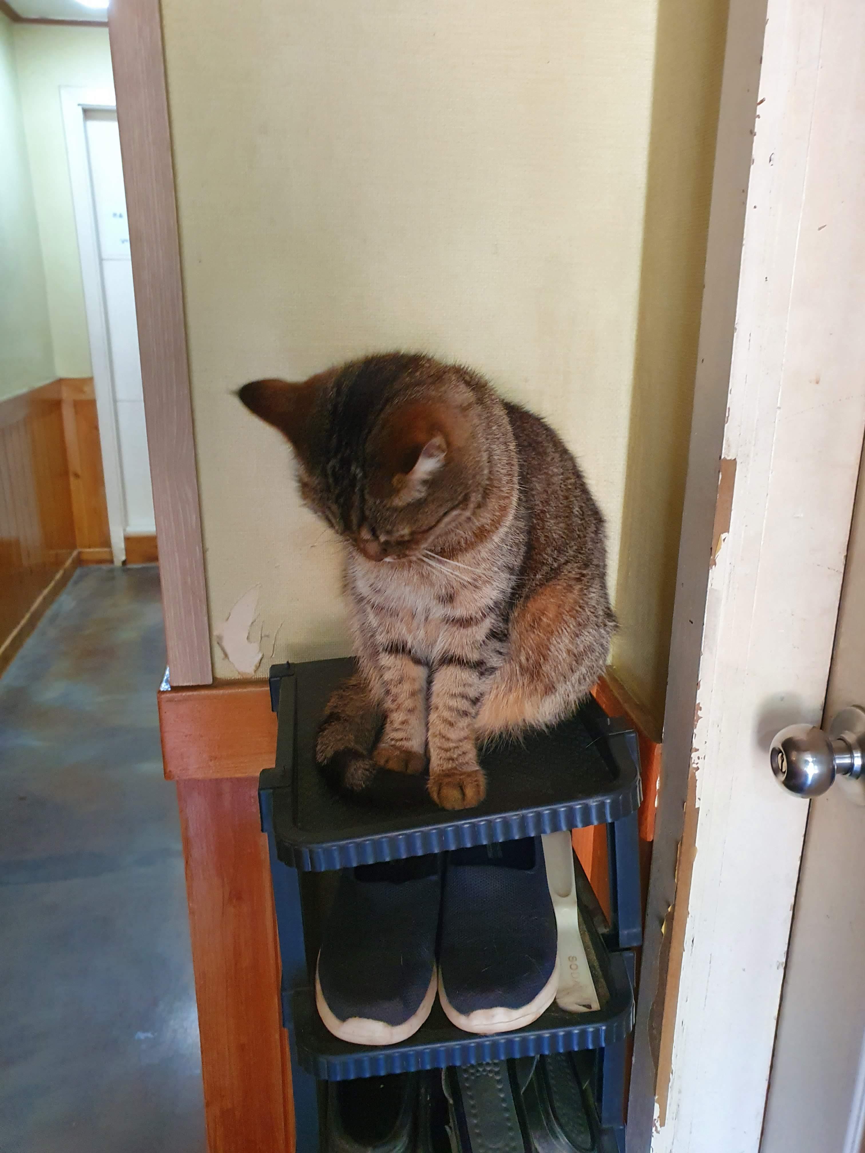 현관문을 들어서면서부터 고양이들을 볼 수가 있죠. 아주 편안하게 자고 있는 고양이를 보니 마음도 편해지네요.