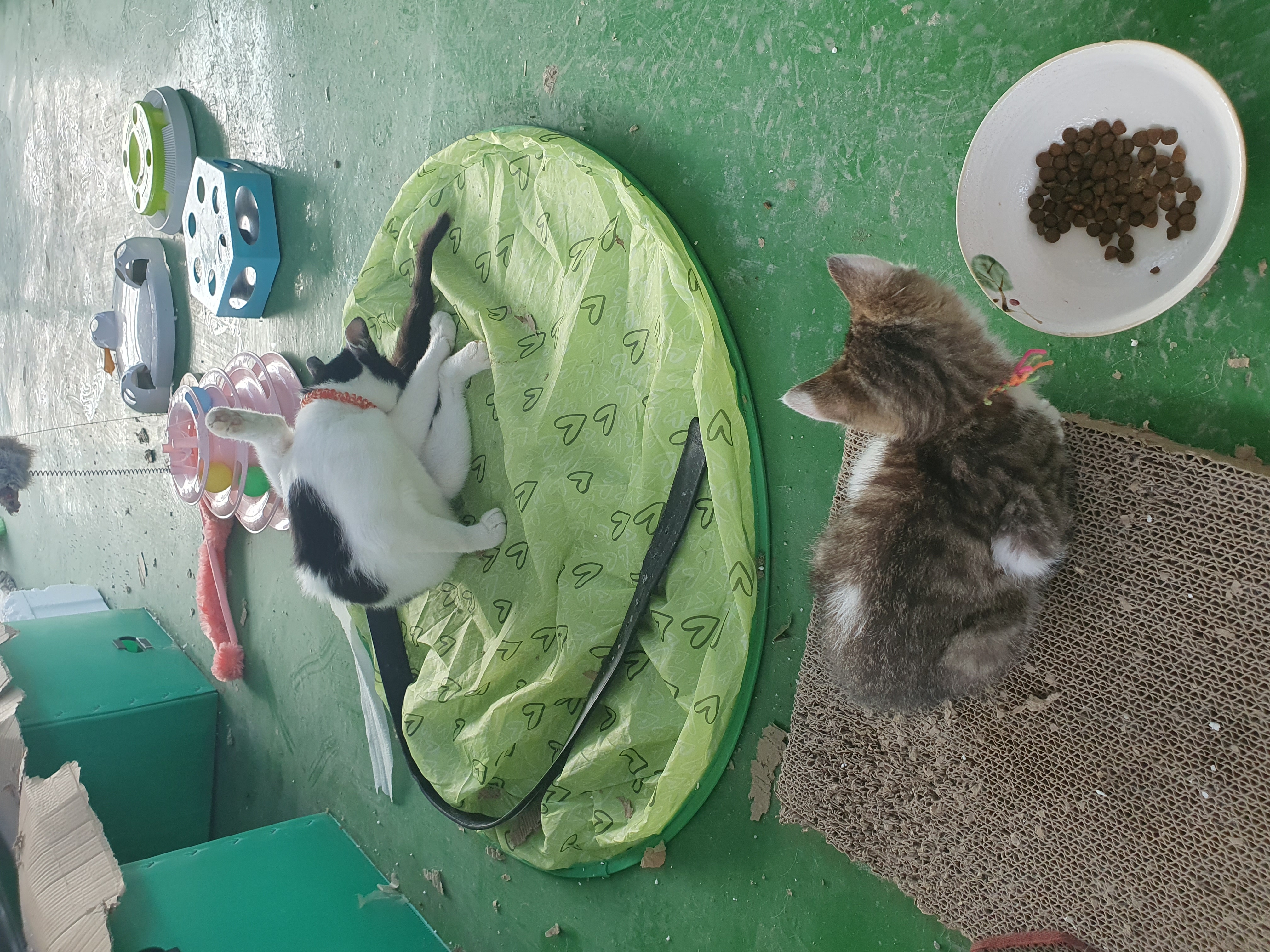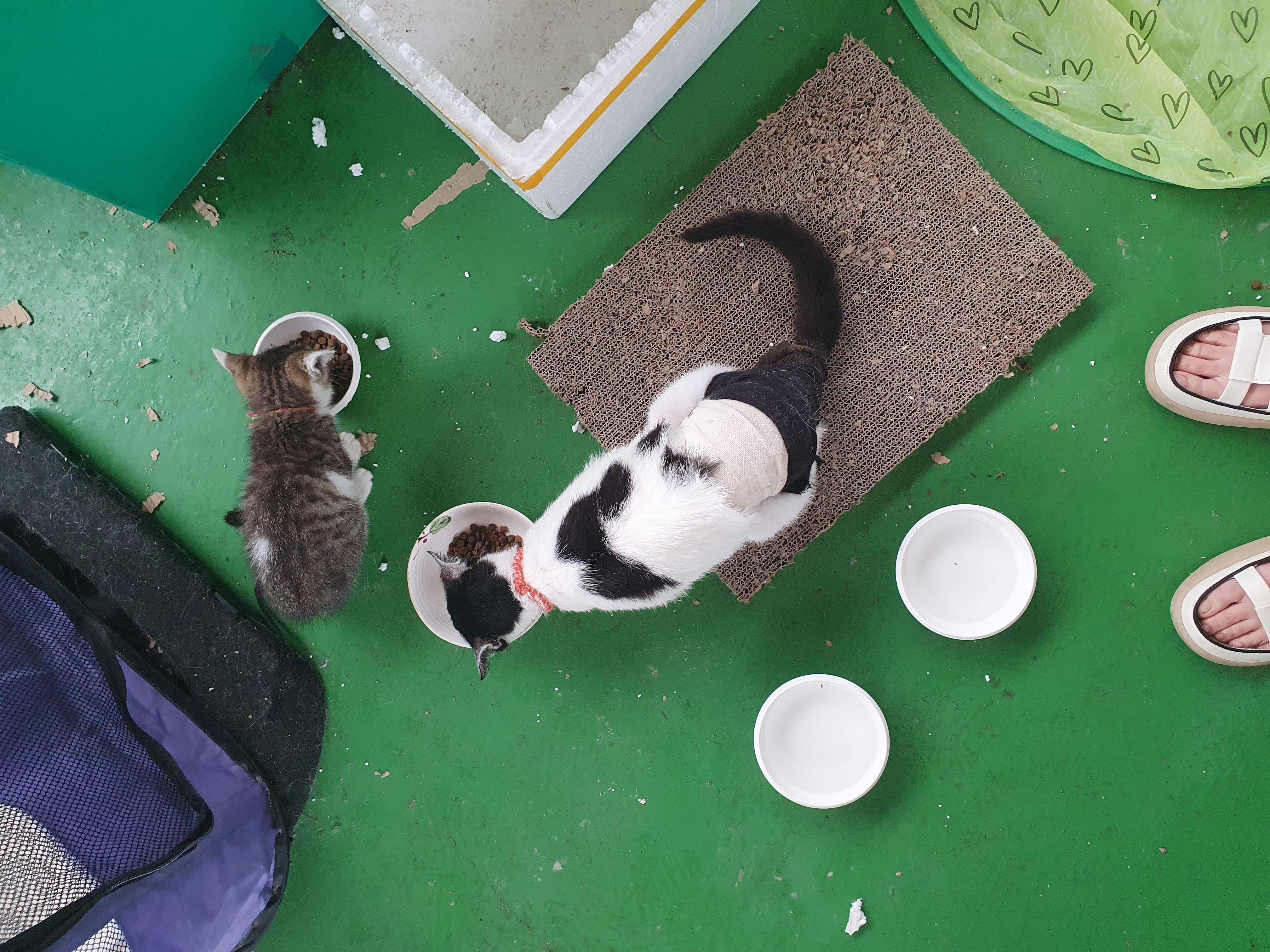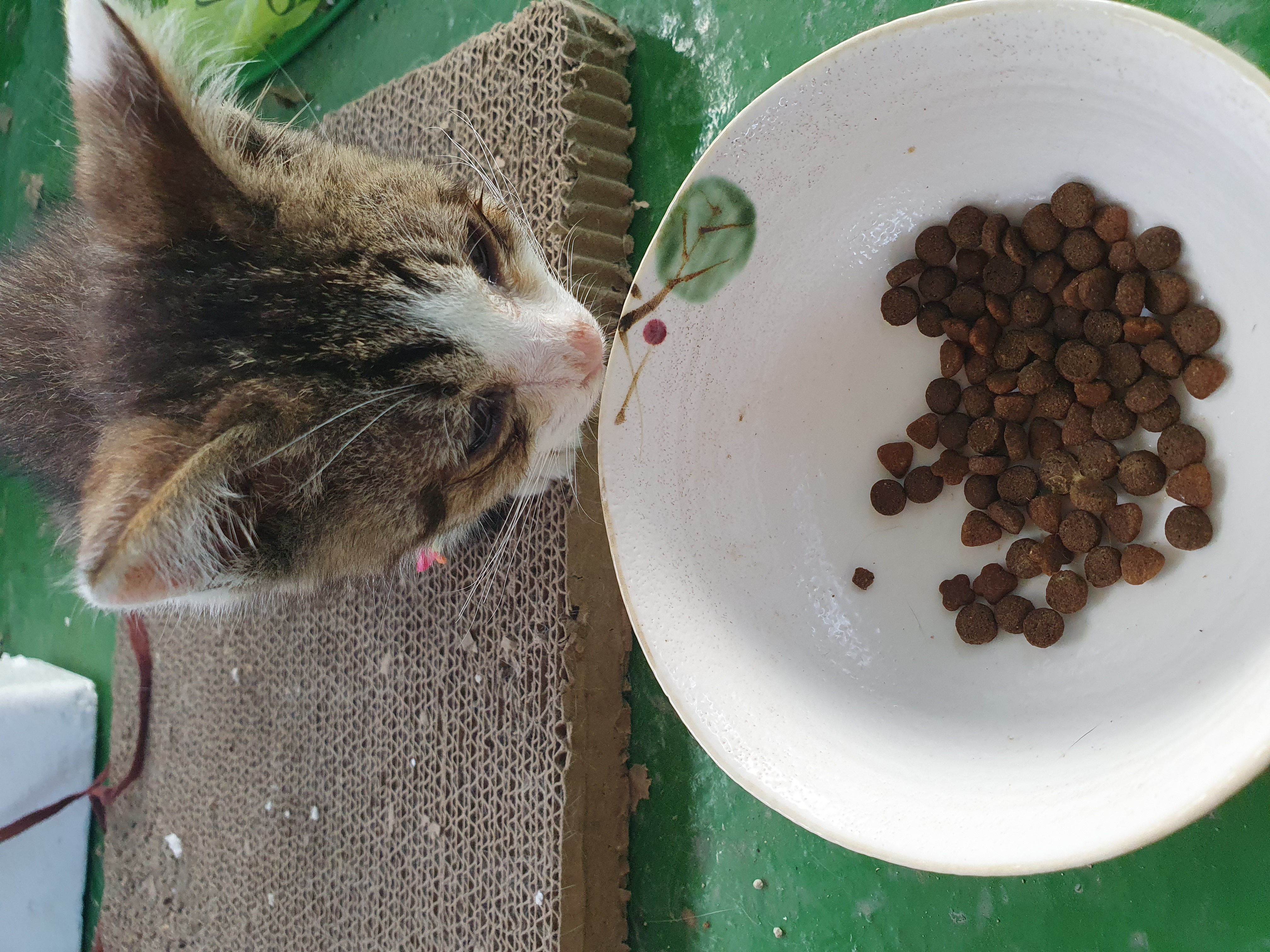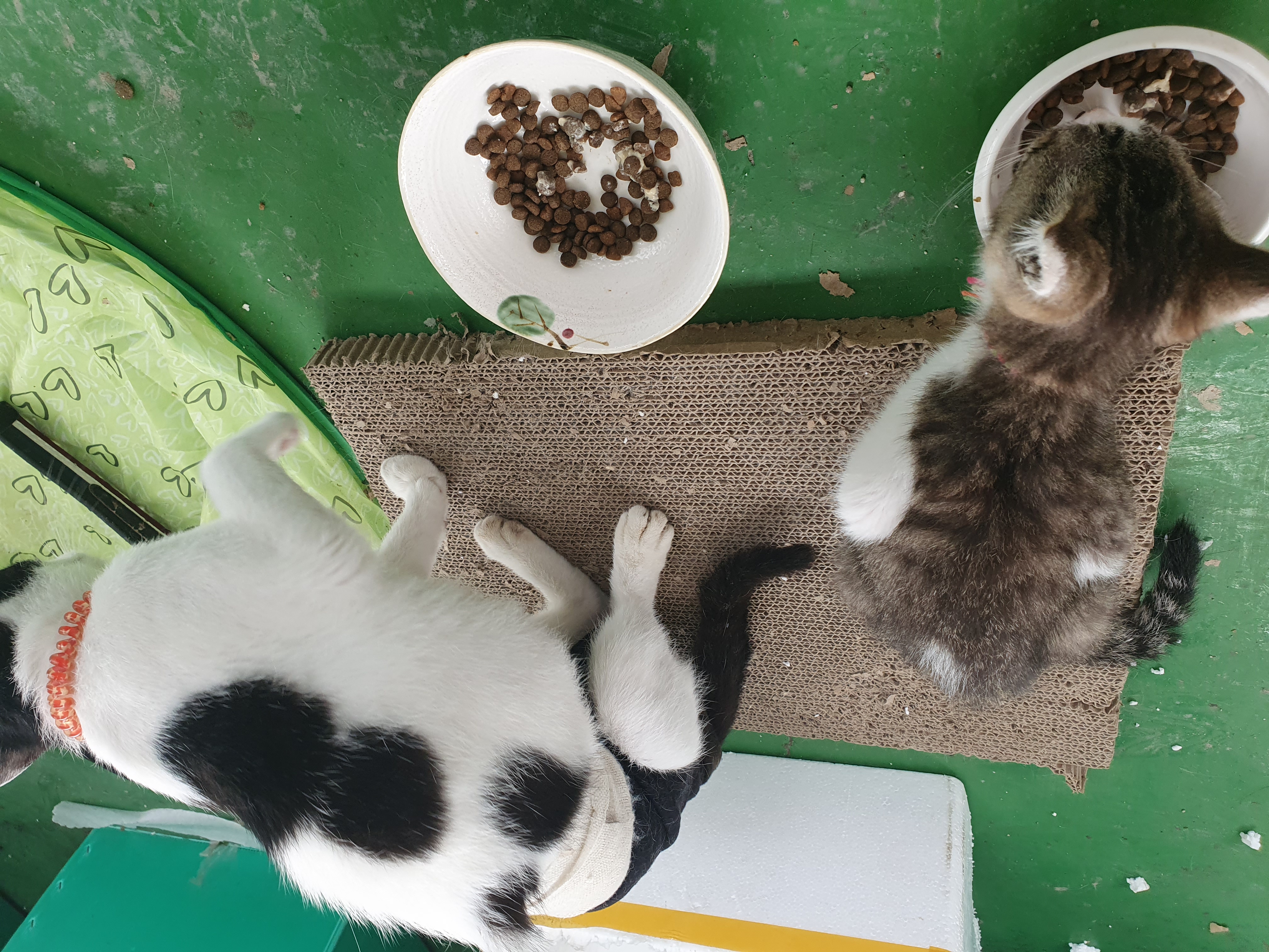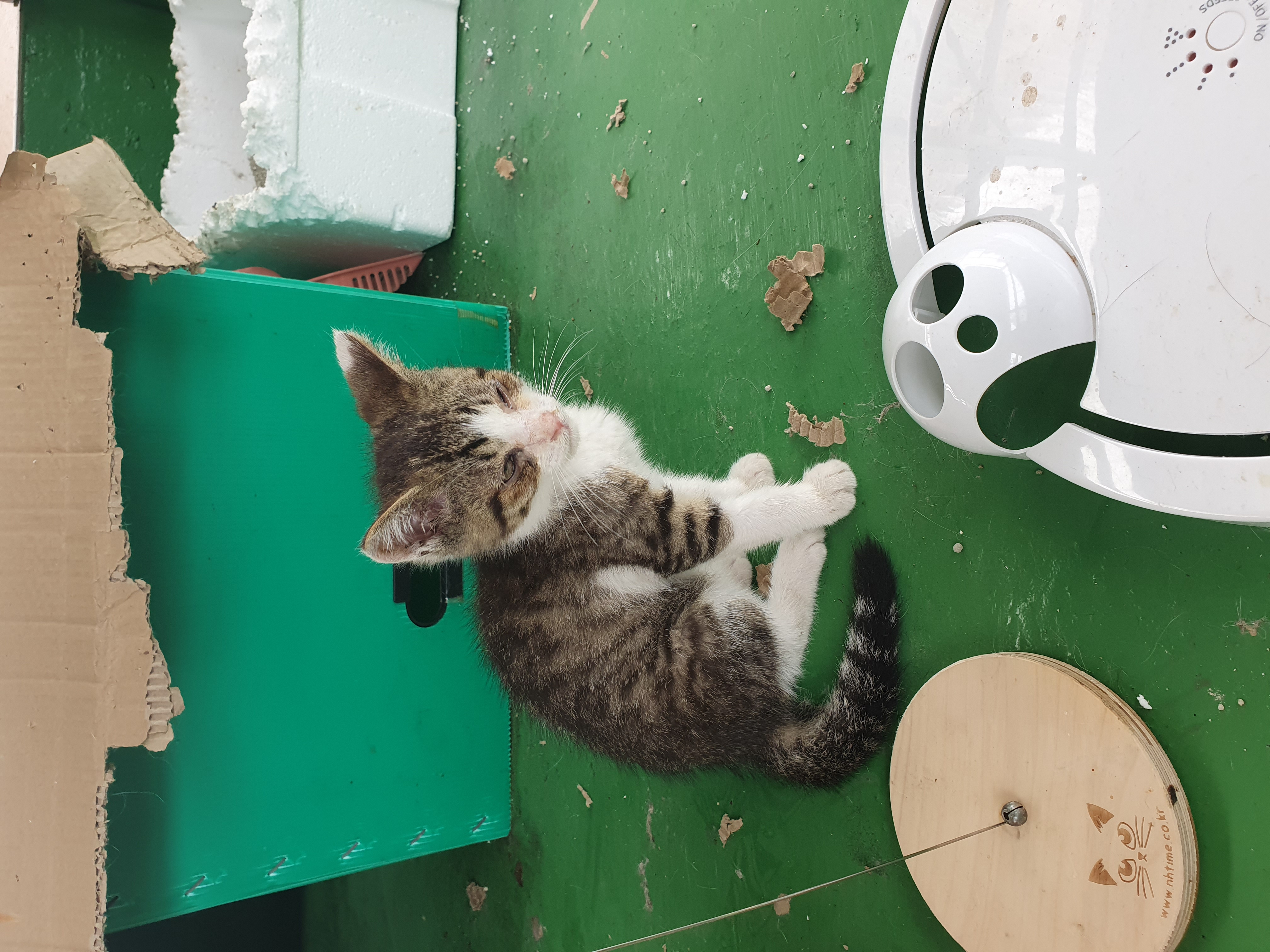 실제는 바로 사료는 먹지 않고, 사료 앞에서 발을 긁기만 해요~