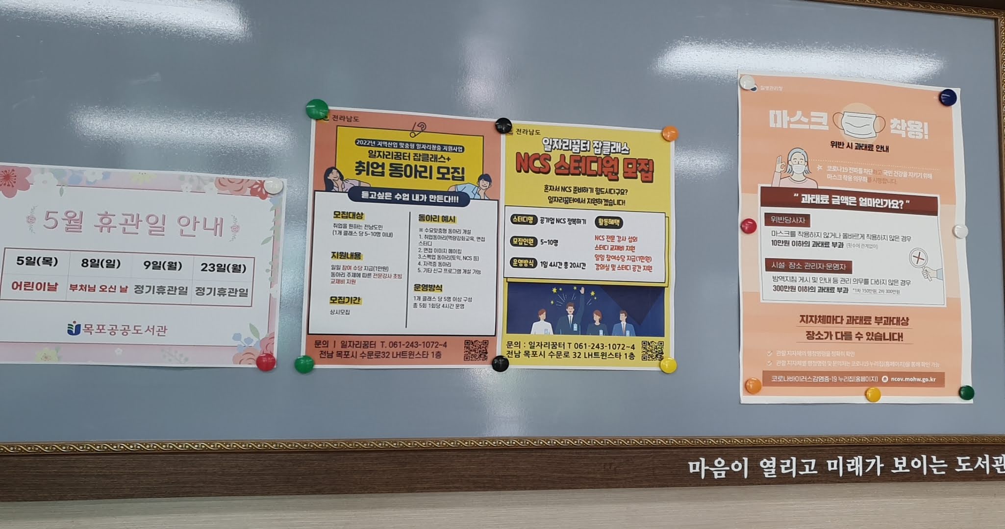 2층 게시판에는 스터디나 동아리 모집 등이 붙어 있었습니다.