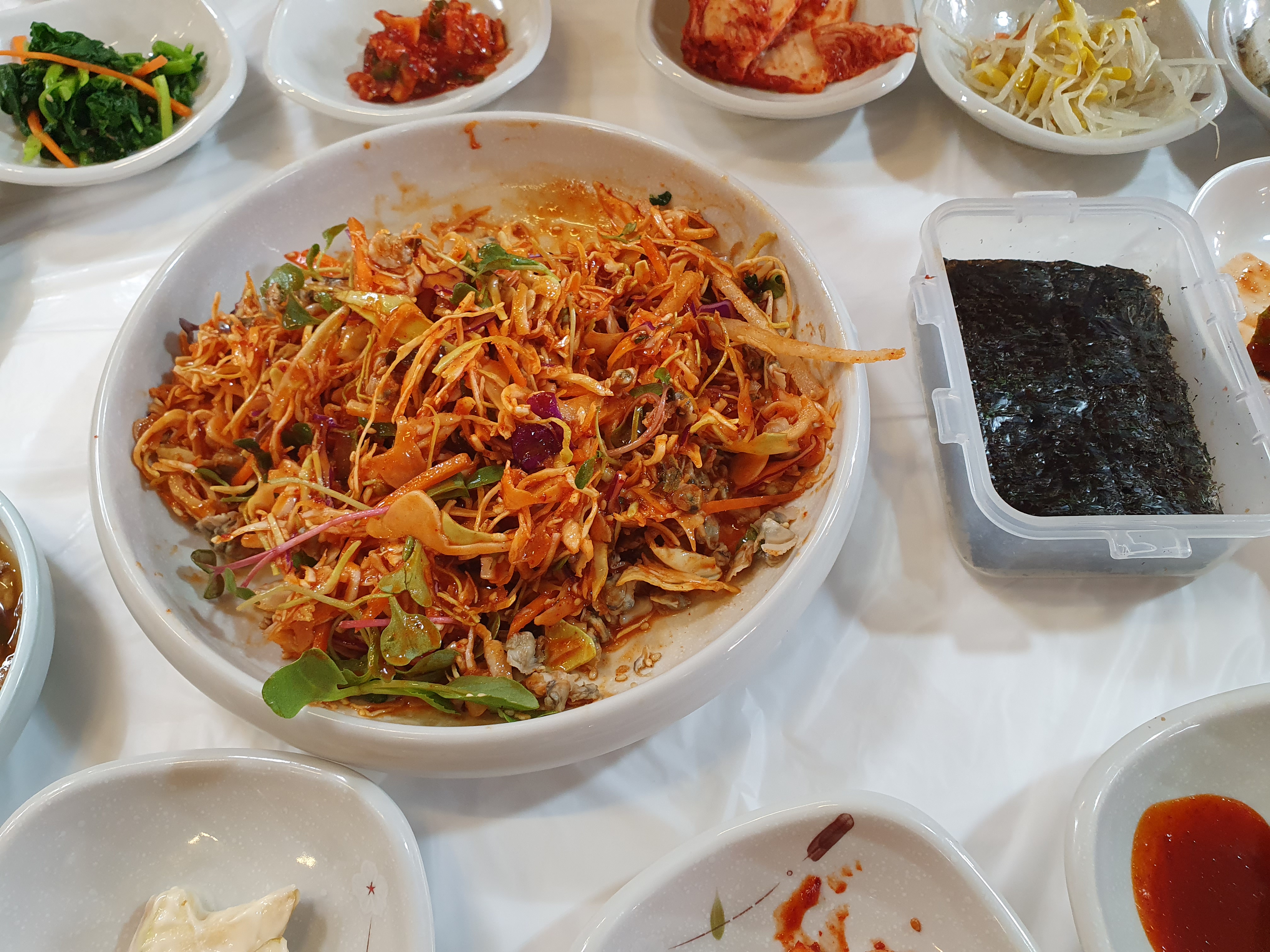 재첩국과 재첩무침도 맛있었습니다. 재첩무침은 김을 싸먹으면 맛있습니다.