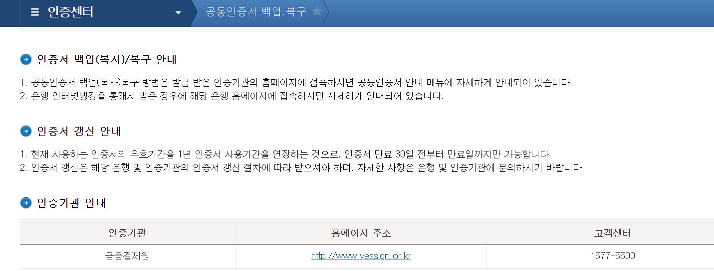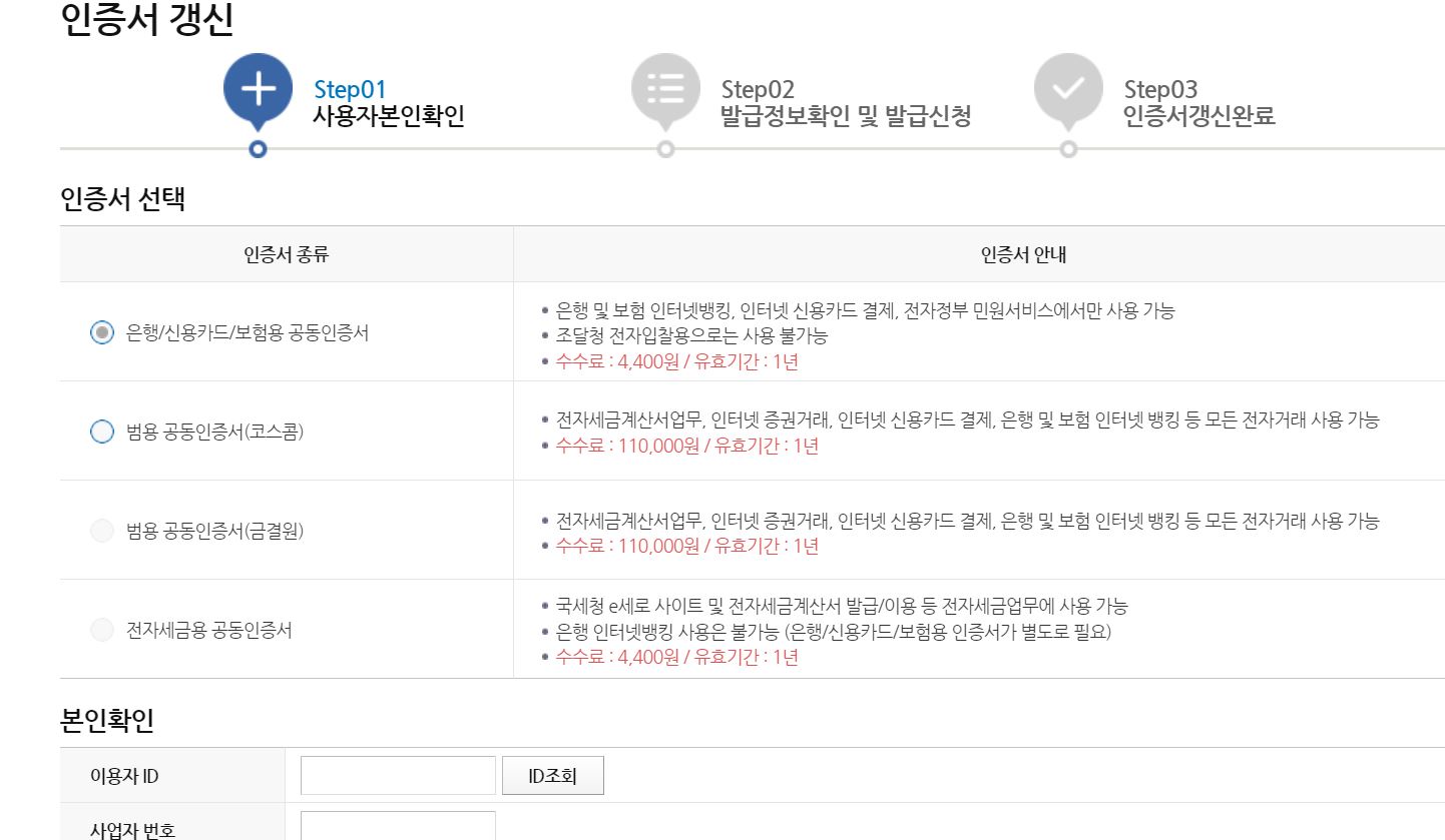 사업자용금융인증서는 갱신을 해야 되었다.