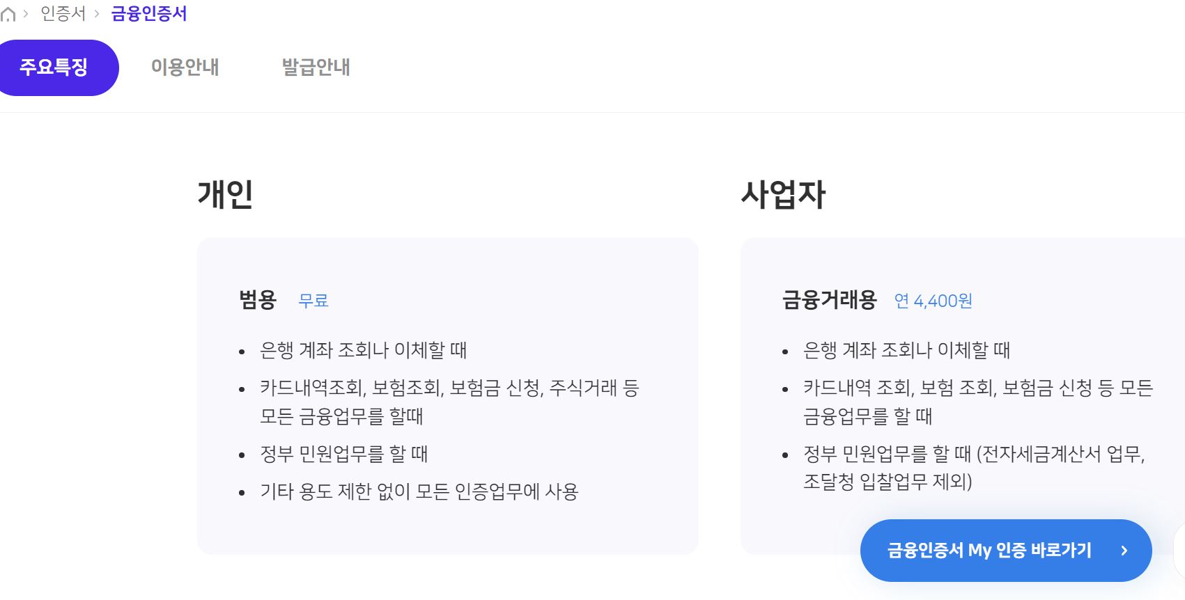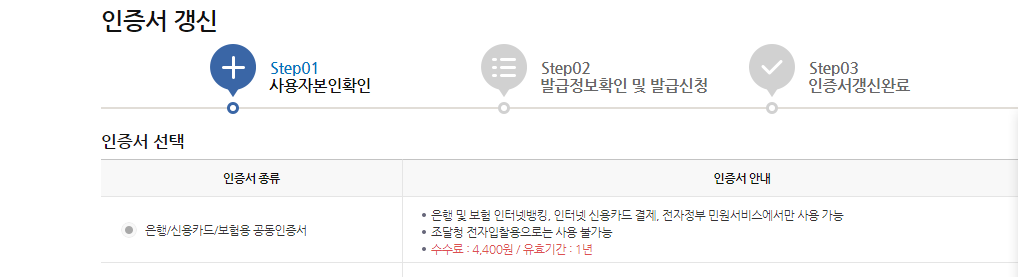 인증서 첫번째 4400원 짜리를 클릭하고