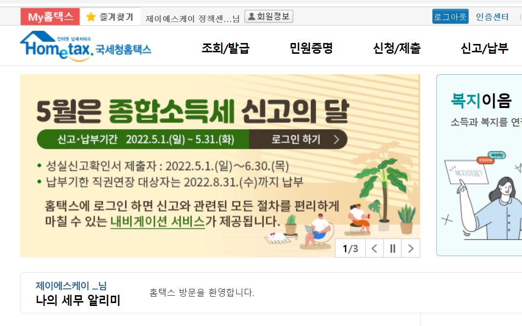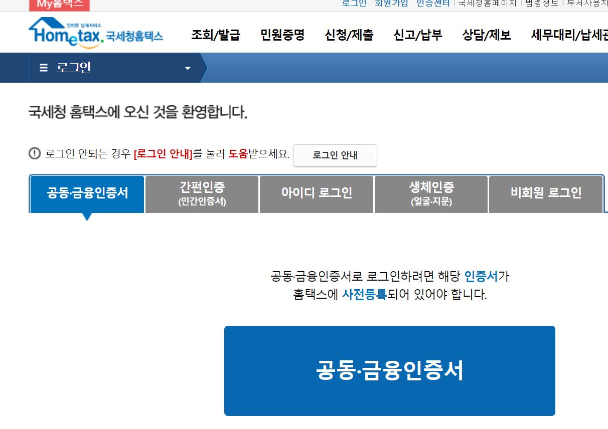 신고한 내용을 확인하기 위해서 홈택스에 로그인을 하는데