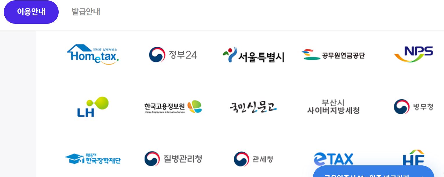 이 사업자공인인증서로 사용할 수 있는 기관이 많이 있었다.