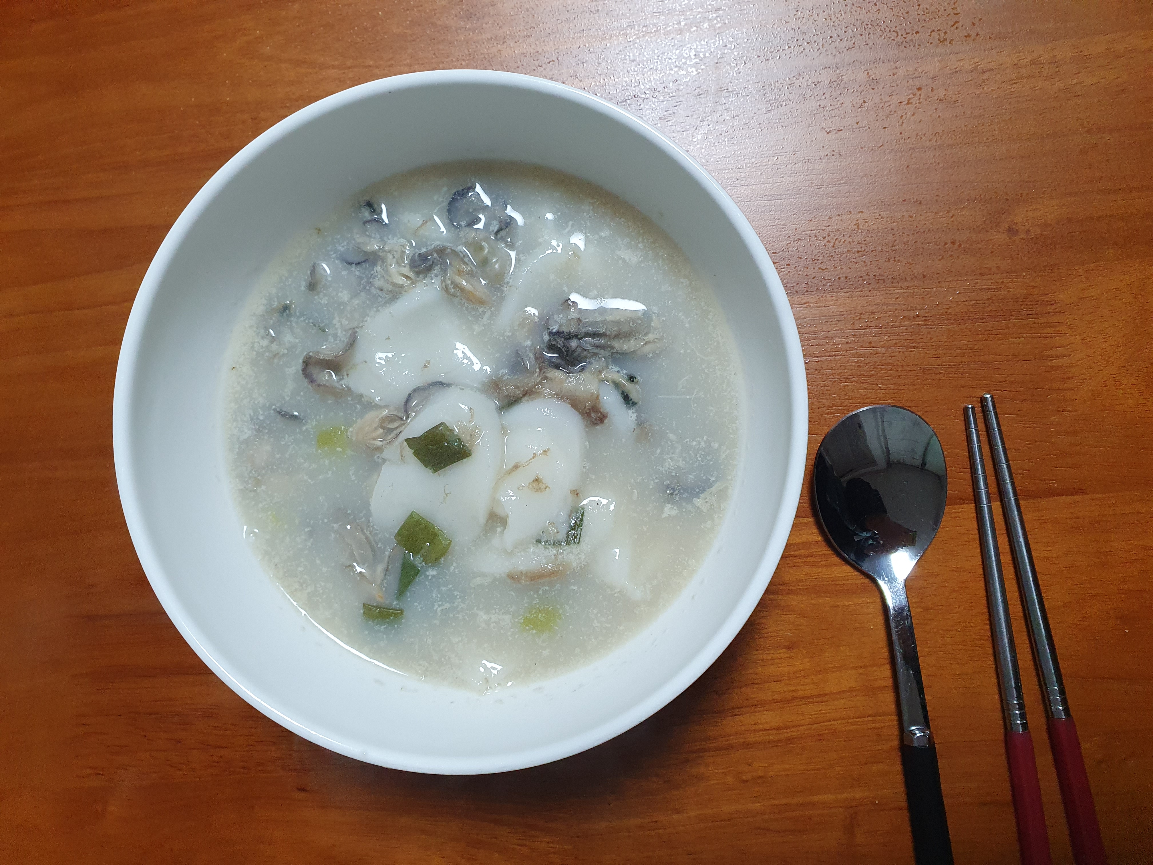 굴떡국은 한 그릇 반 나왔습니다. 오늘은 아침을 배불리 떡국으로 해결했네요~