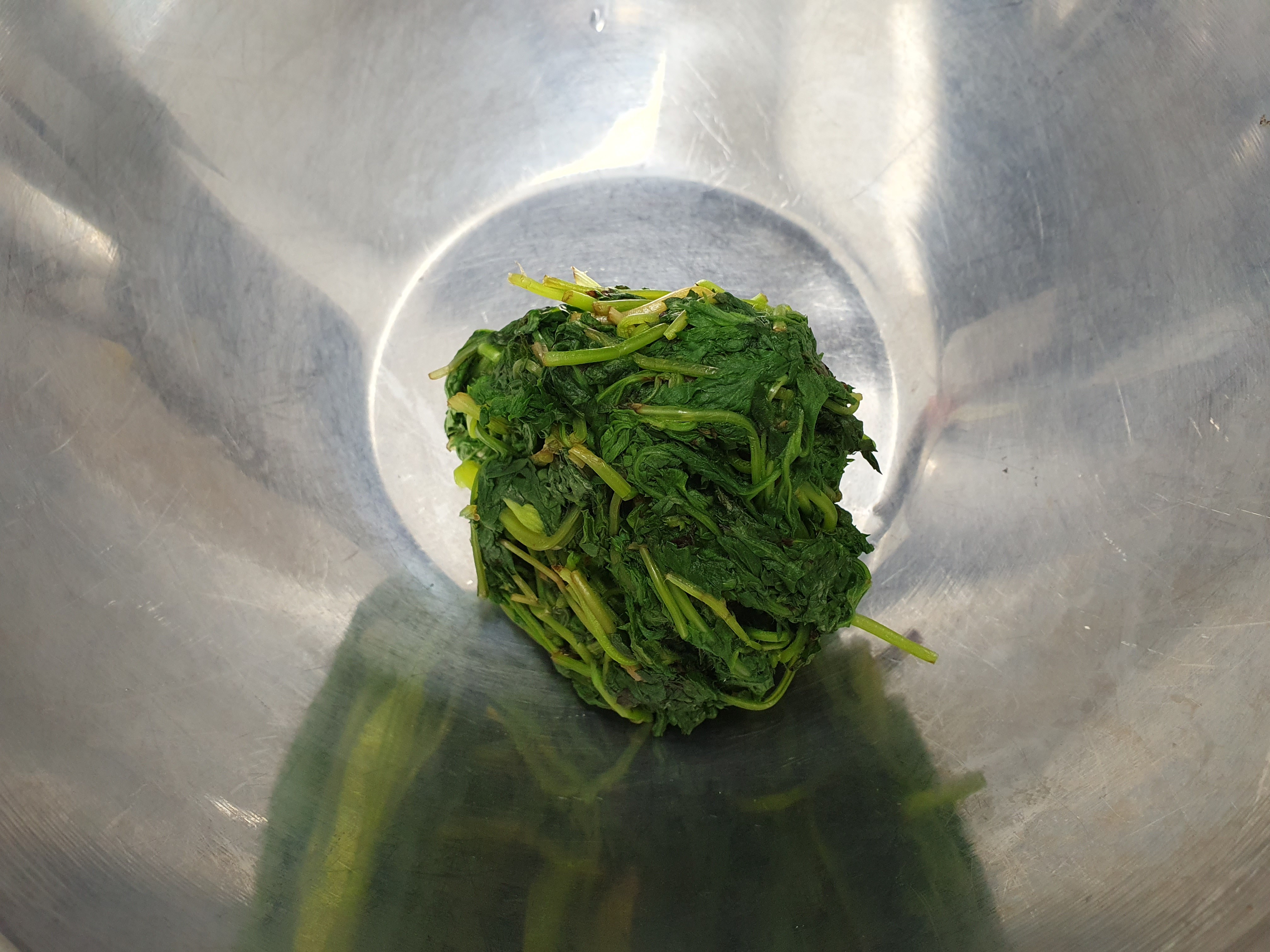 물기가 조금 남을 정도로 짜줍니다. 쑥양이 많이 줄어 들었죠
