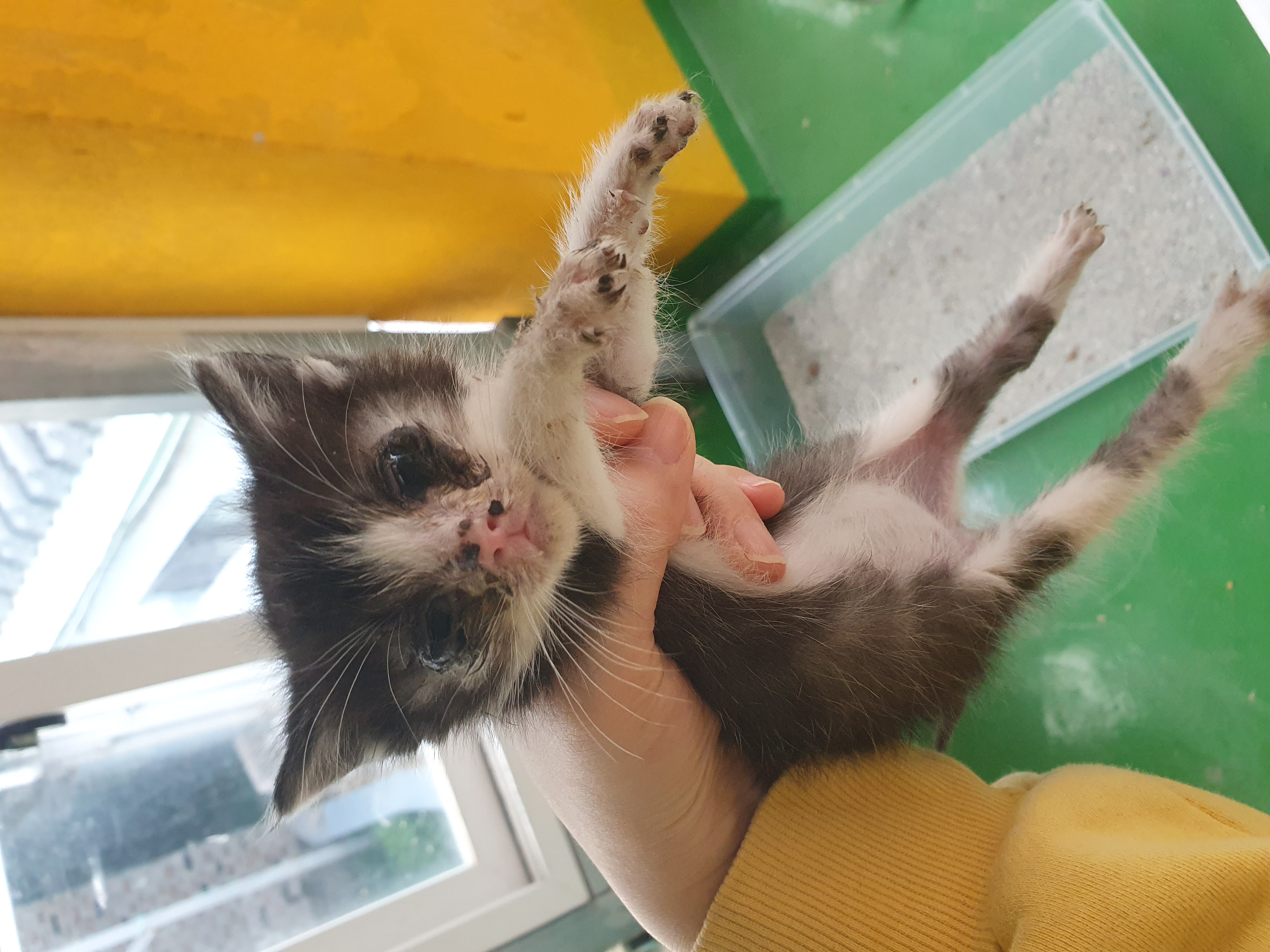 이 아이는 막내, 쪼꼬미인데 크기가 제일 작습니다. 엄마 모유를 적게 먹어서인지 눈물도 잘 끼구요. 그래서 눈이 잘 안 보입니다. 그럴 때마다 티슈로 닦아주면 다시 눈이 커지네요 ㅋㅋ