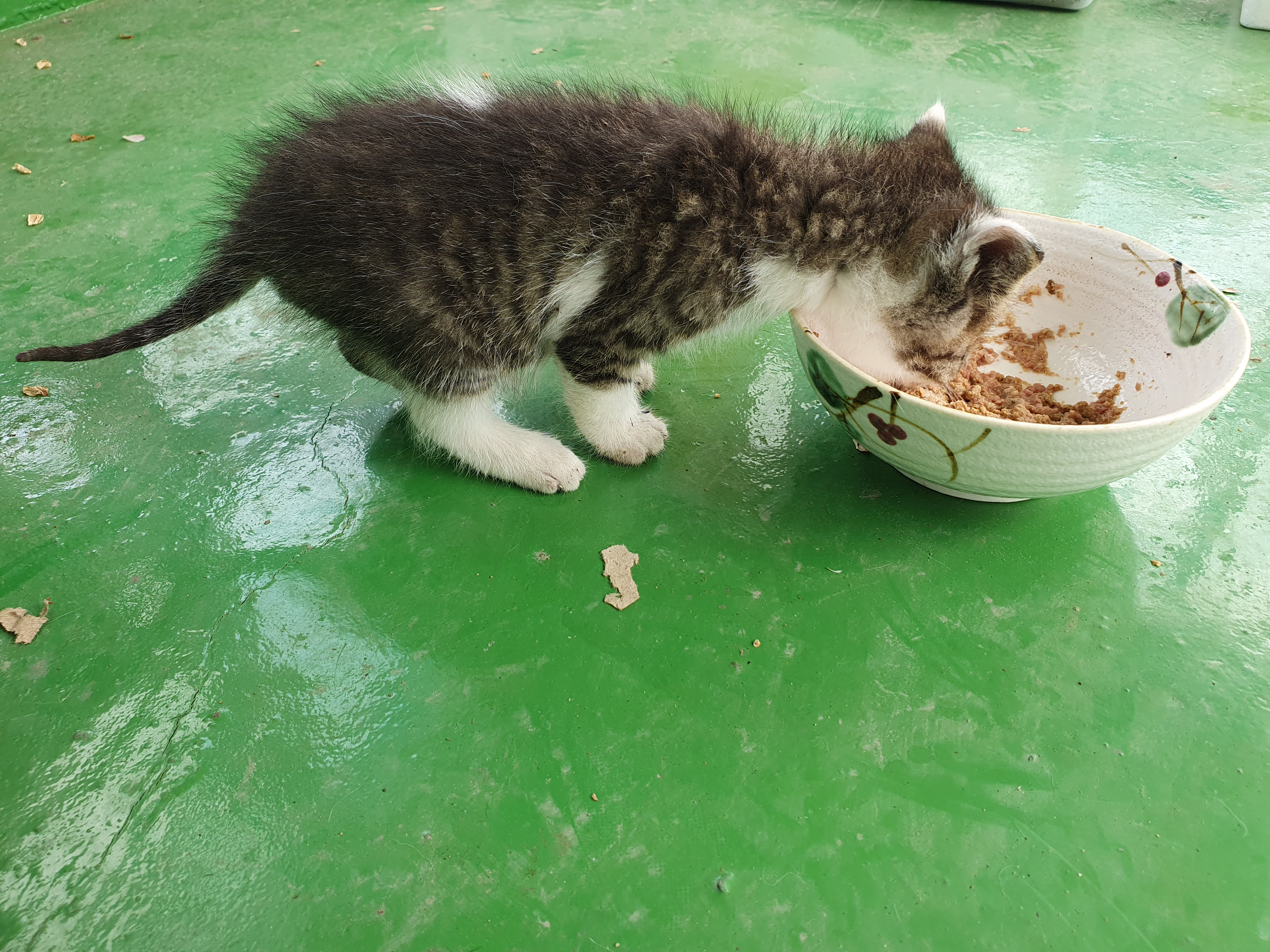 뜨거운 물을 넣은 건식 사료를 빻아서 습식 사료를 섞어서 주니까 잘 먹습니다.