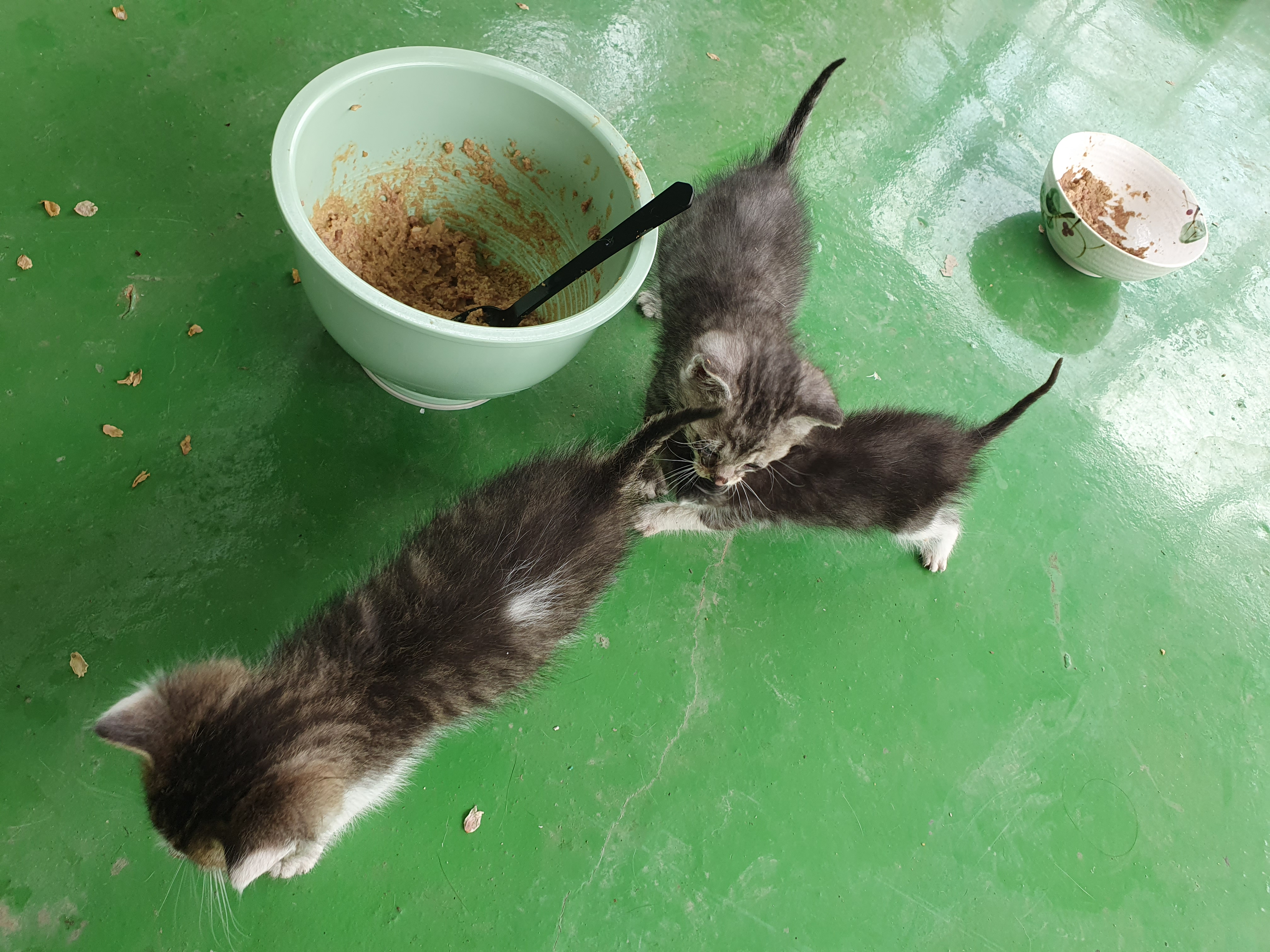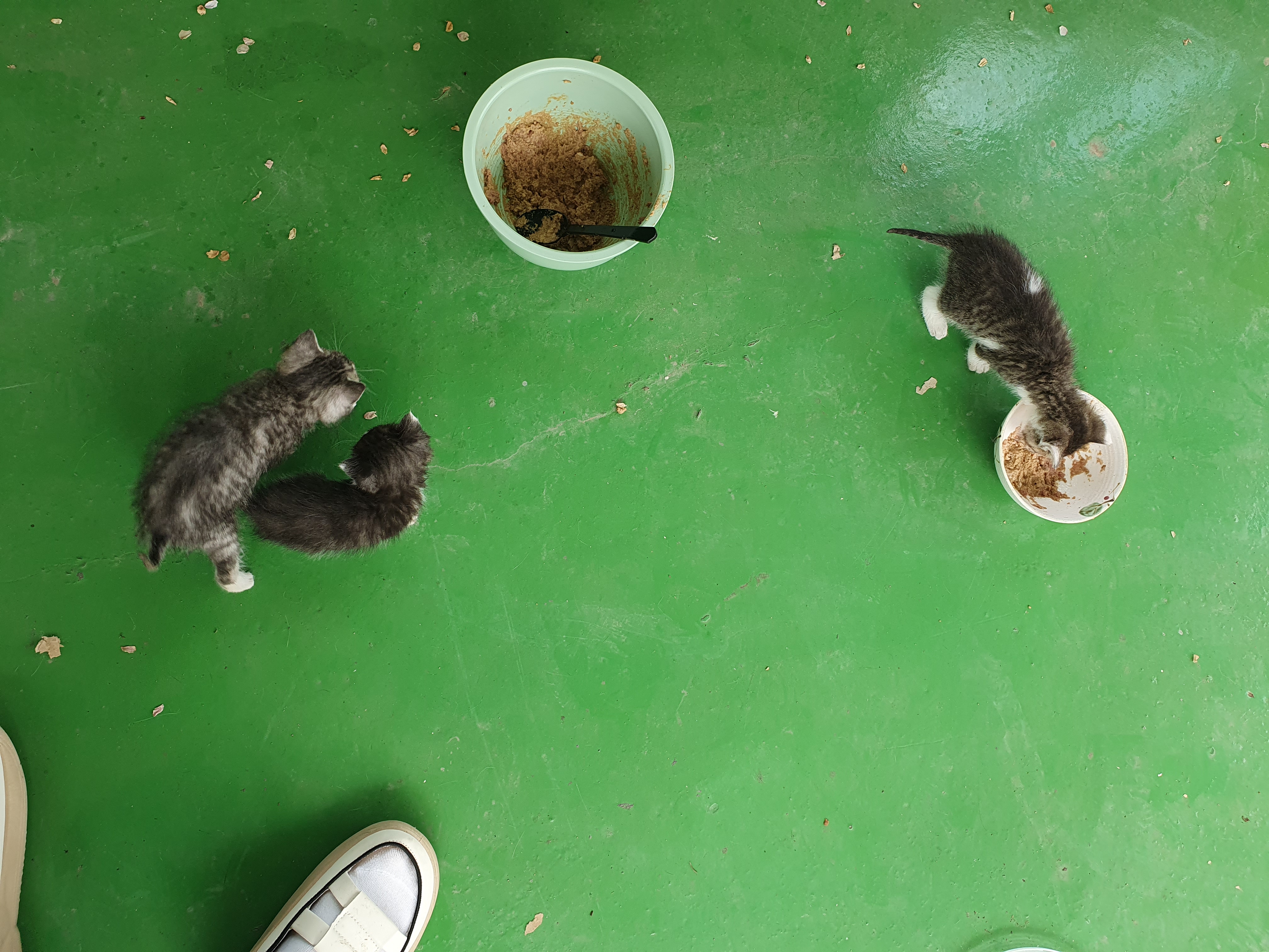 야옹이들 배변훈련을 좀 시킨 뒤에 이유식을 줬습니다.