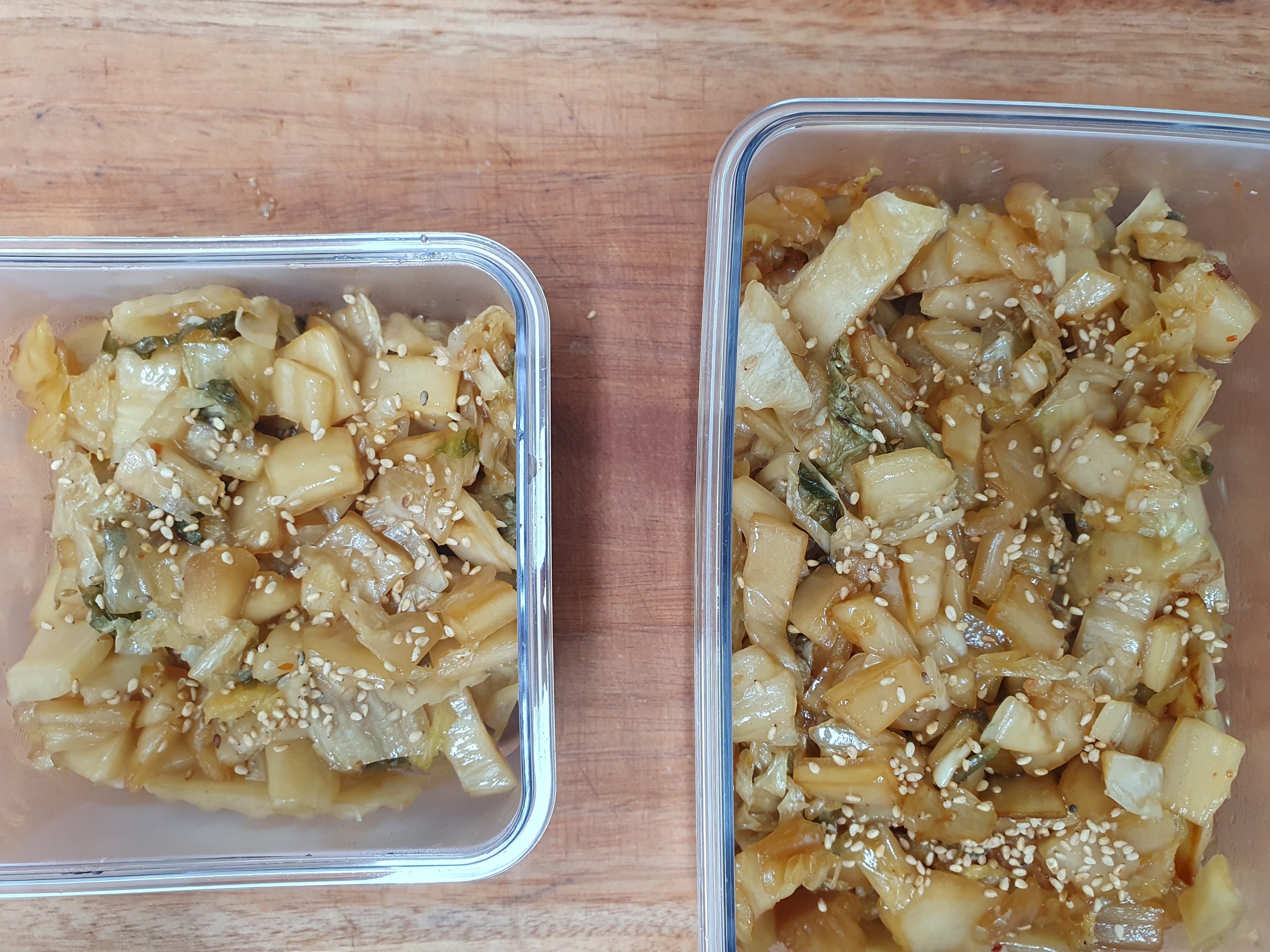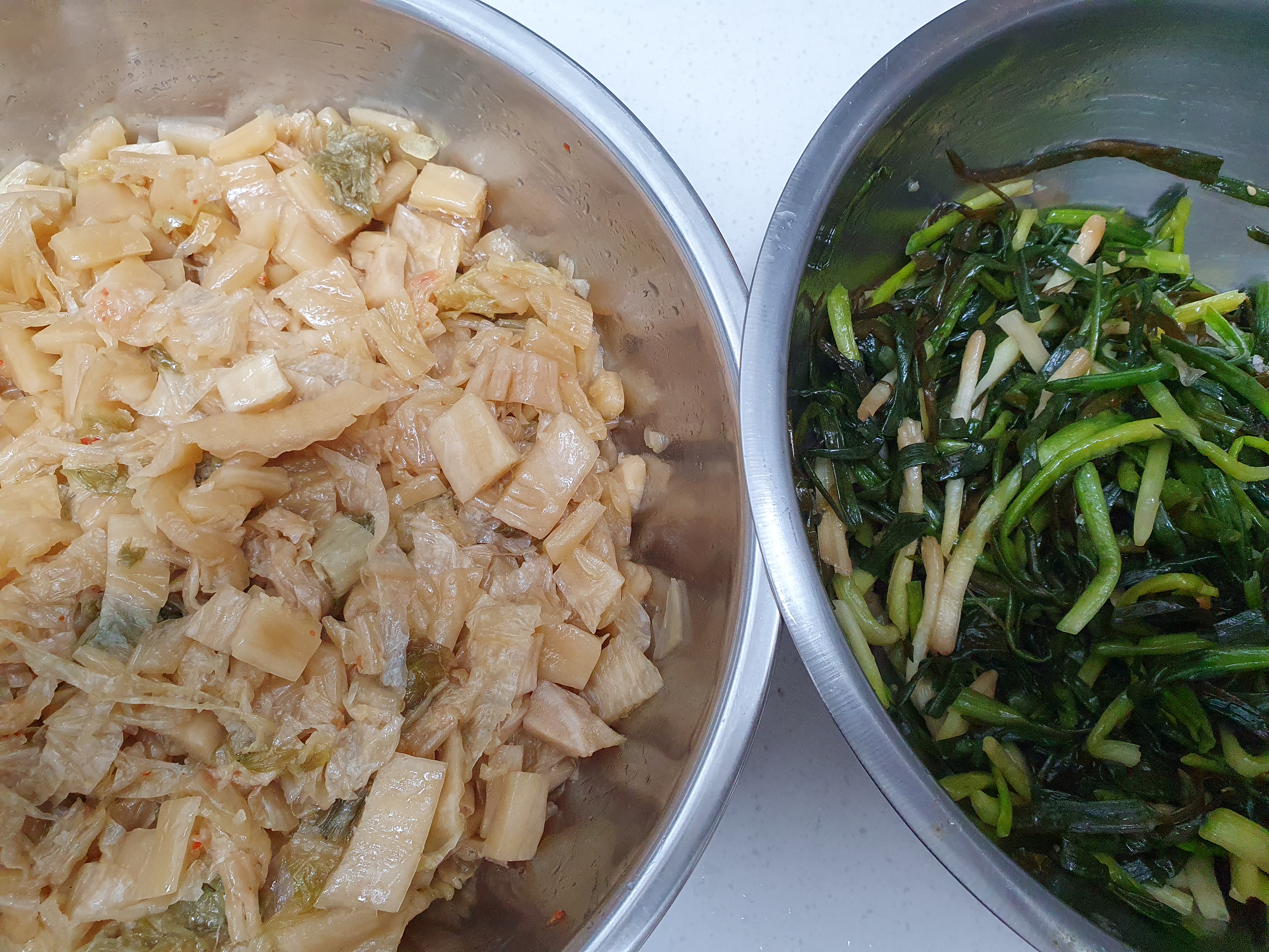오늘은 김치볶음 반찬을 두번째로 만들어 보았습니다. 2021년도 김장김치를 김치냉장고에서 꺼냈습니다. 양념을 깨끗하게 물로 씻어 냈습니다.