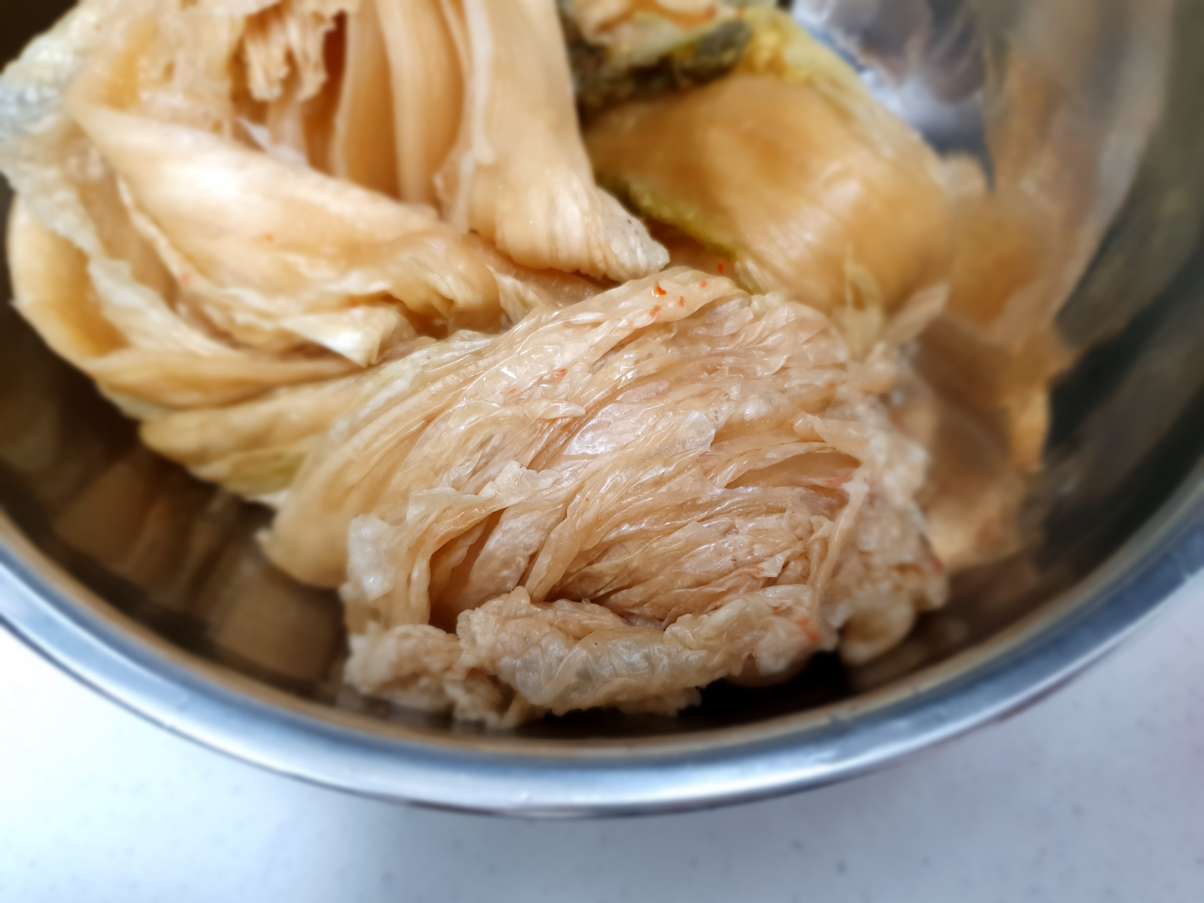 쉰 김치를 깨끗이 씻습니다.