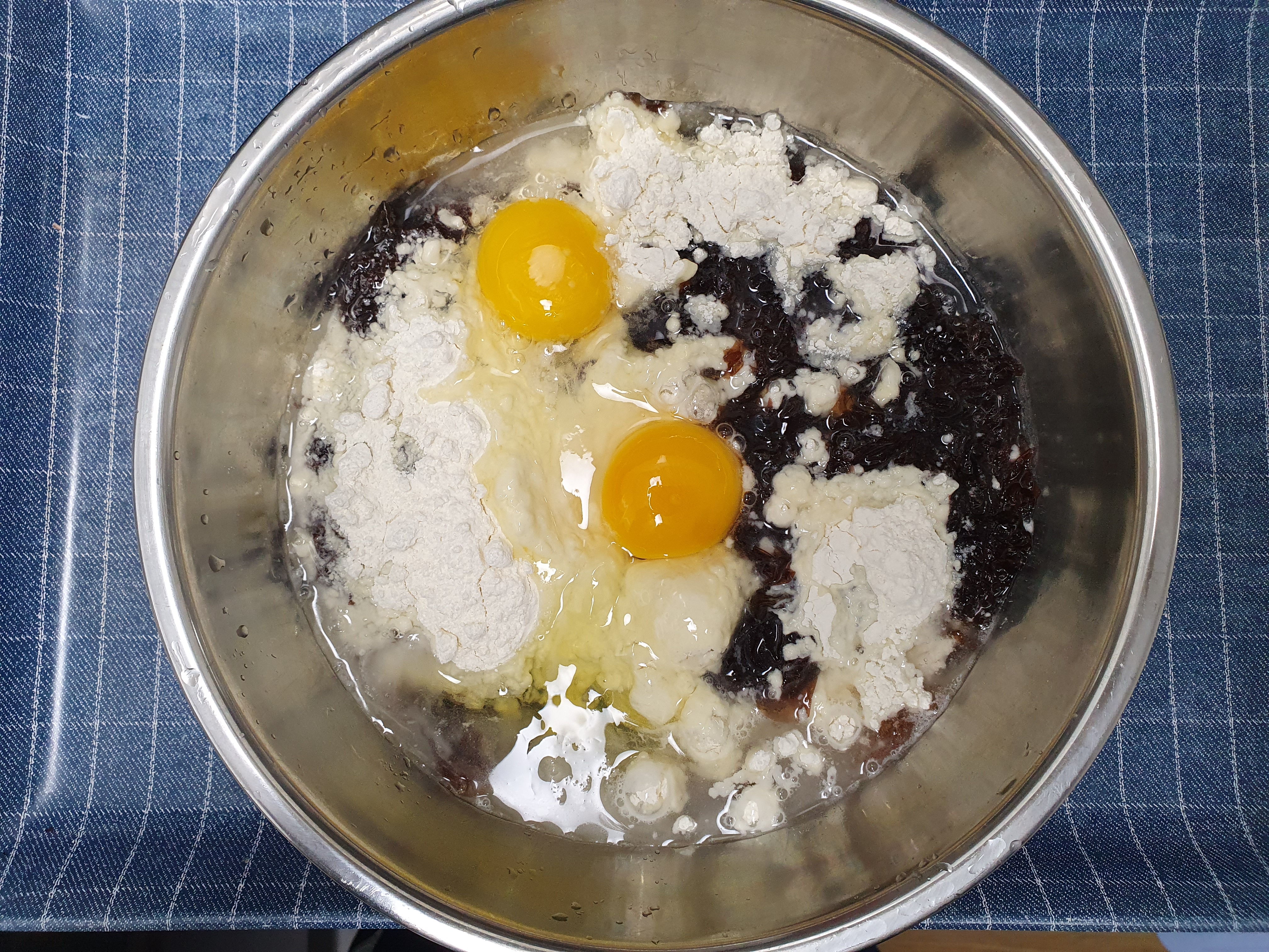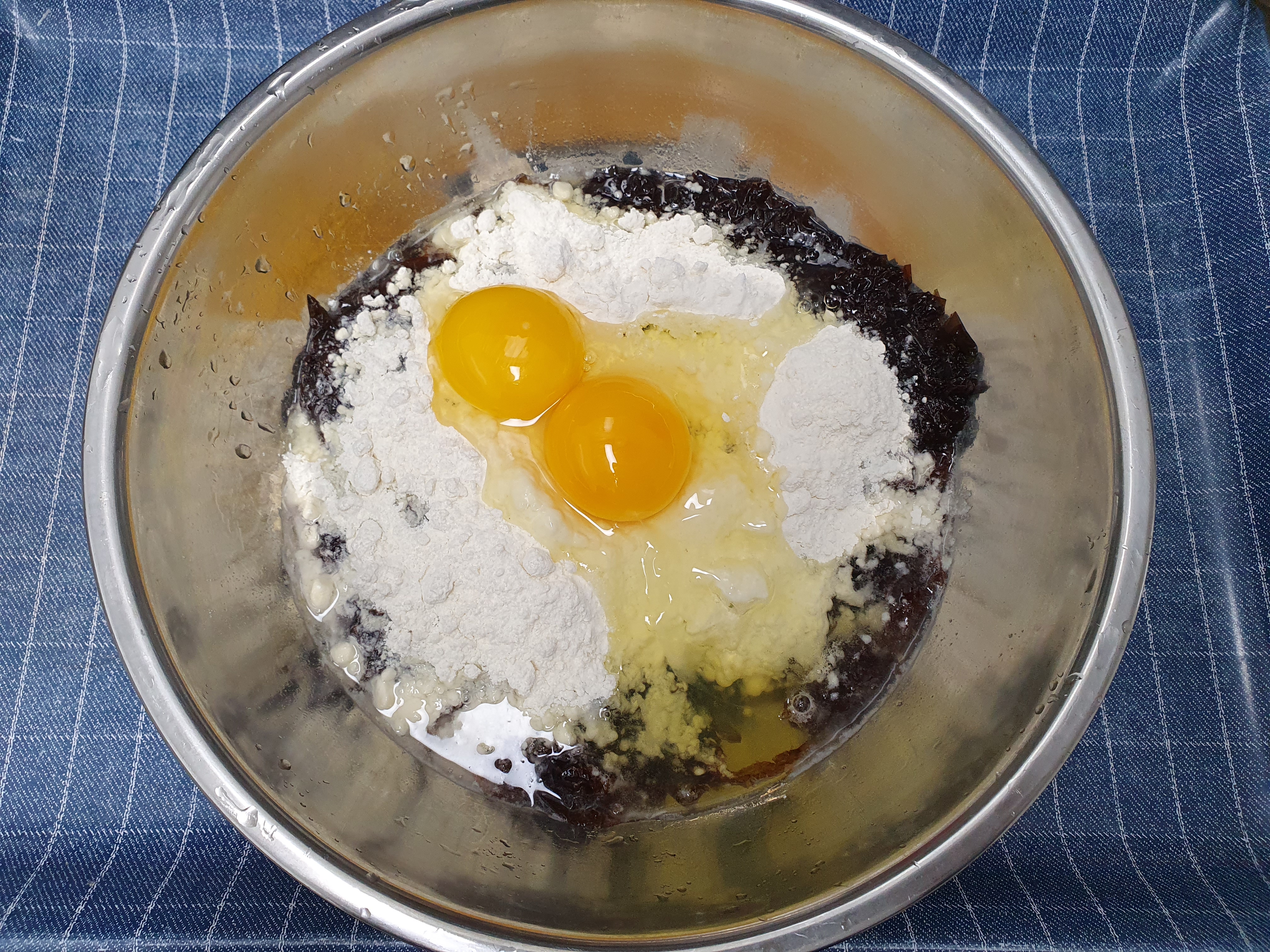 거품기로 잘 저어 줍니다. 부침가루가 뭉치지 않는 게 관건인 거 같아요.
