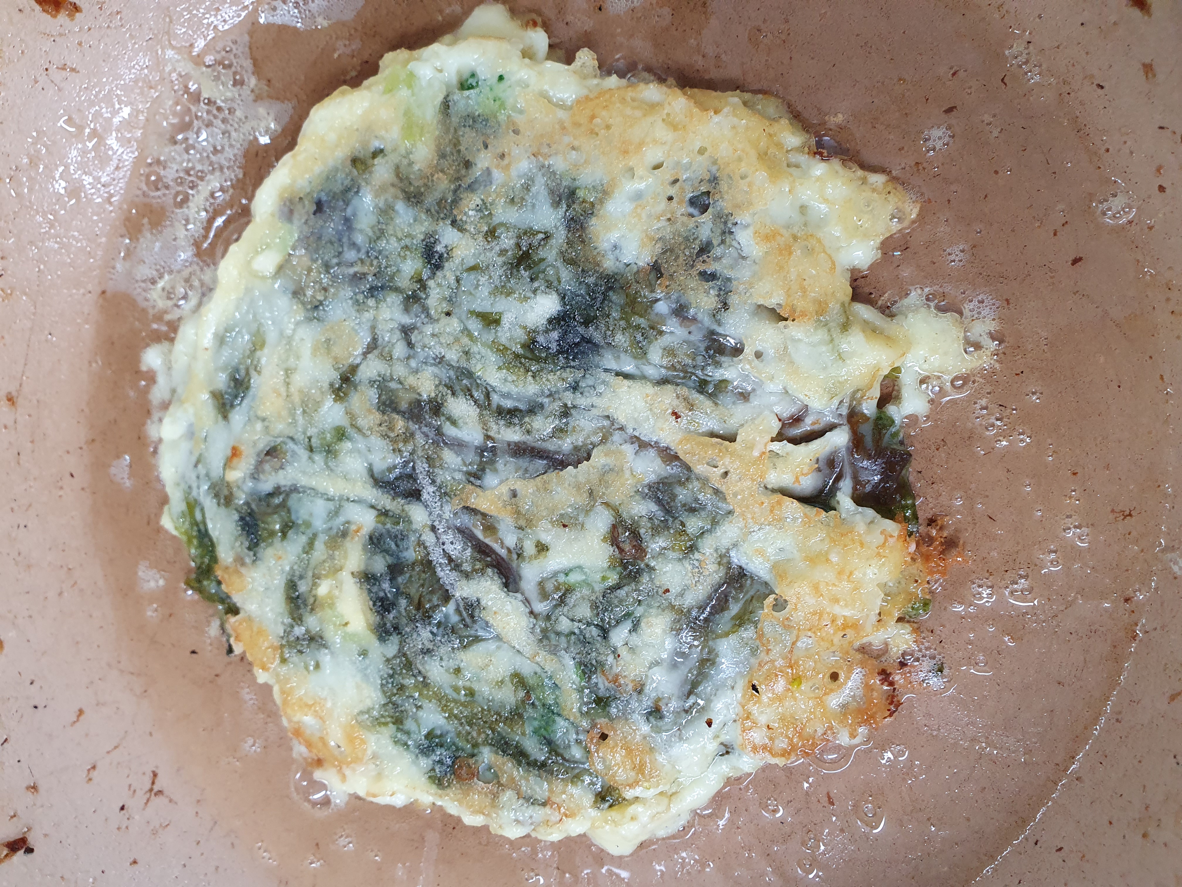프라이팬에 식용유를 두르고 부치기 시작합니다.