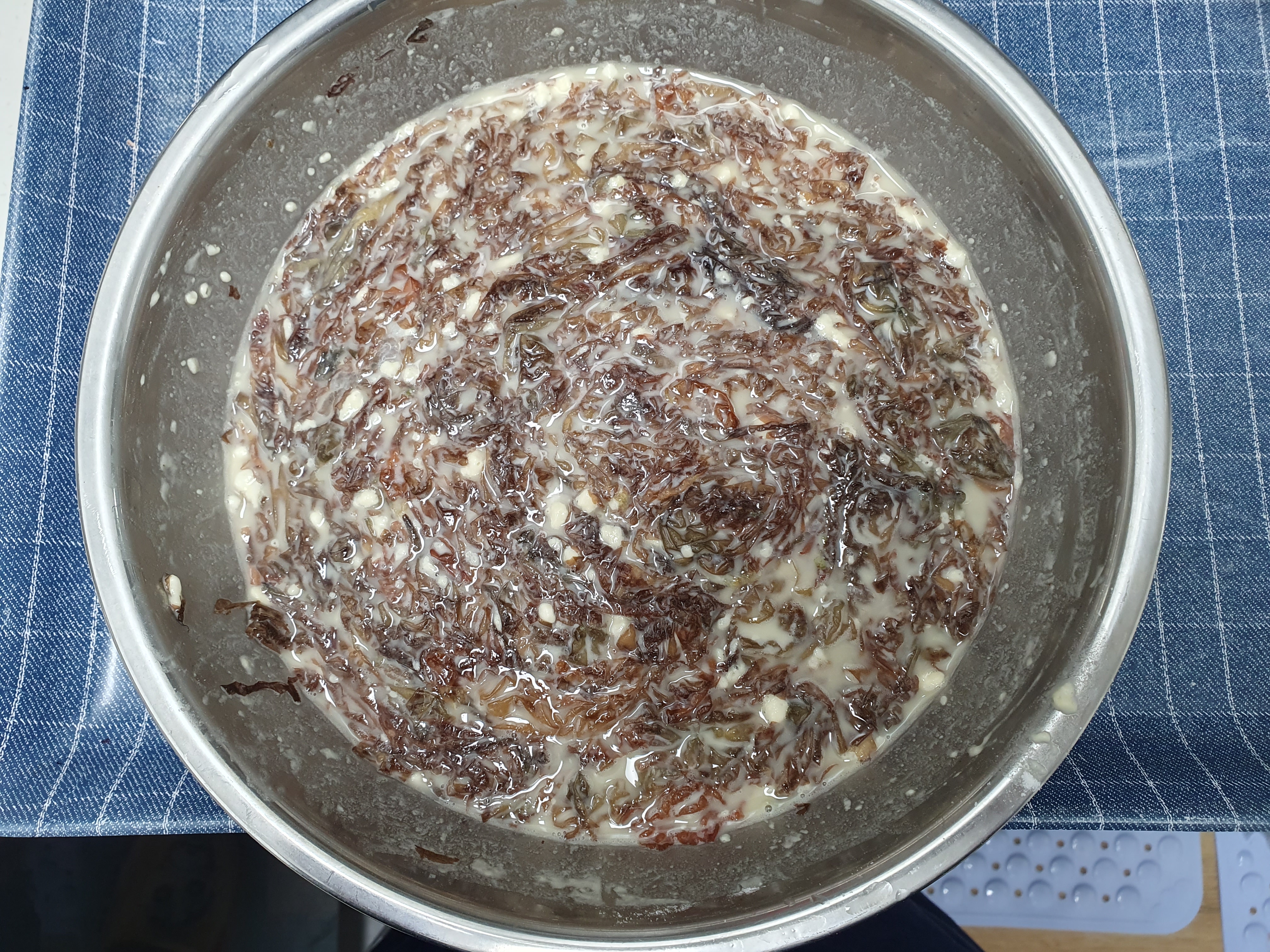 물을 300리터 부어 줍니다. 이때 물을 덜 넣을 걸 그랬네요. 김에도 물기가 있고 해서.