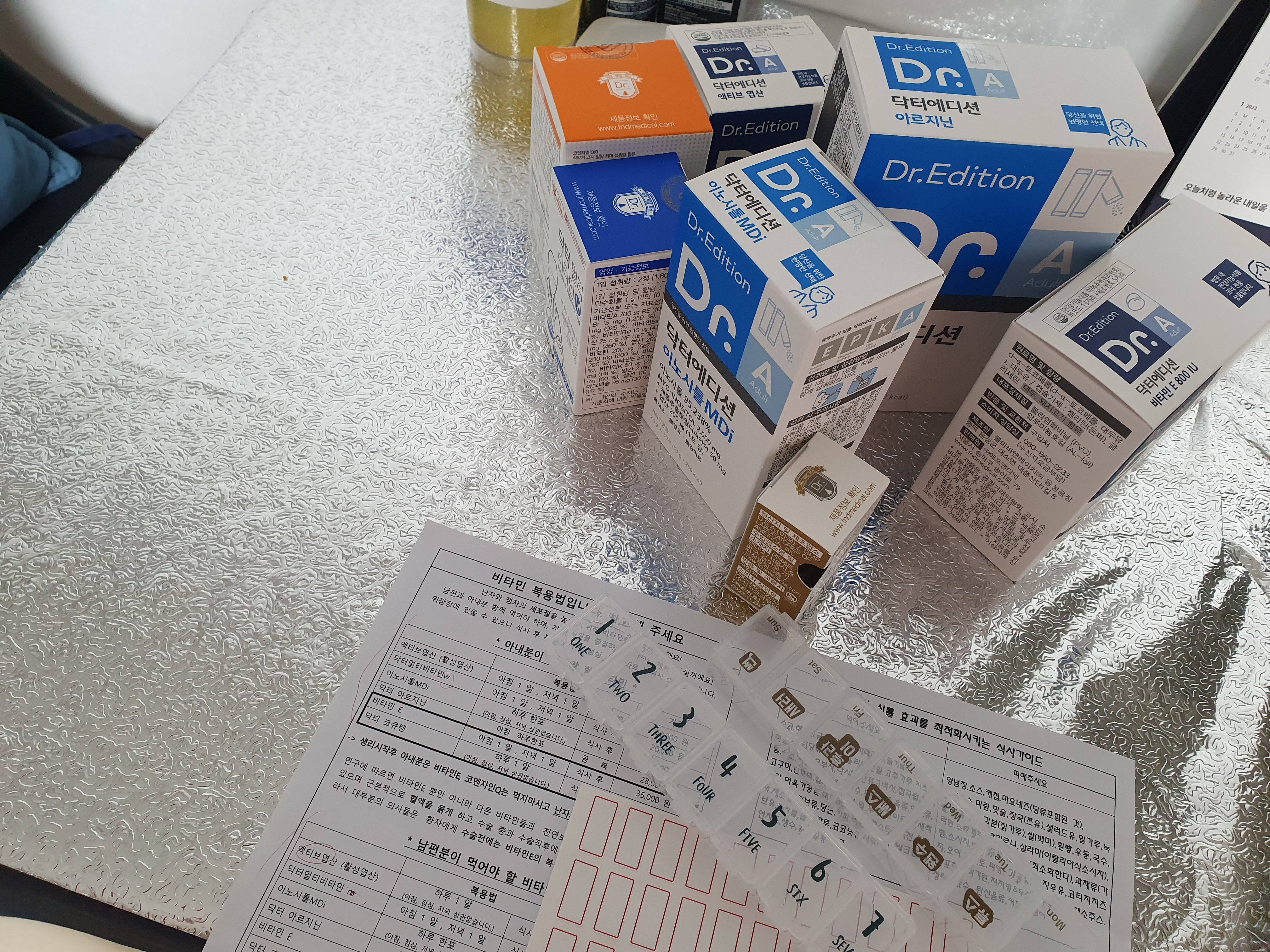 영양제를 기존에 먹던 거에서 병원에서 준 영양제로 싹다 바꾸었습니다. 기존에 너무 많은 함량이나 적은 함량의 성분은 의사쌤 계획에 영향을 미칠 수 있다고 합니다.