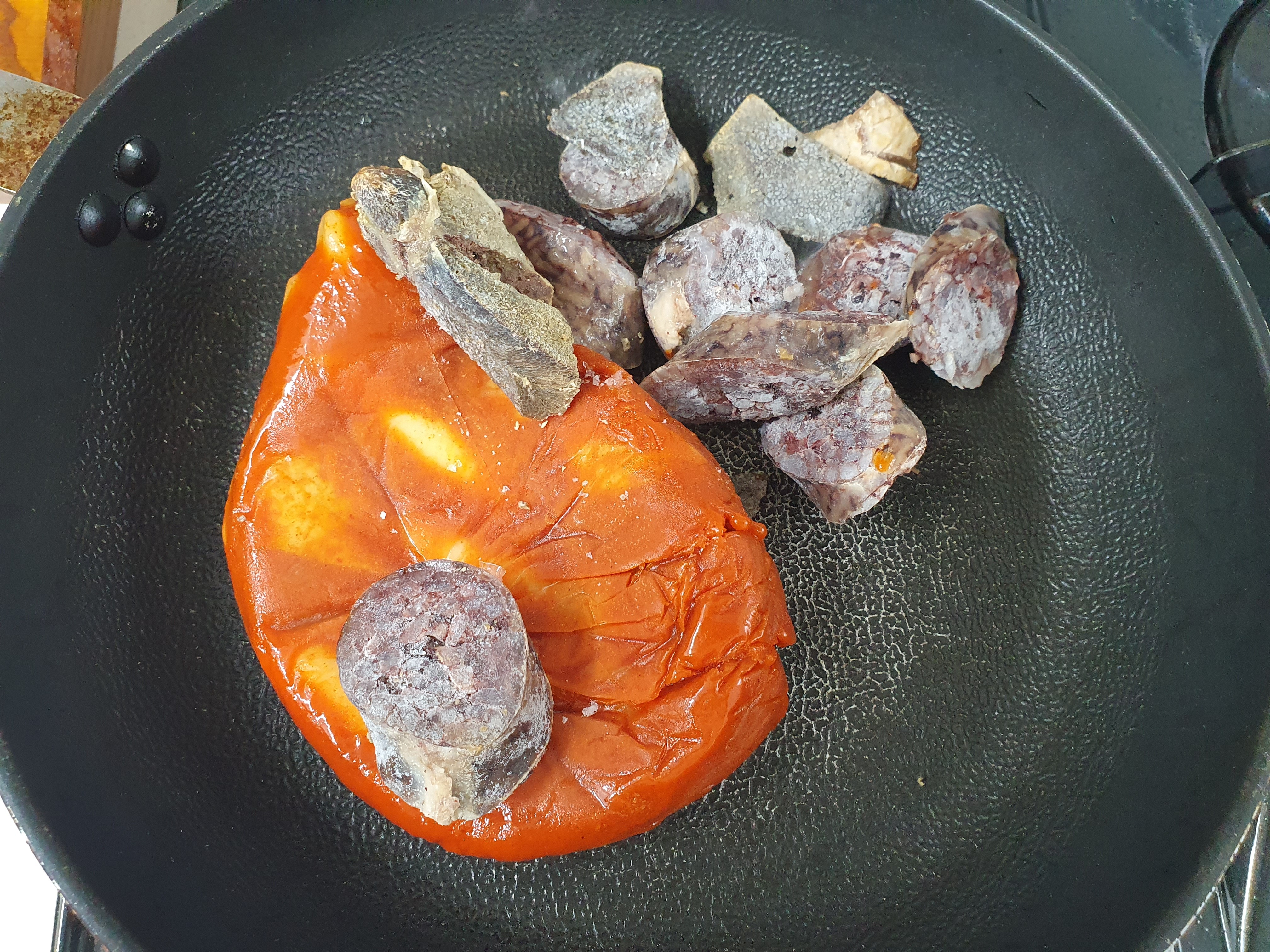 오늘은 냉동고에 얼려 놓은 떡볶이를 다시 해먹어 보기로 하겠습니다.