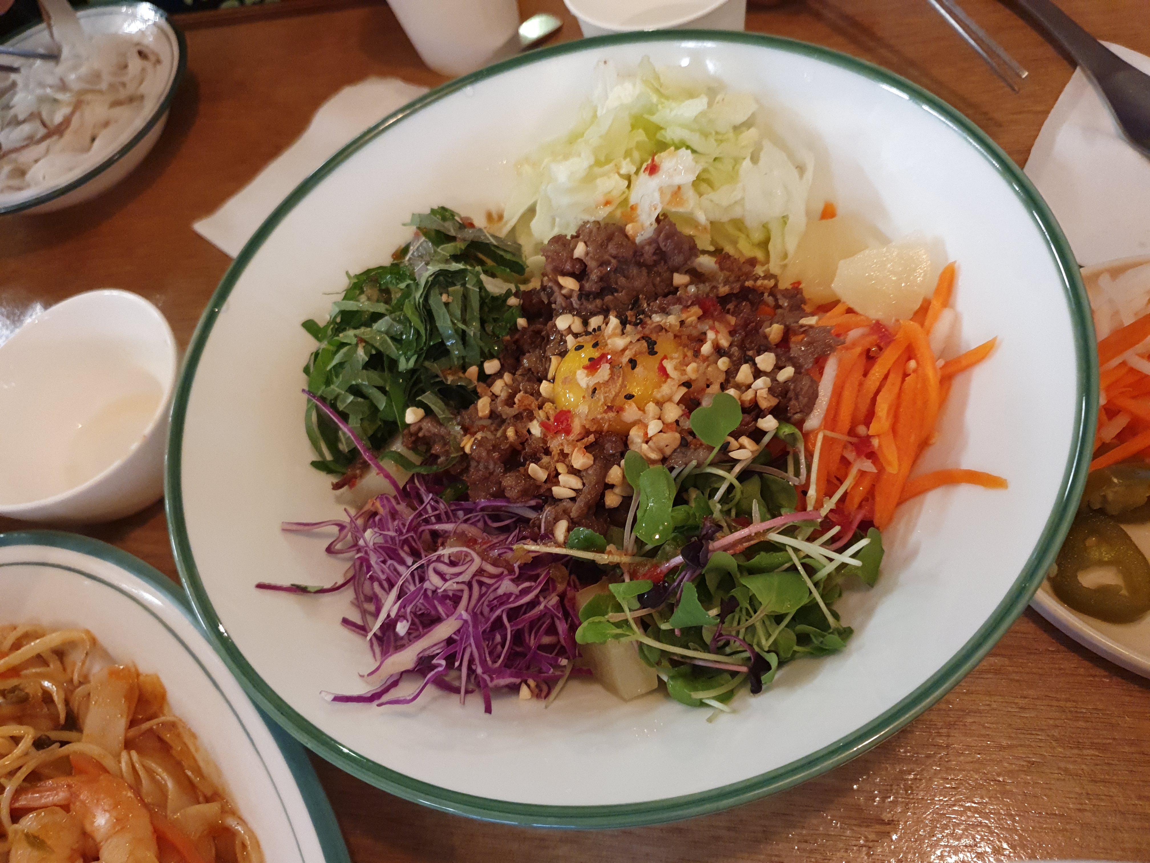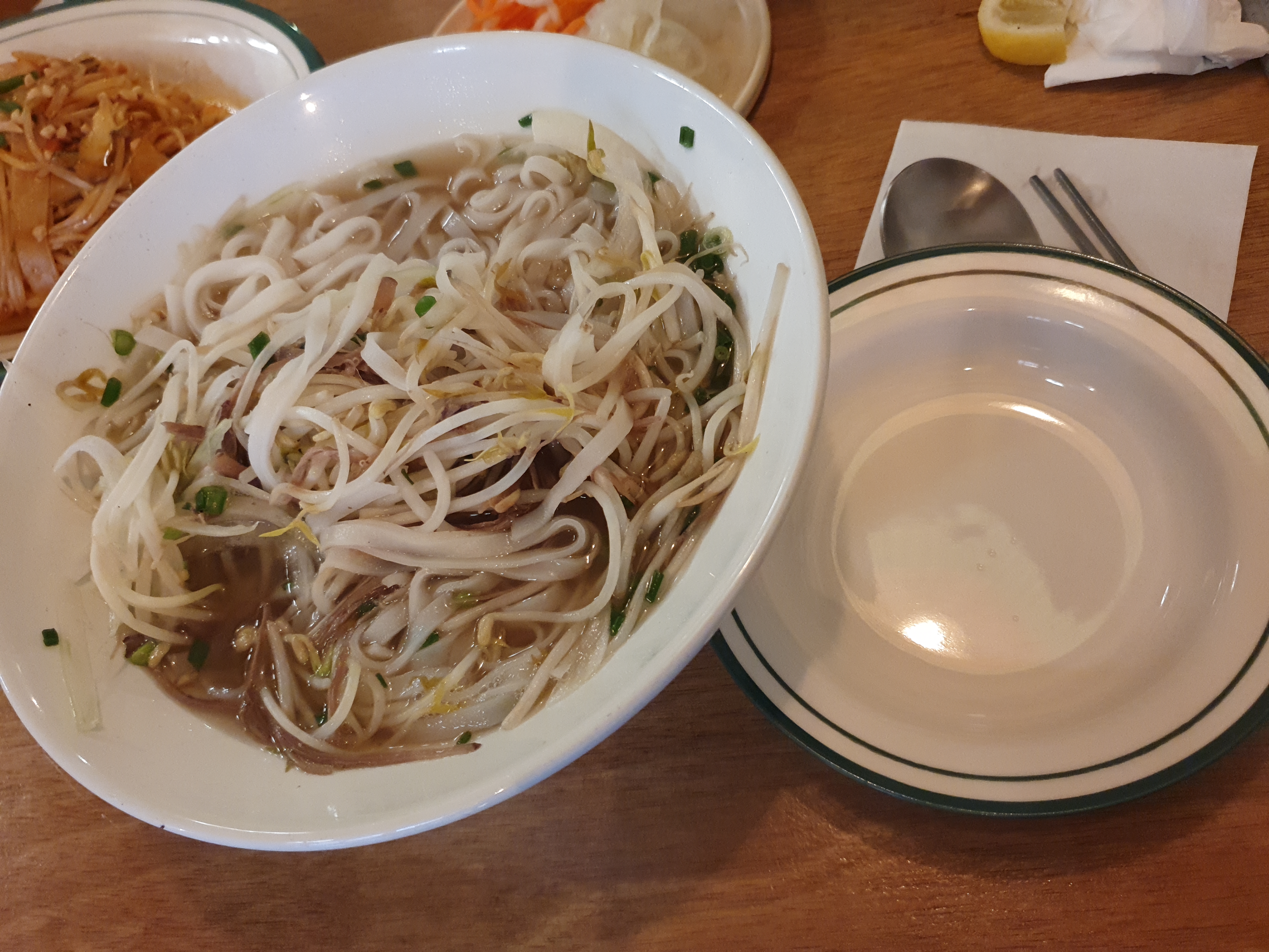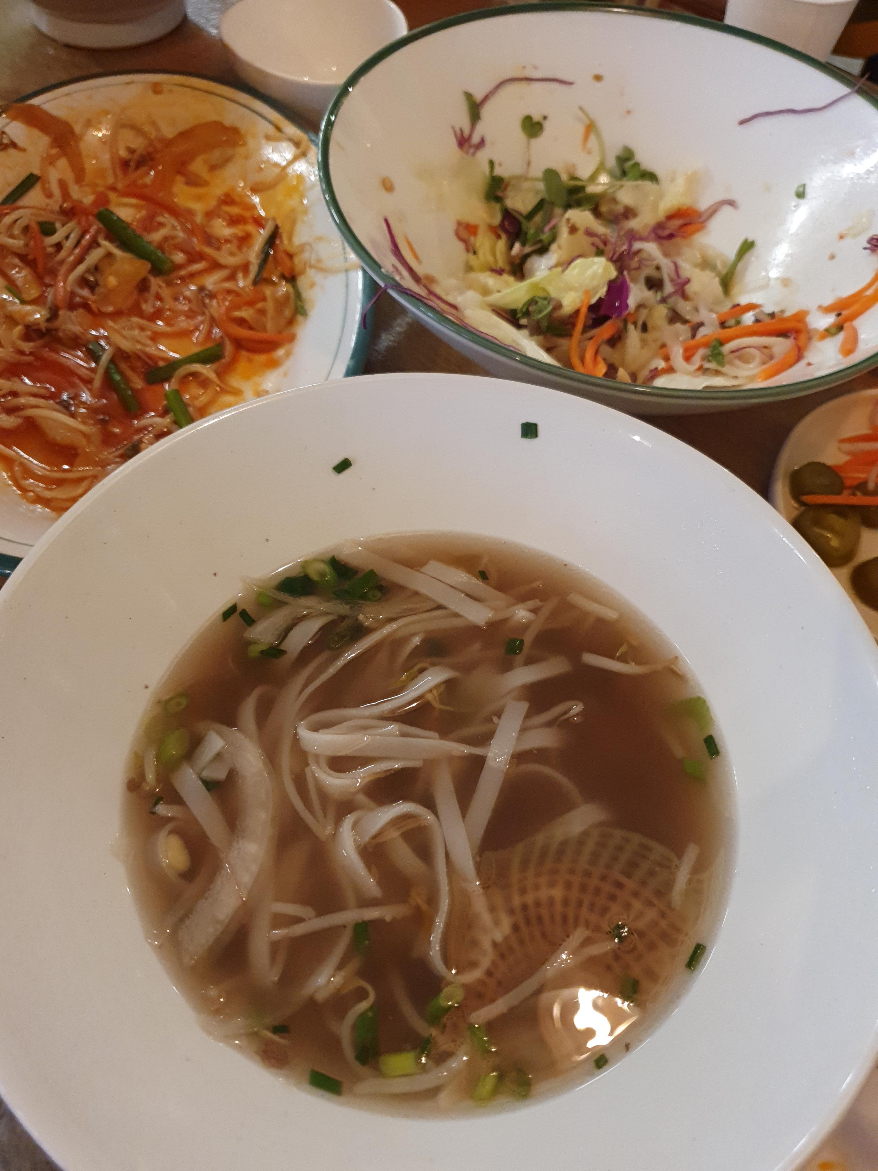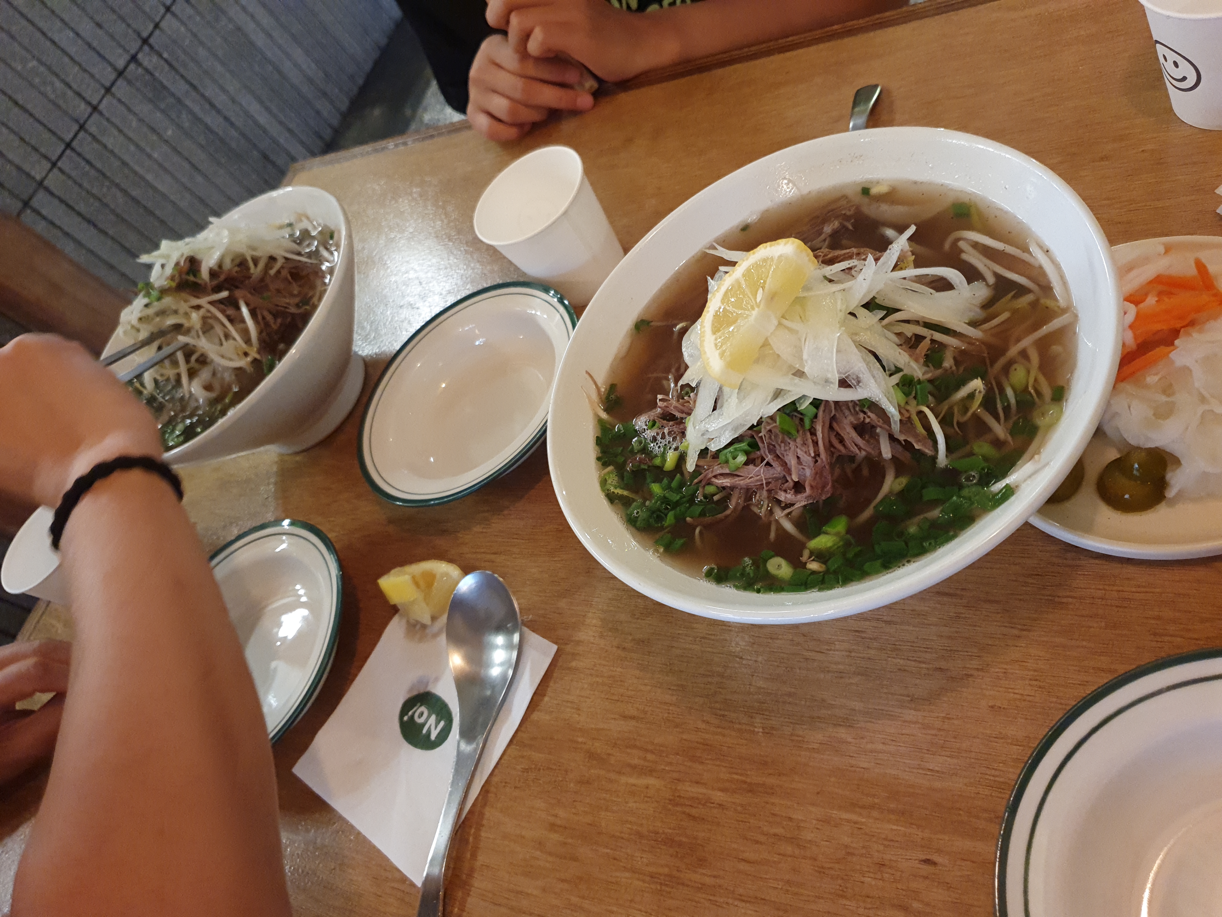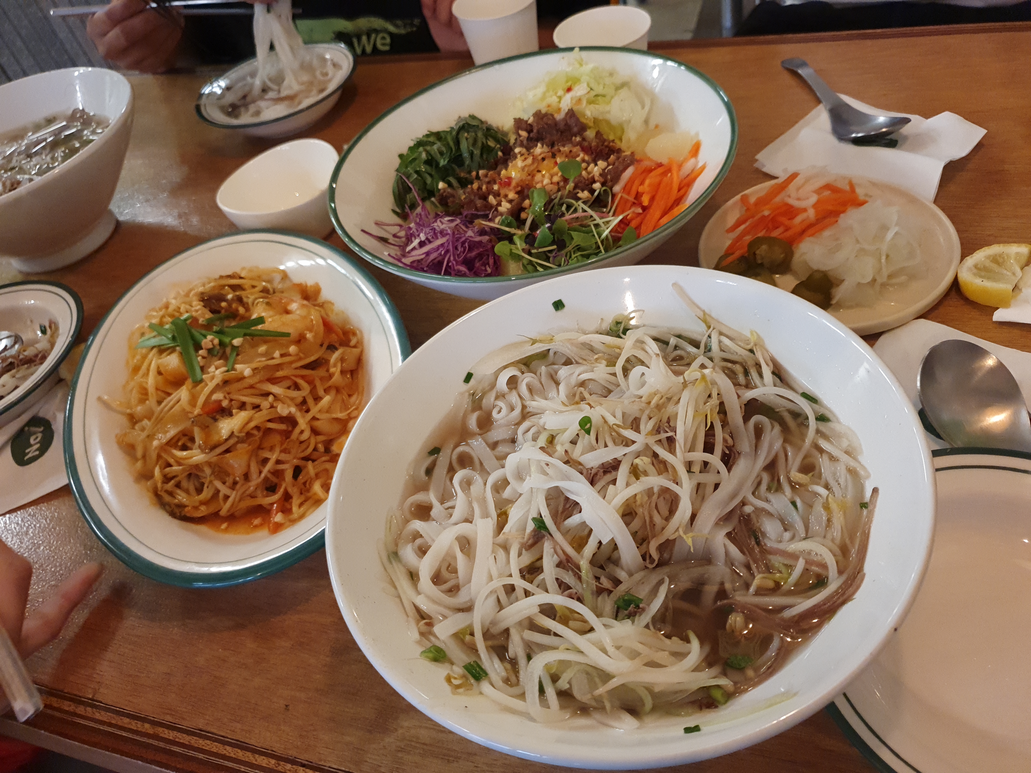 4명이 가서 소고기쌀국수 2개, 해물팟타이, 분보싸오를 시켰습니다.