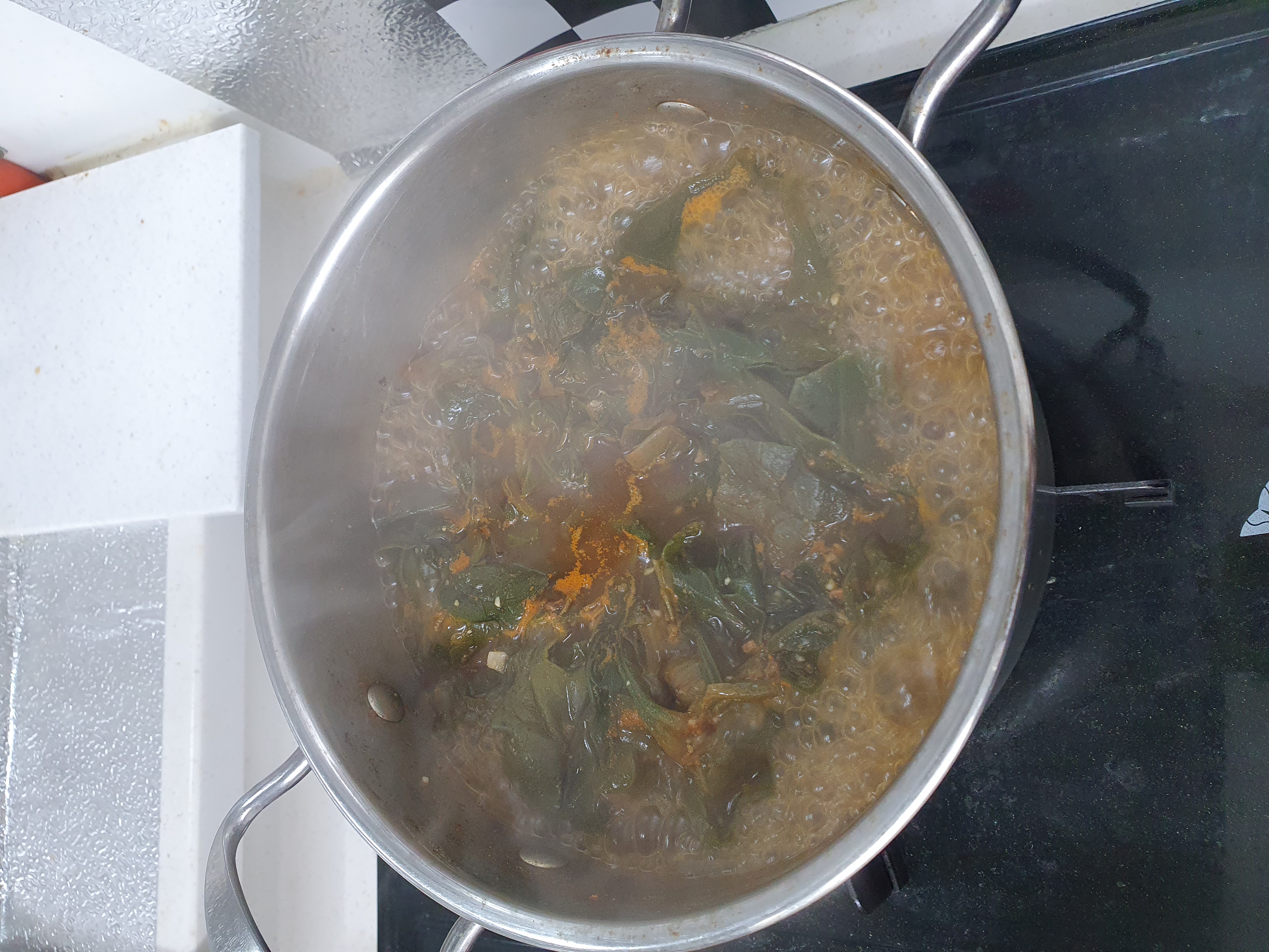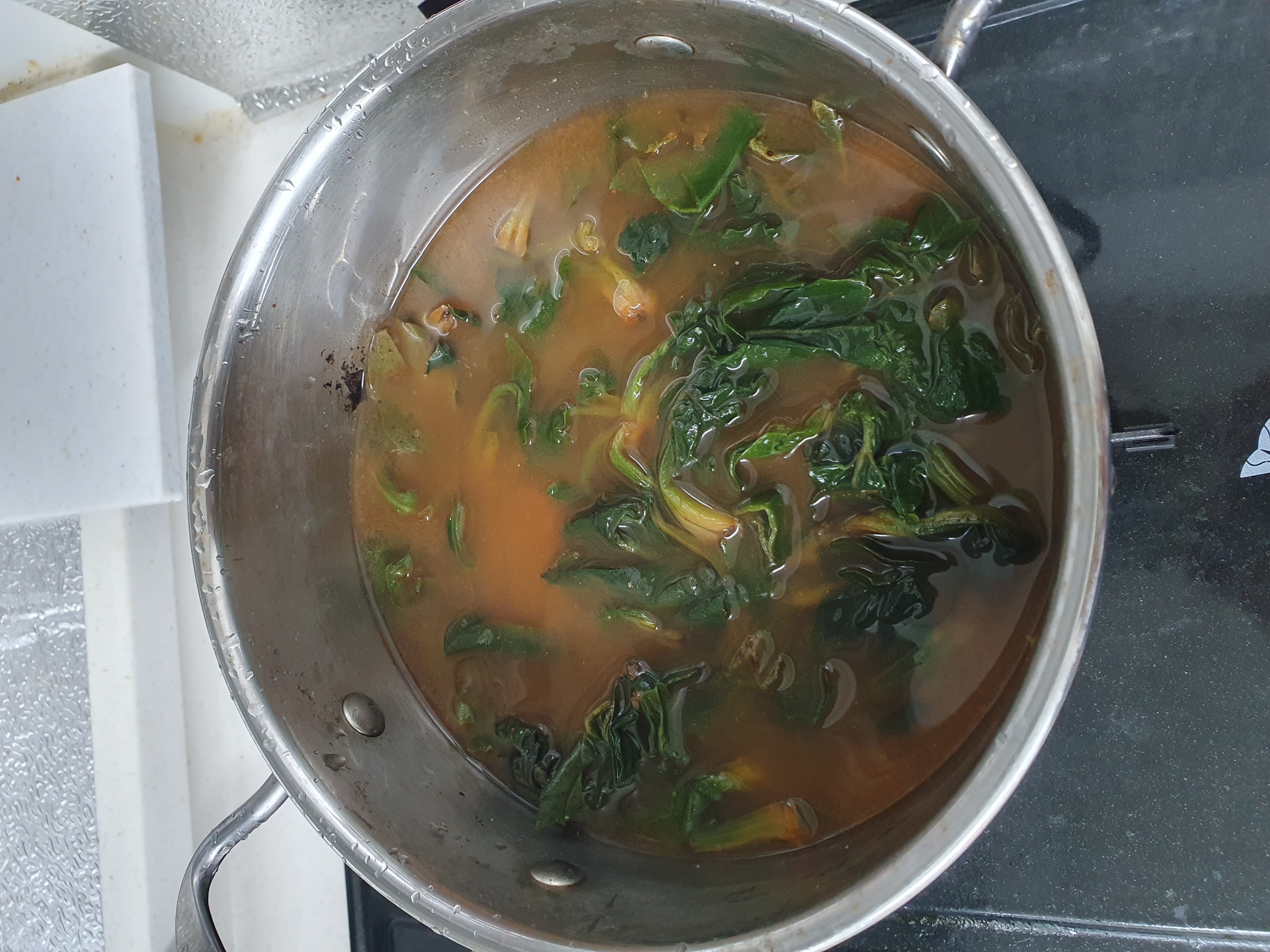 요즘에 야근이 많아져서 밤늦게 먹을 국물거리를 찾다가 시금치된장국을 미리 만들어 놓았네요ㅎ