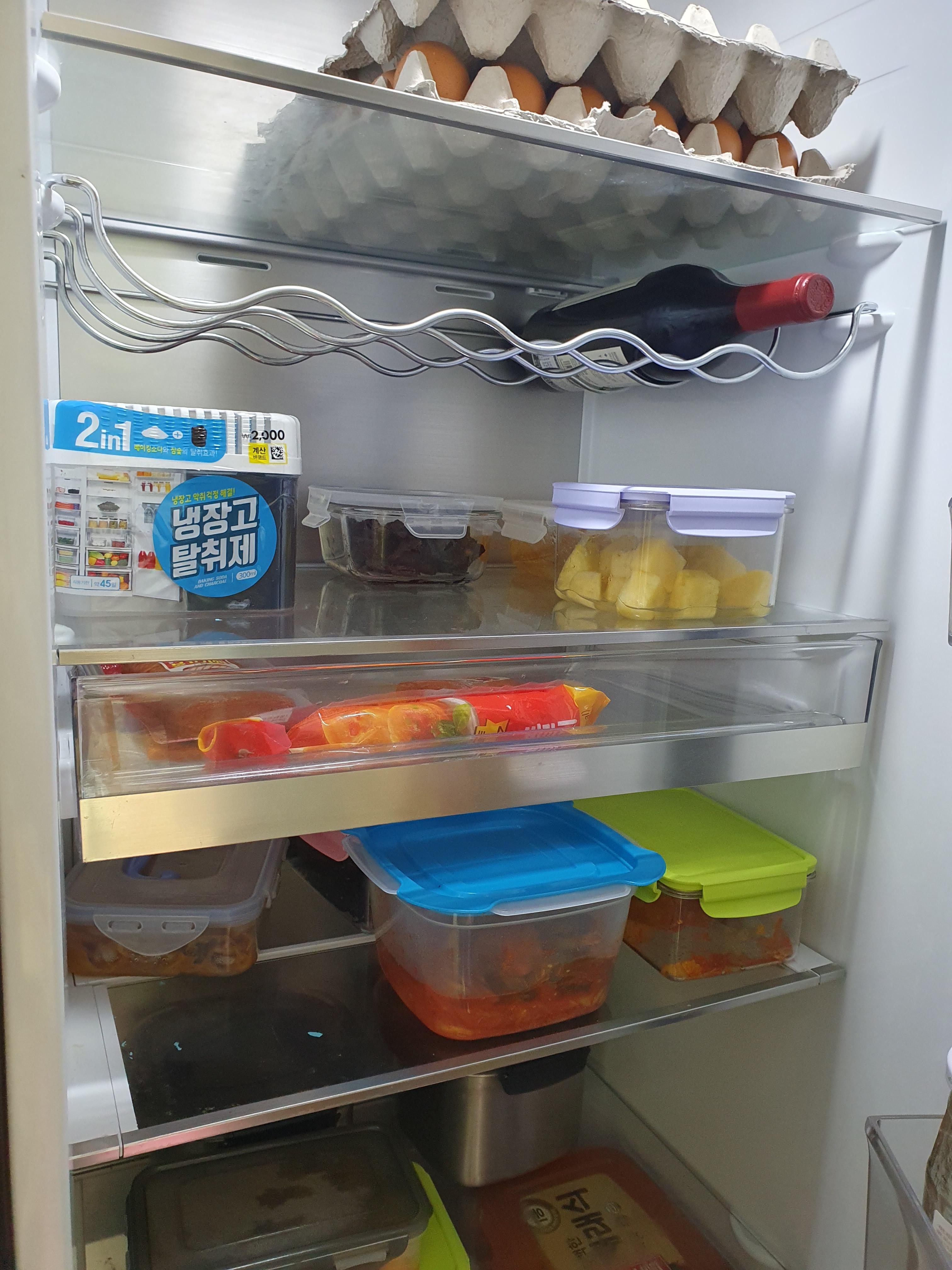 냉장고에 김치가 많아서인지 아침에 냉장고 문을 여니까 김치 냄새가 너무 많이 났습니다.
