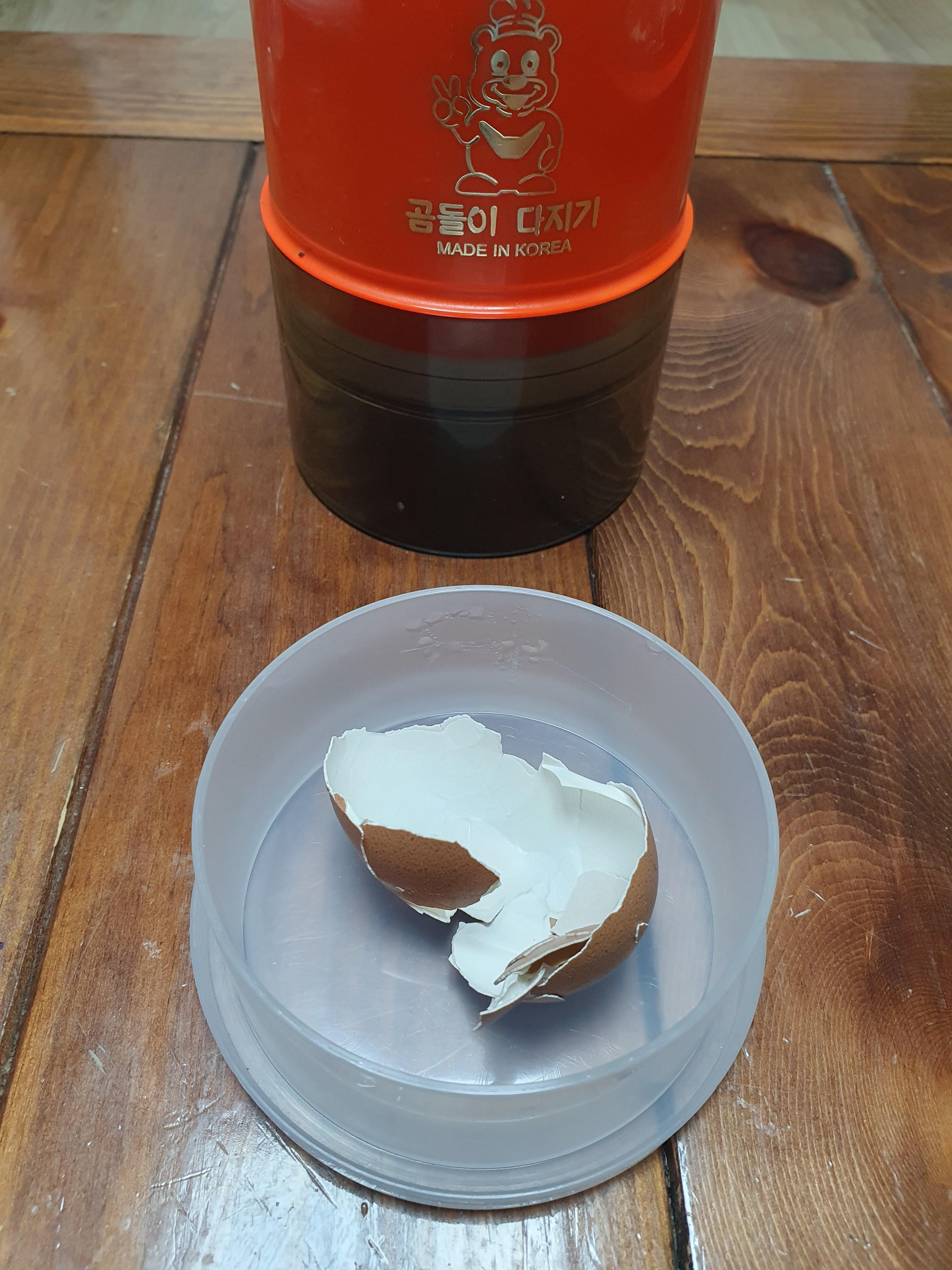 바스스 부서지게 달걀껍데기를 말렸네요.