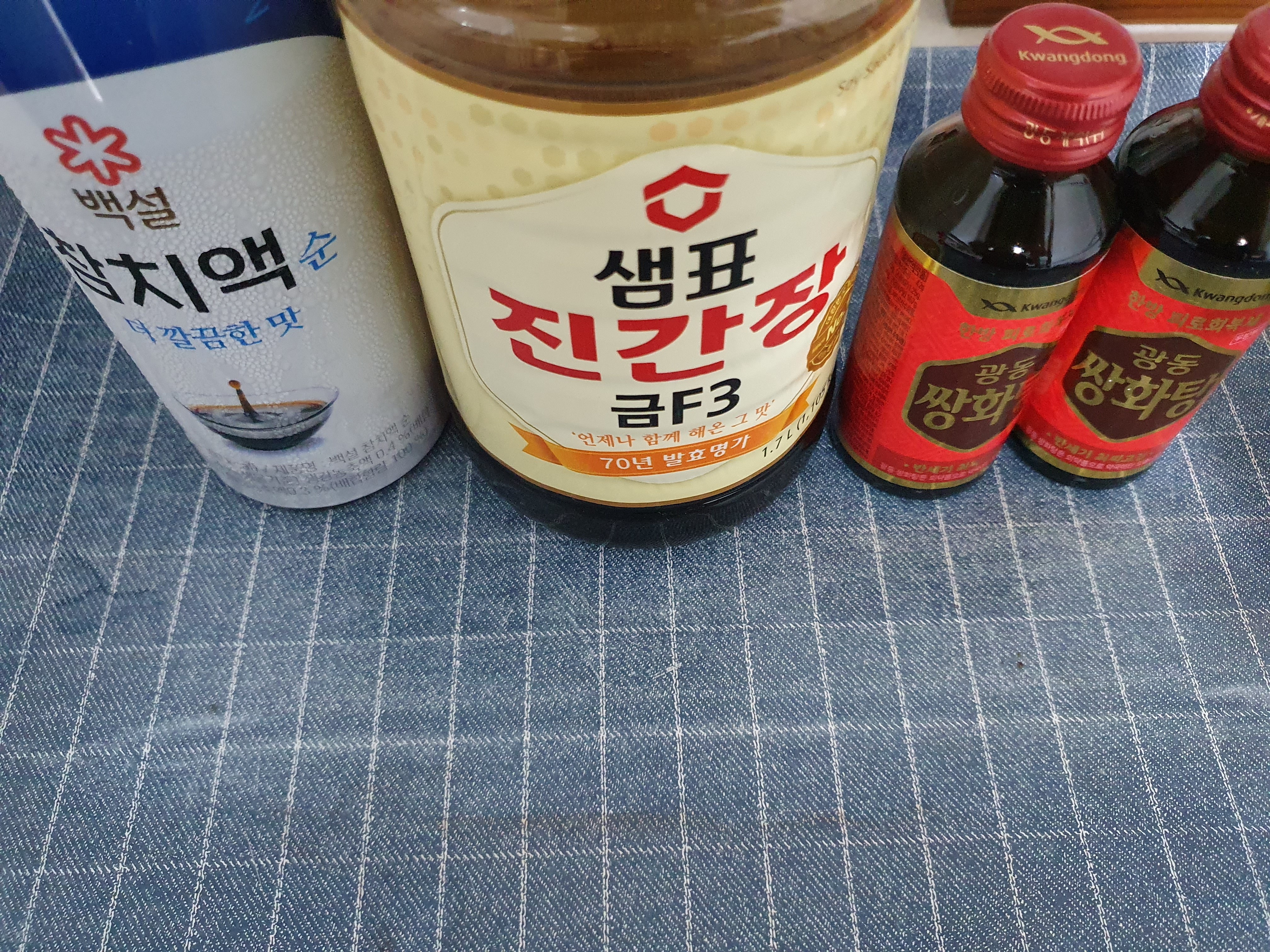 진간장에 쌍화탕, 참치액을 준비했습니다.