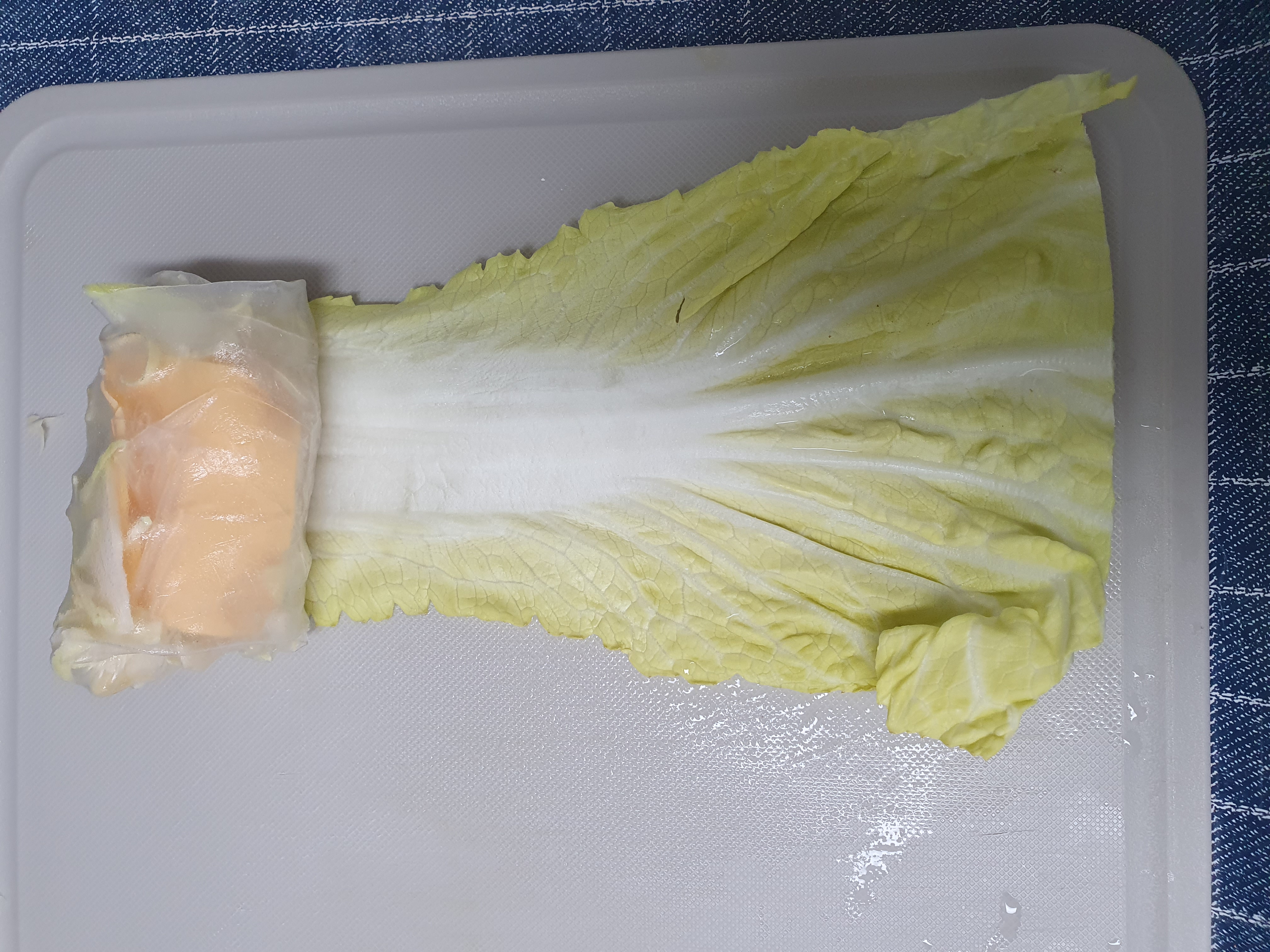이번에는 배춧잎으로 월남쌈을 한 번 더 감쌉니다.