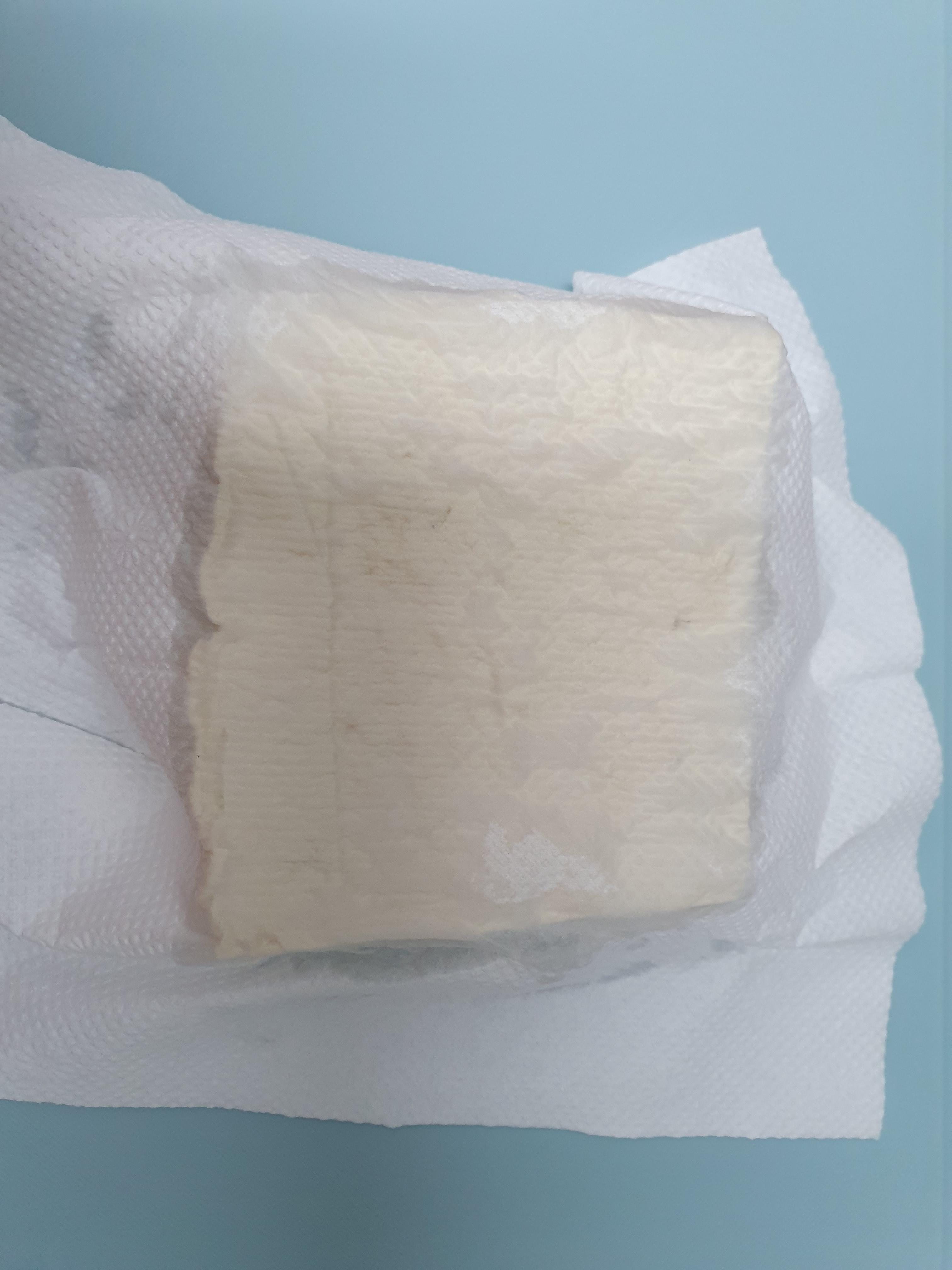 그래도 물기가 아직 남아 있어서 스킨 타월로 두부를 감싸서 물기를 더 빼 줍니다.