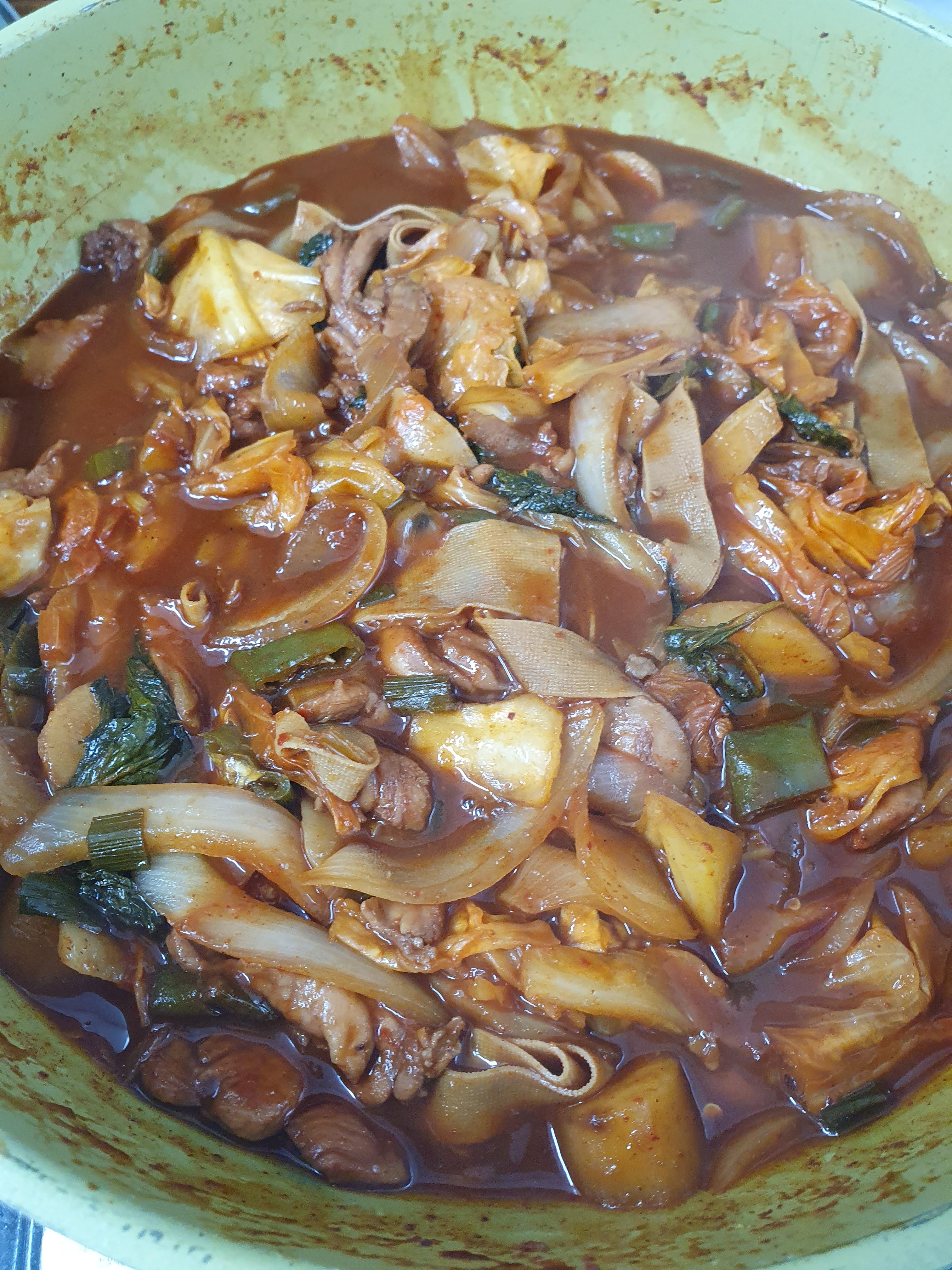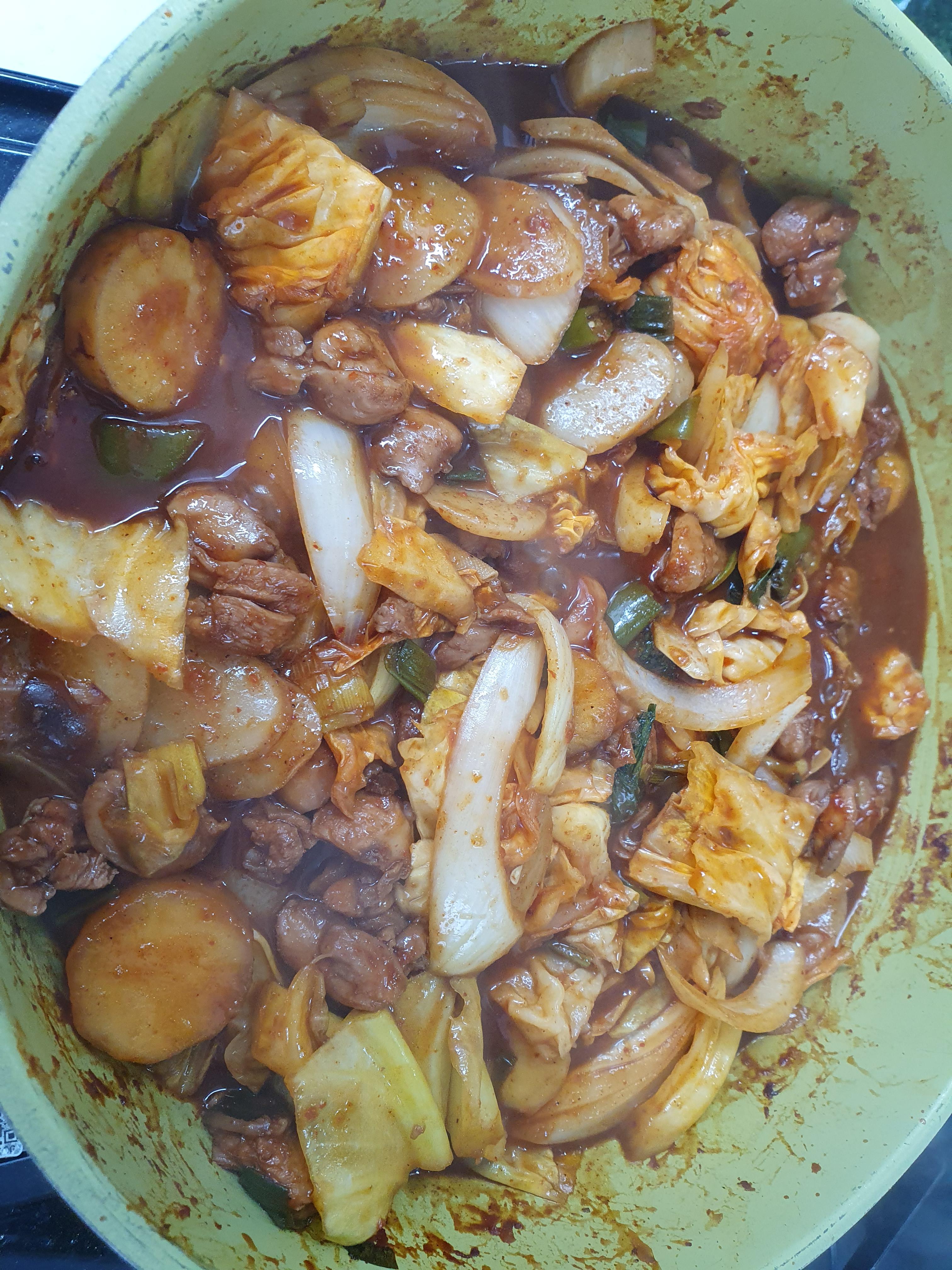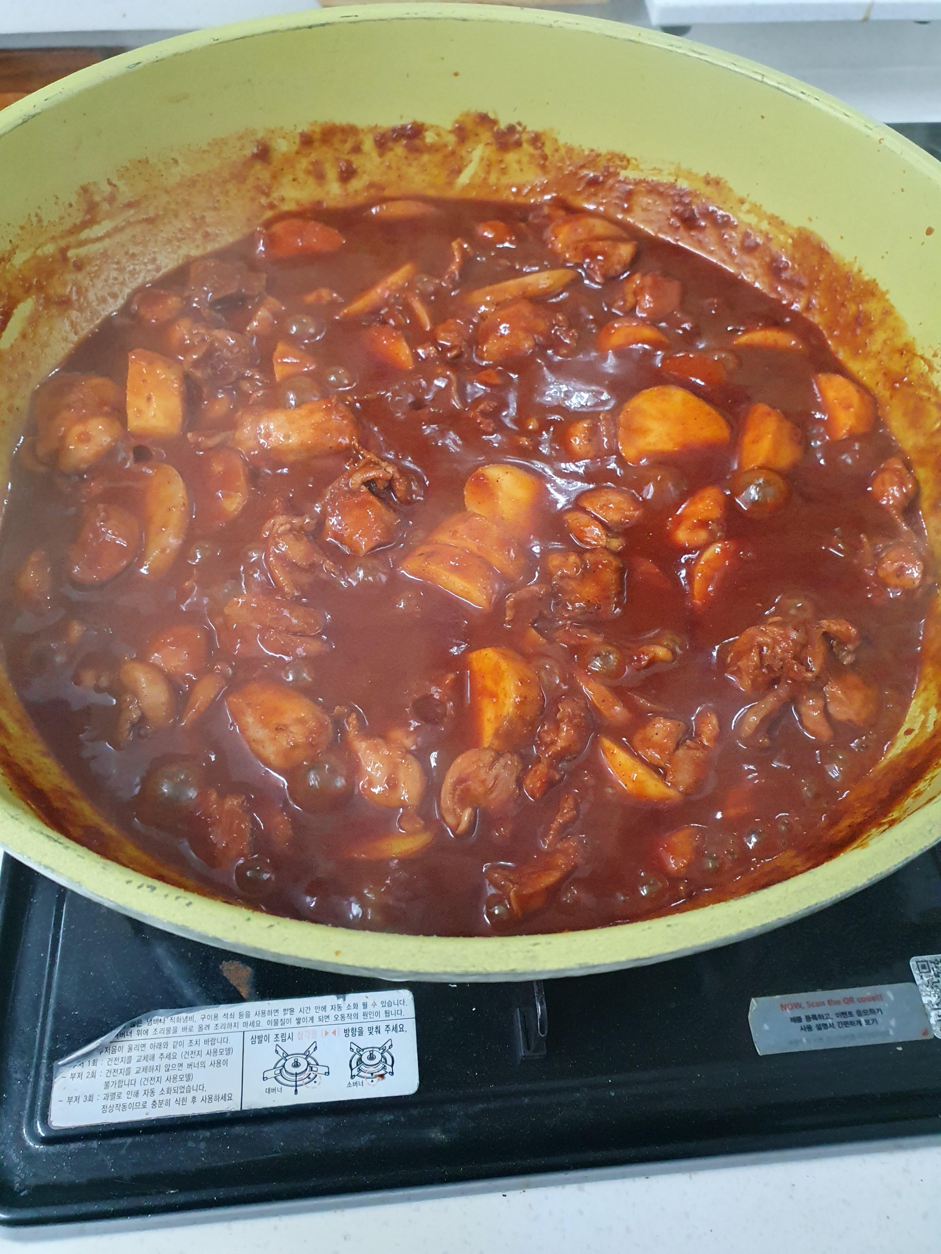 뚜껑을 덮어 줍니다. 닭갈비에서 떡볶이맛이 나서 저는 좋았는데 남편은 별로라고 하네요 ㅎ