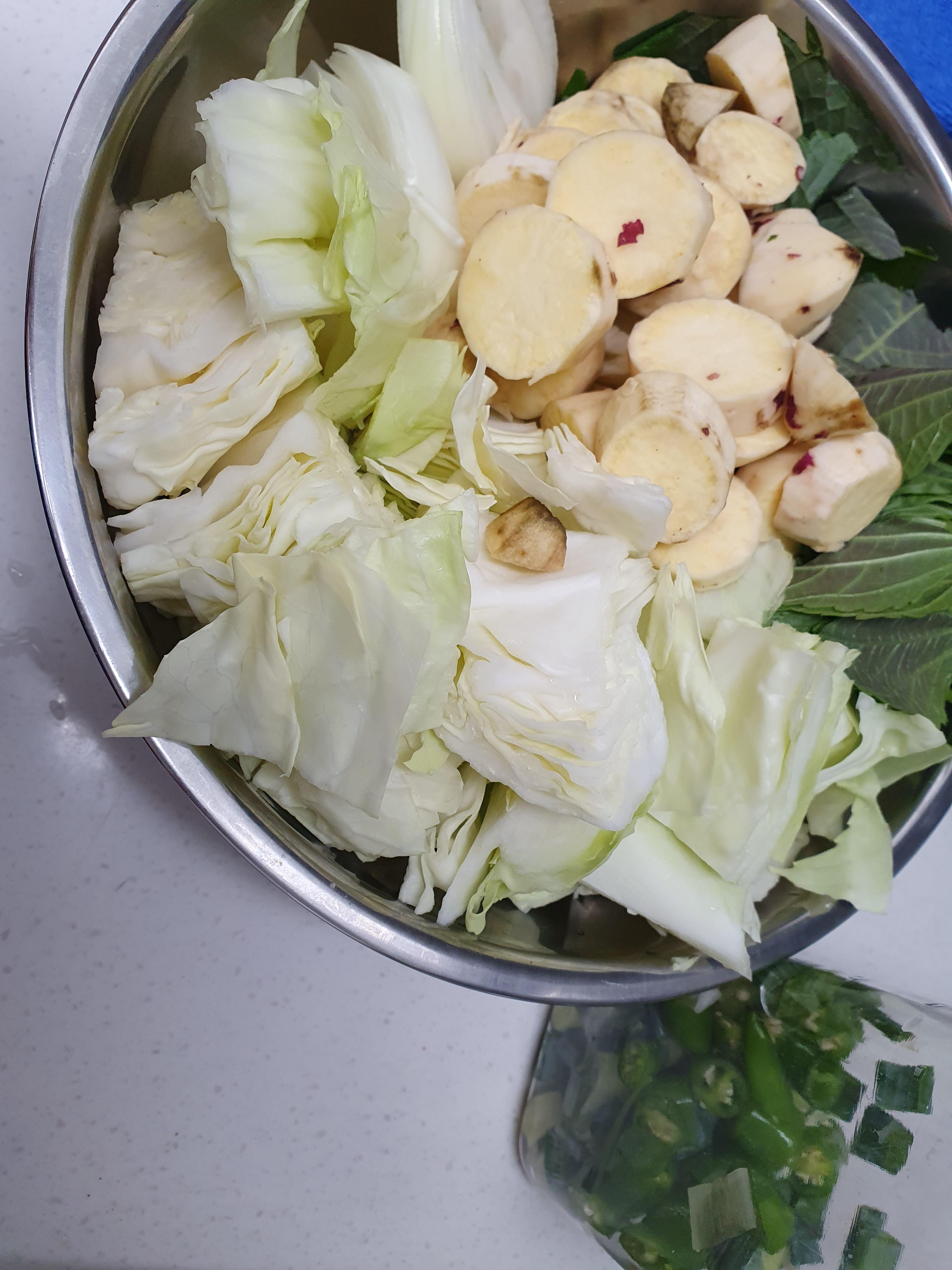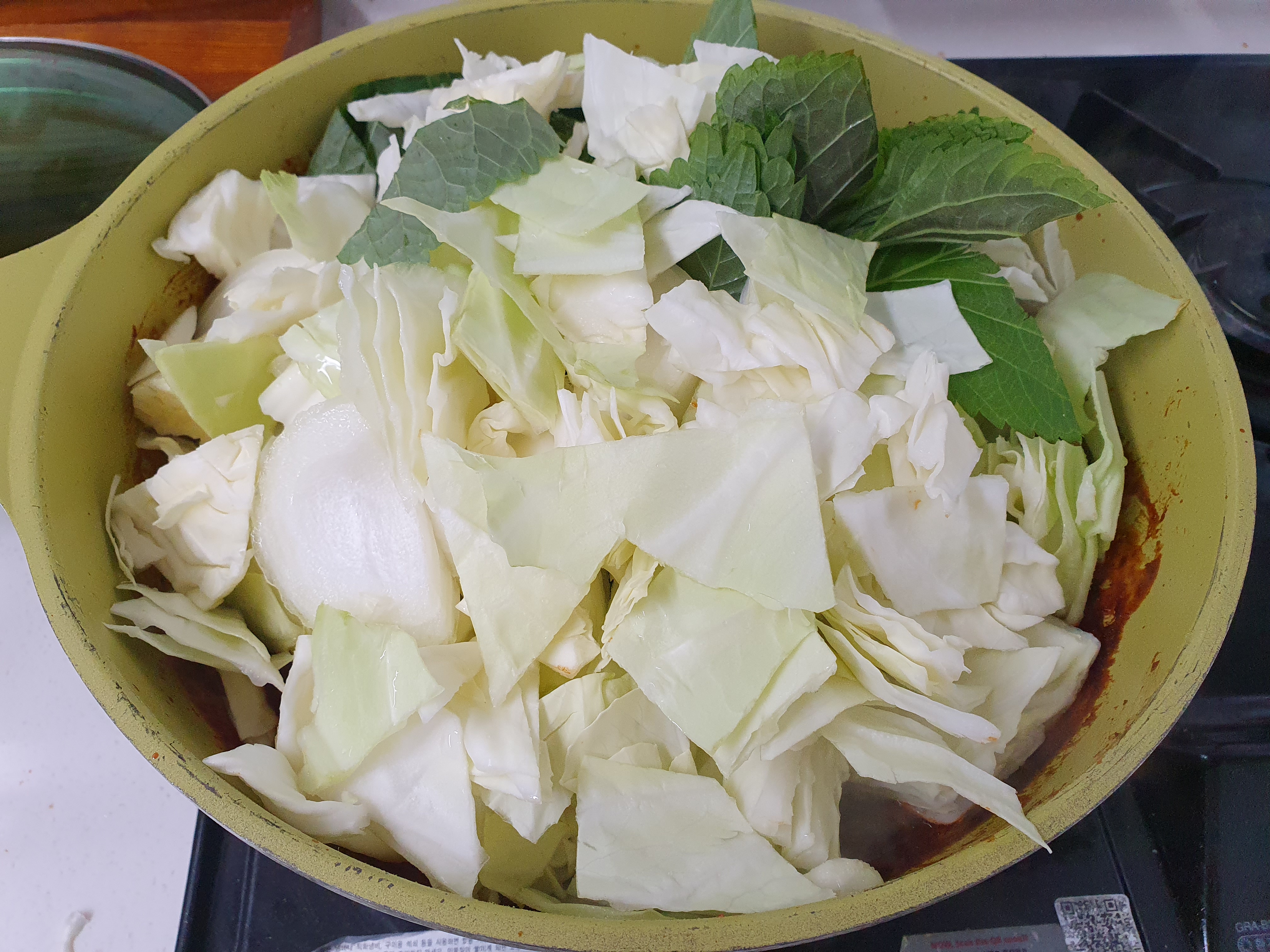 야채는 큼직하게 썰어서 준비해 줍니다. 양배추양이 가장 많네요.