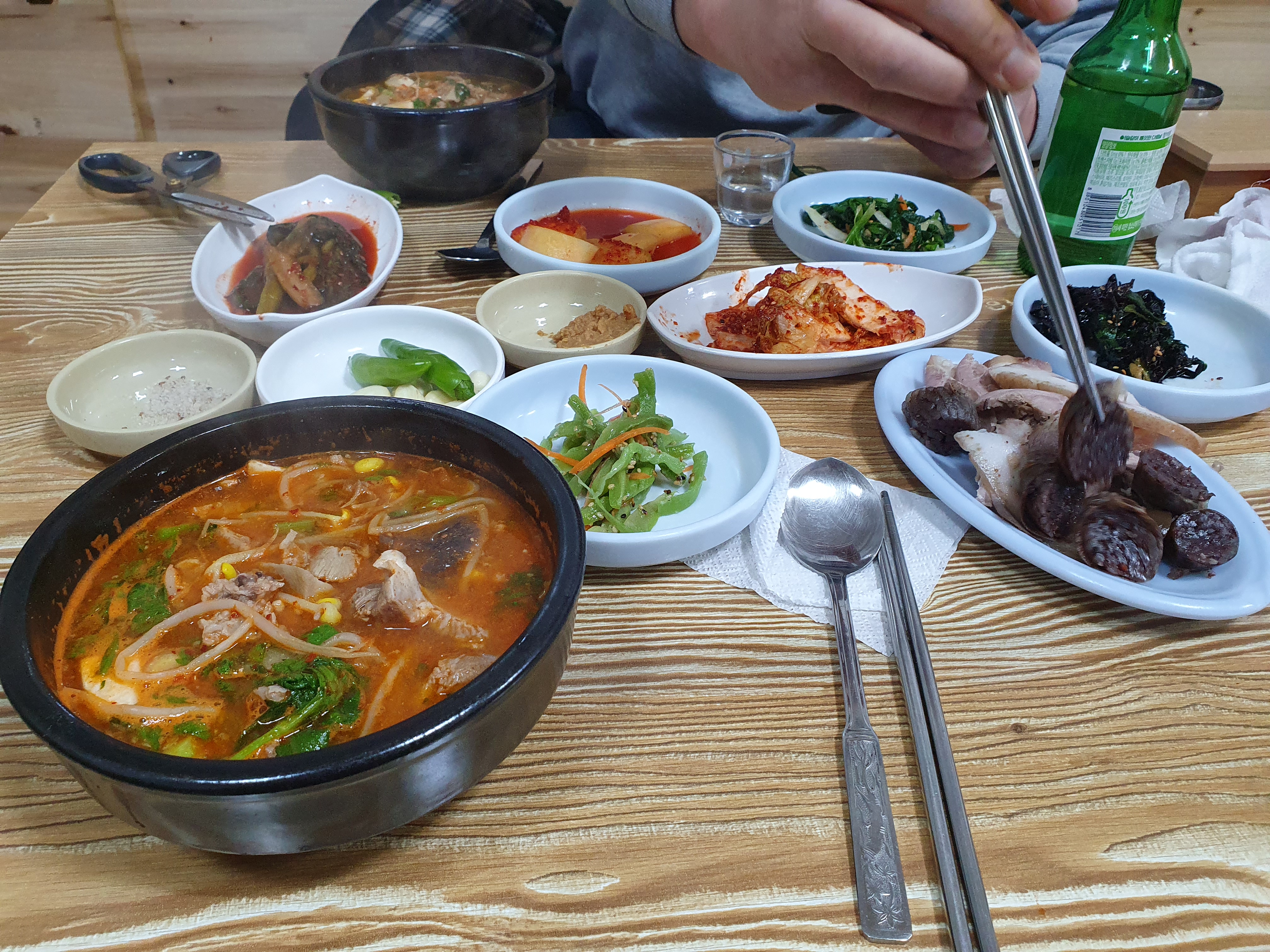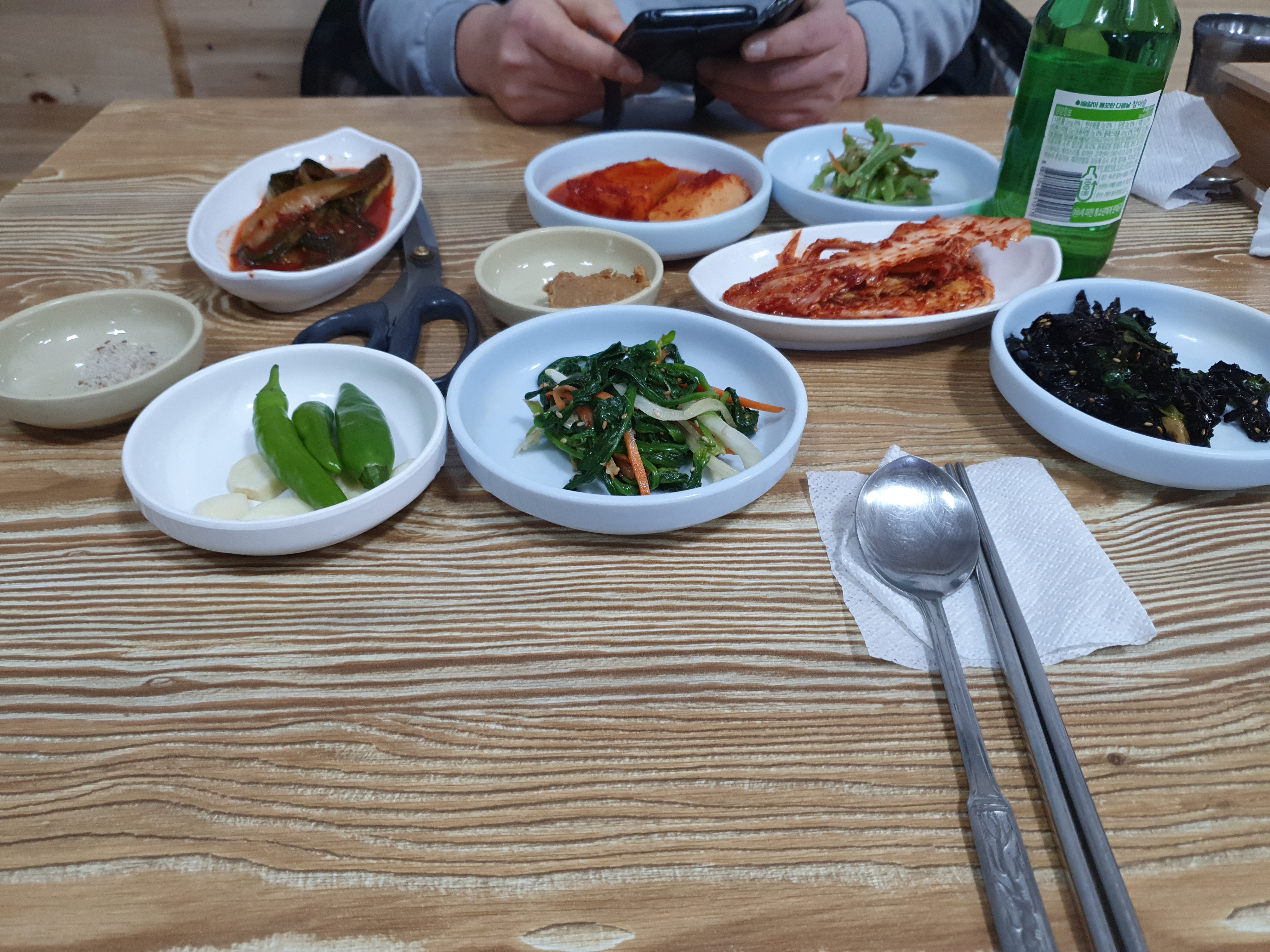 대나무대 비슷한 나물 같은데 이름을 모르는 나물도 있고, 김무침, 시금치무침, 갓김치, 섞박지, 겉절이. 섞박지는 국밥과 먹기에 궁합이 딱 맞아서인지 세 번이나 더 달라고 해서 먹었네요.