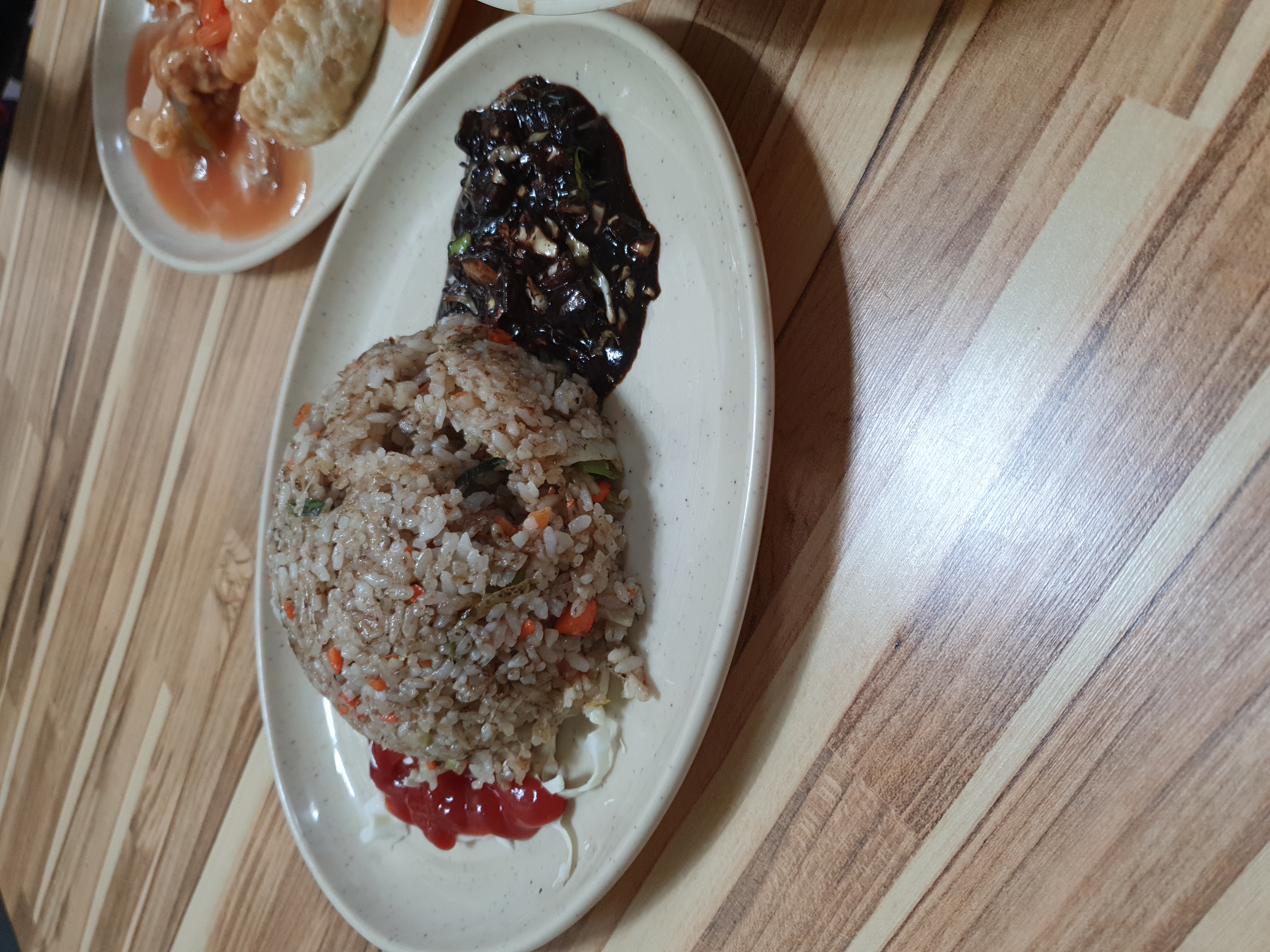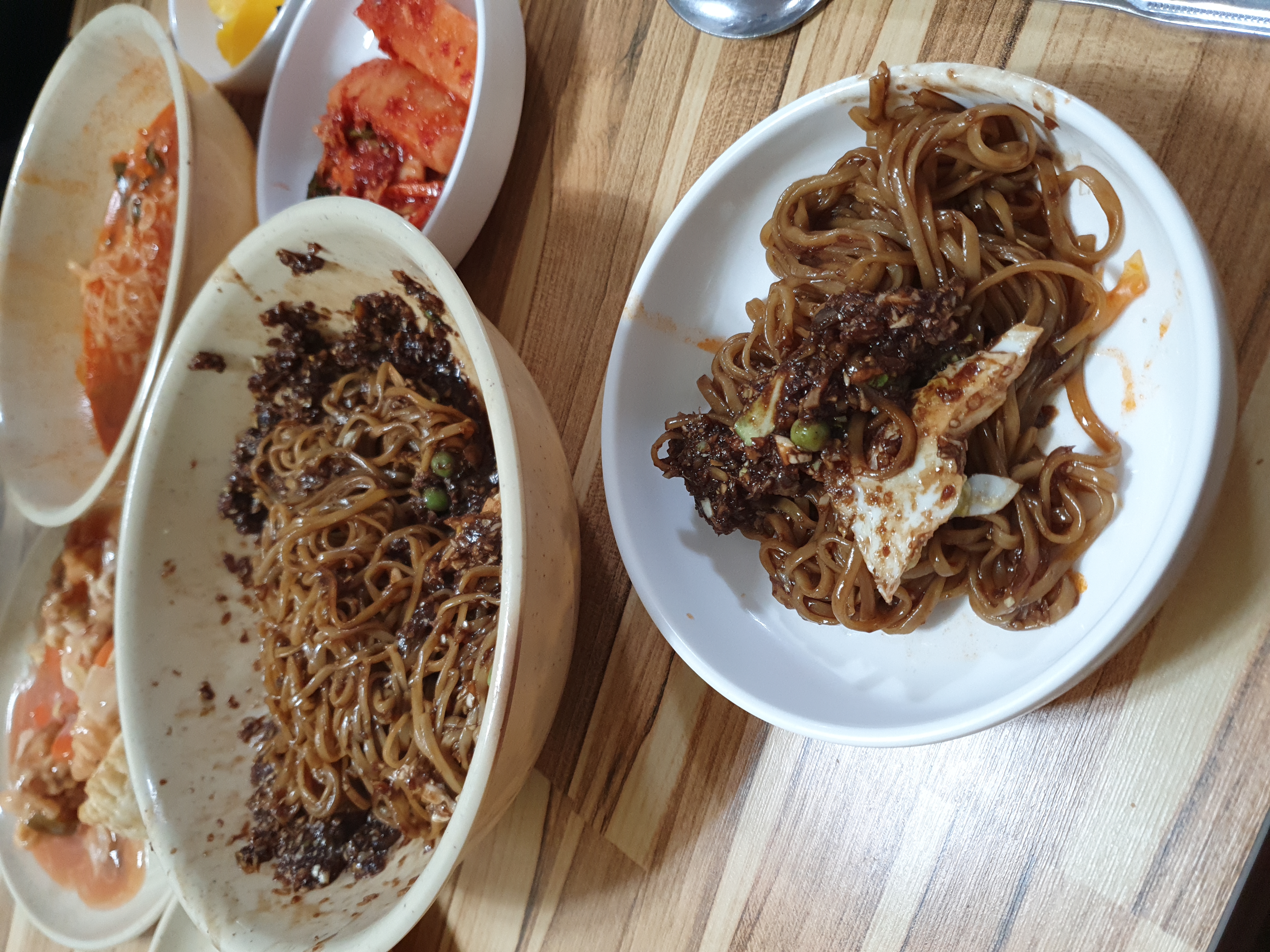 중깐은 자장면인데 다른 자장면과 달리 면발이 가늘었습니다. 그리고 춘장은 고기를 다지고, 양배추, 양파 또 다른 채소를 넣어서 만든 거 같았습니다.