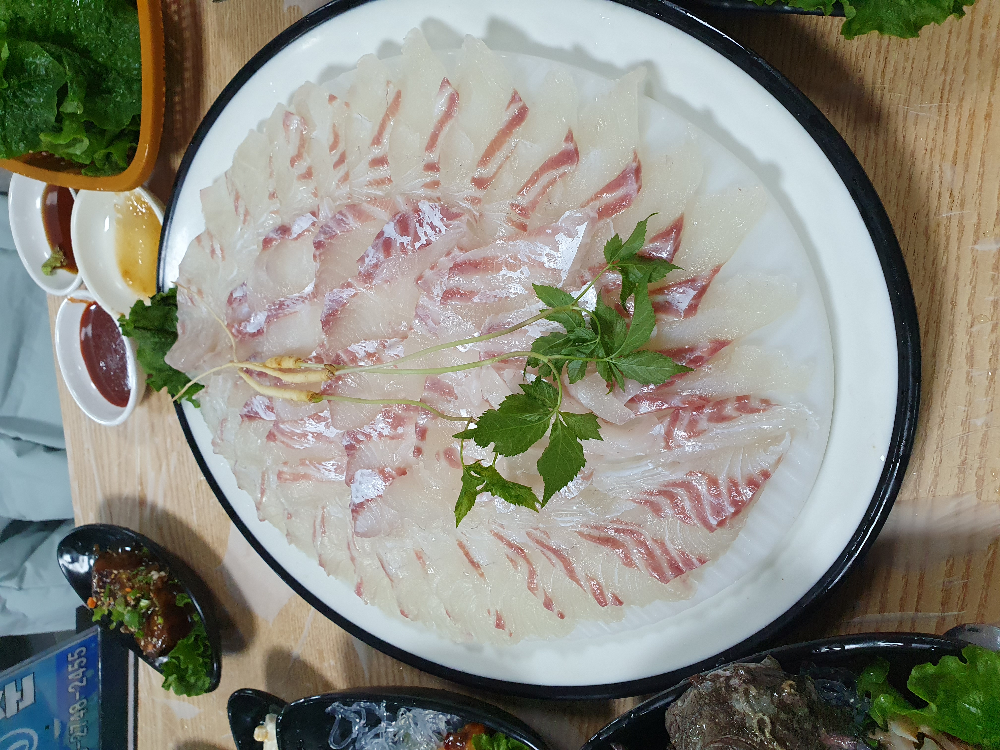 목포회센터에서 참돔회와 전복버터구이를 먹었습니다. 3명이서 먹었는데 양이 푸짐해서 참돔회는 3분의 1이나 남아서 집으로 포장해서 왔네요. ㅎ