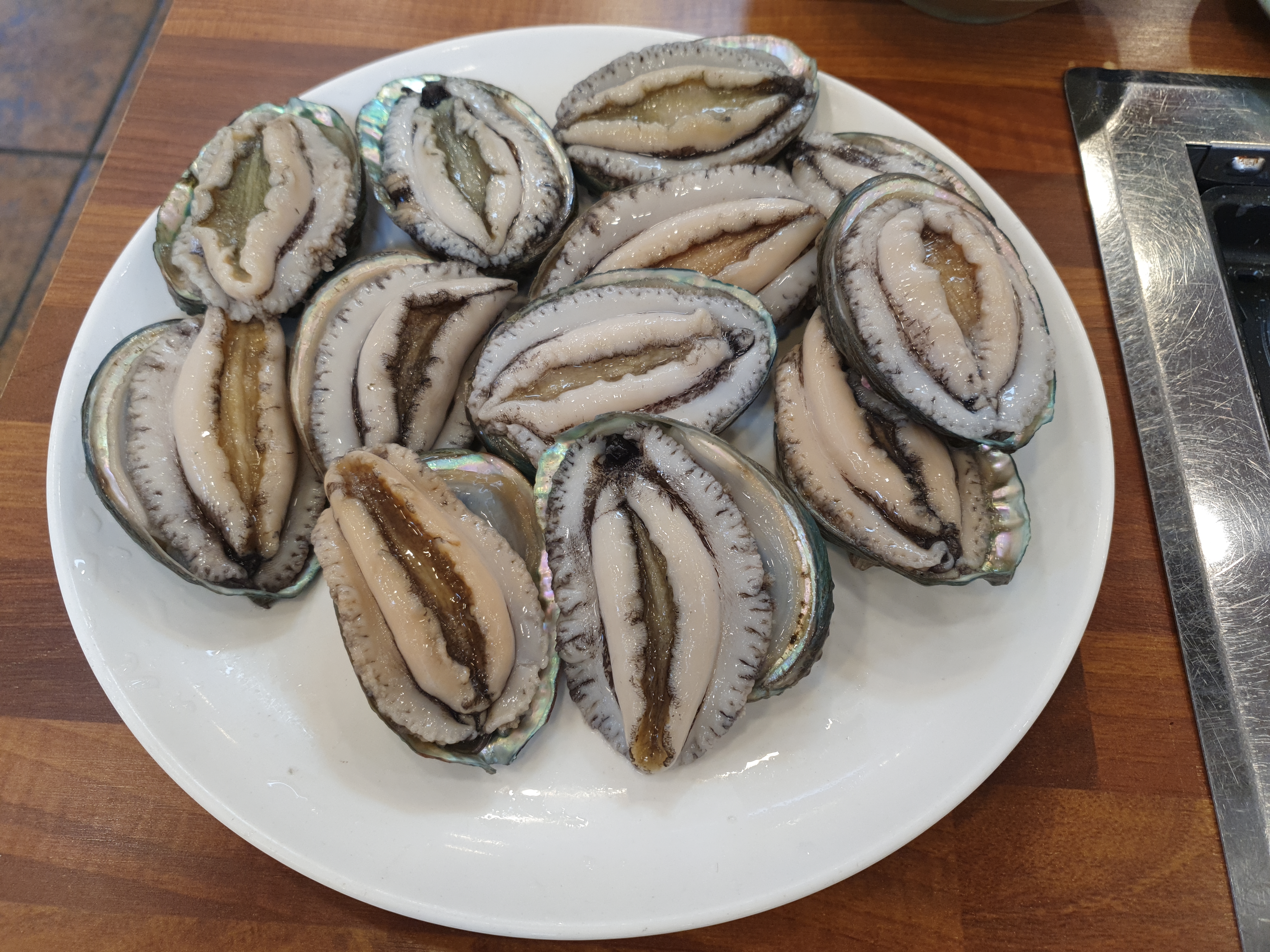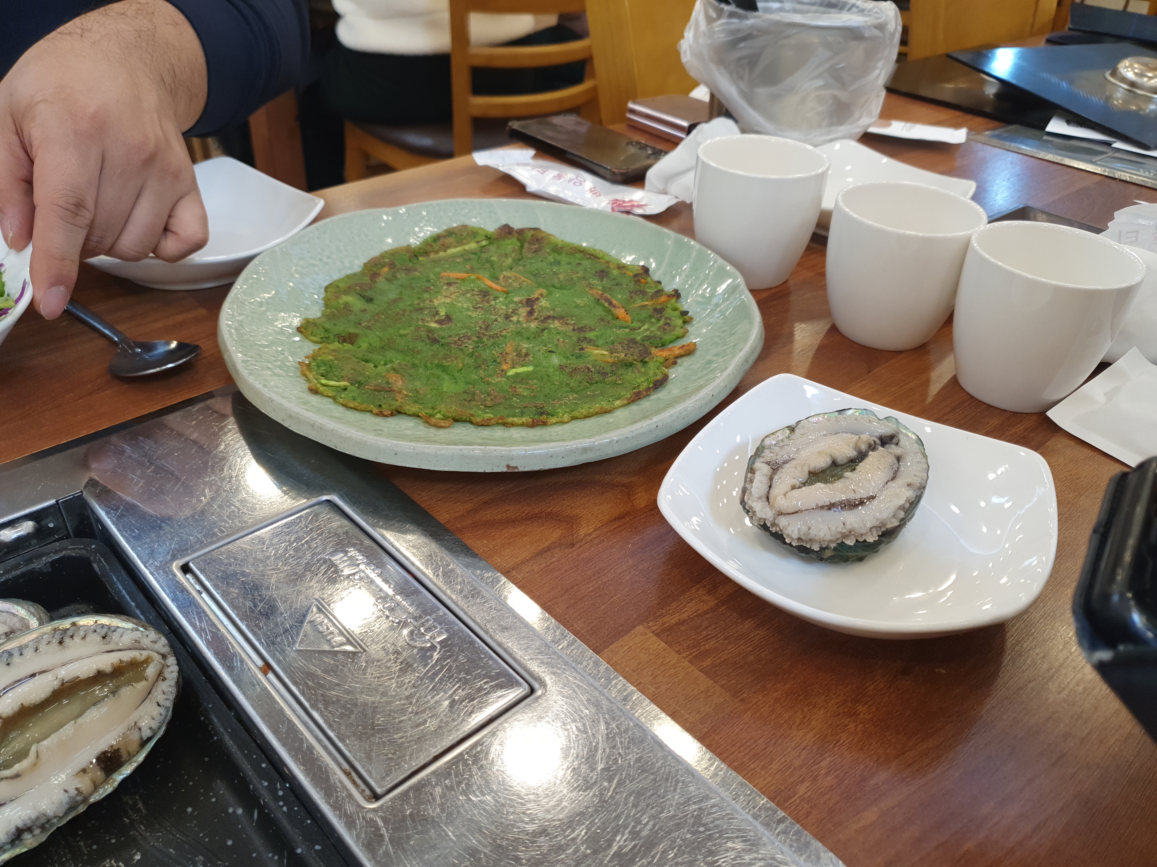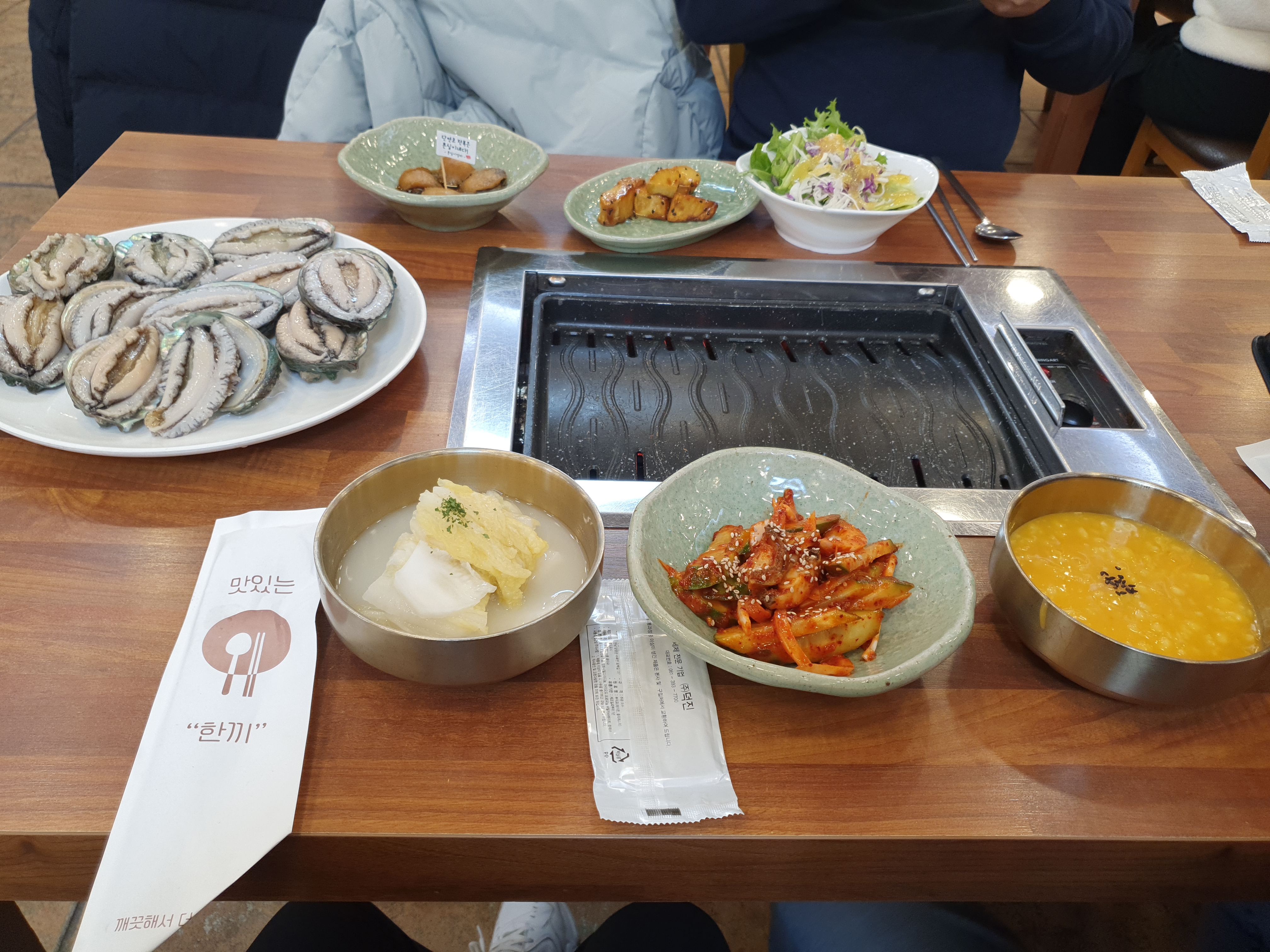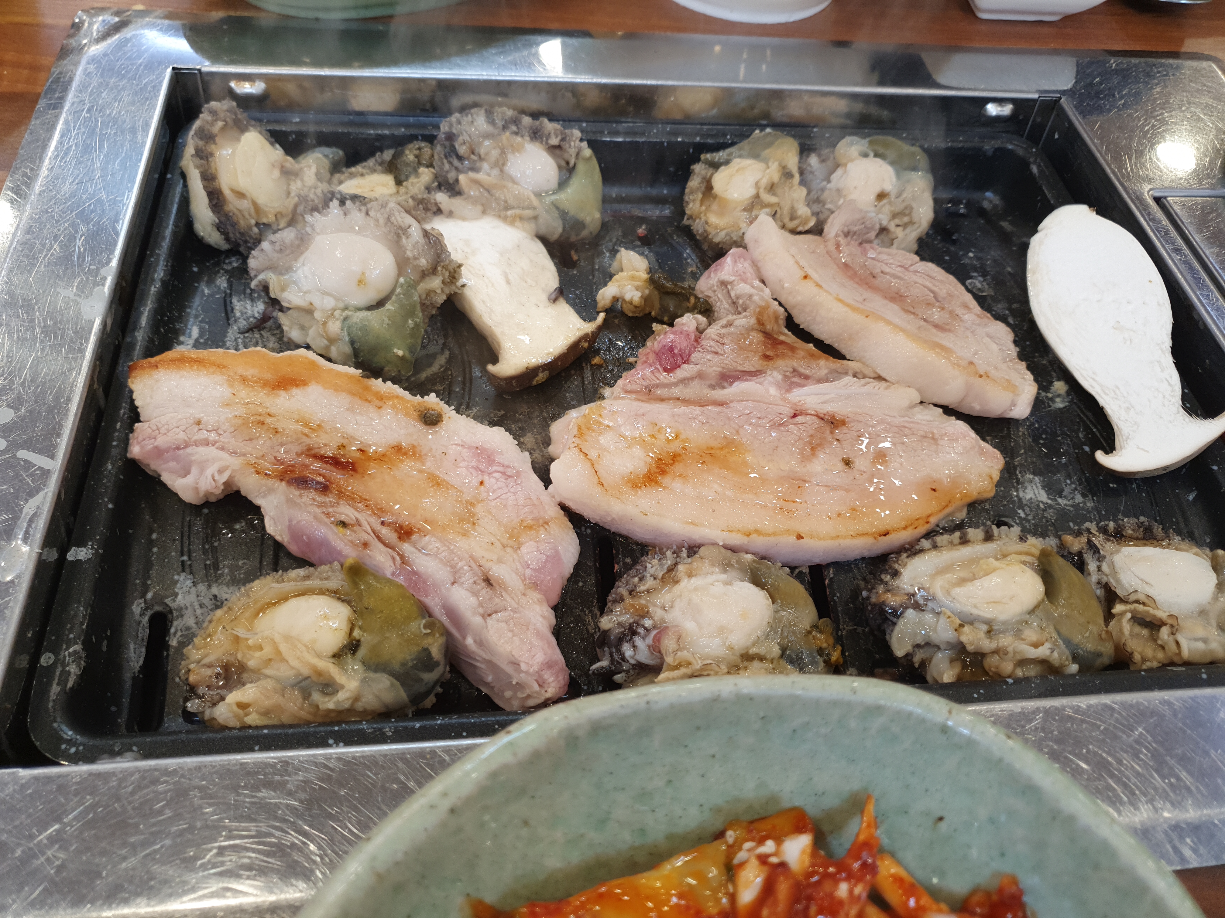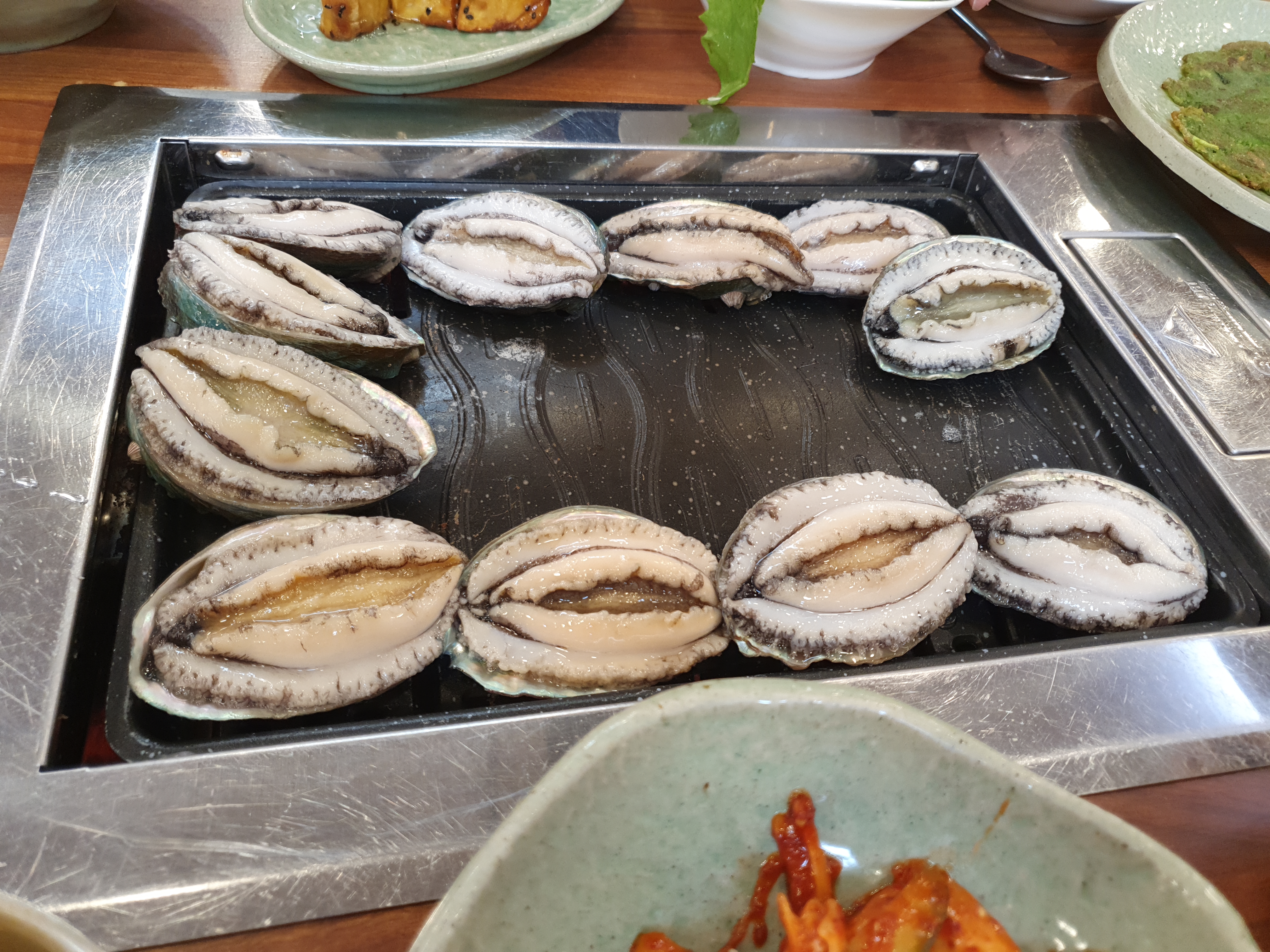 먼저 달궈진 불판에 전복을 구워줍니다.