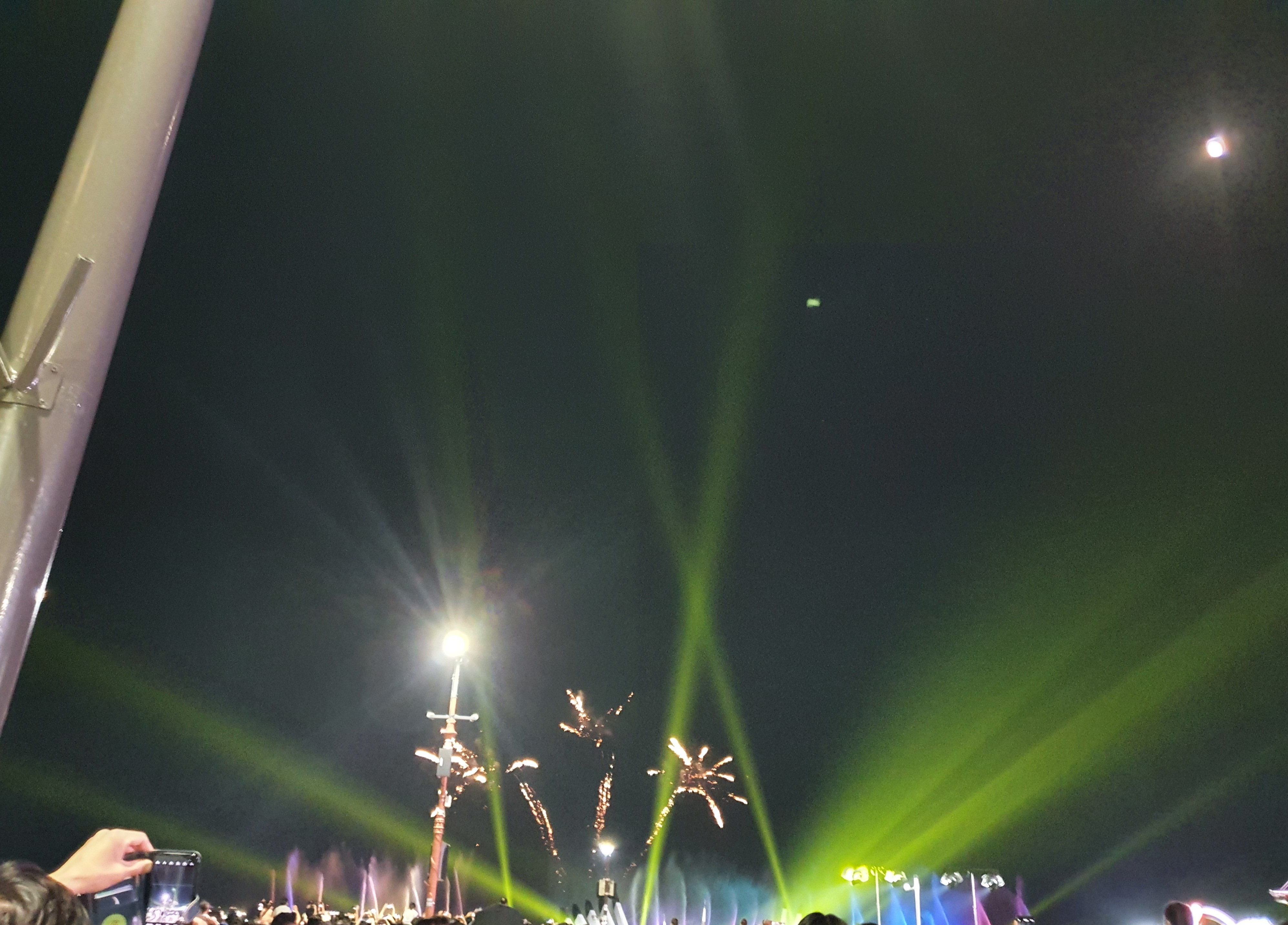 아래쪽에서 분수가 춤을 추고 있어도 사람들이 많아서 앞쪽으로 갈 수가 없다.