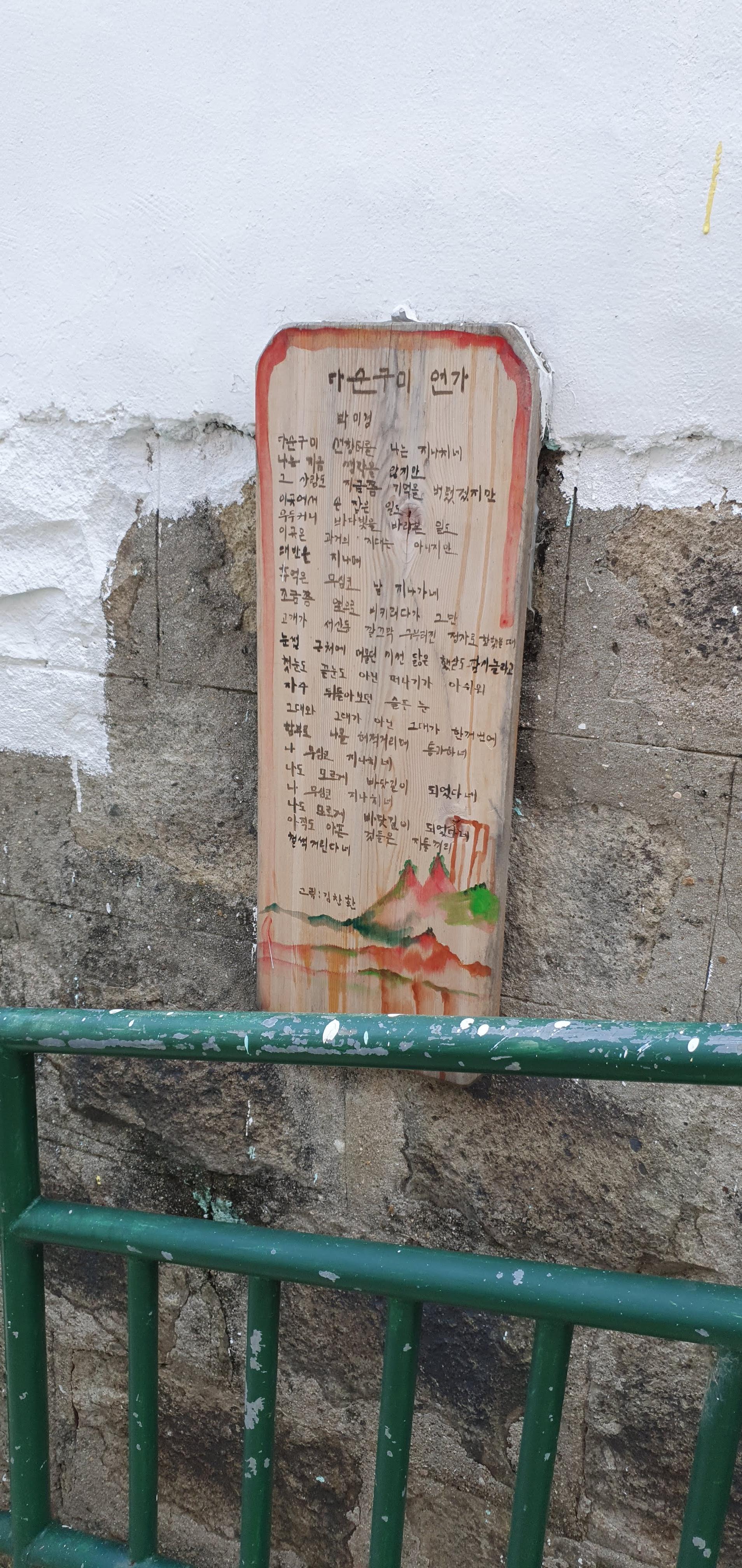 지금 보는 시화들은 모두 셋째 골목에 있는 작품들입니다. 첫째, 둘째 골목에서는 시화들을 자세히 찍지는 않았어요. 제가 셋째 골목부터 간 이유는 따로 있지는 않습니다. 첫째, 둘째 골목은 단체관광객들이 가고 있어서 줄을 서고 있었기 때문에 사람이 더 적은 셋째 골목부터 갔어요.