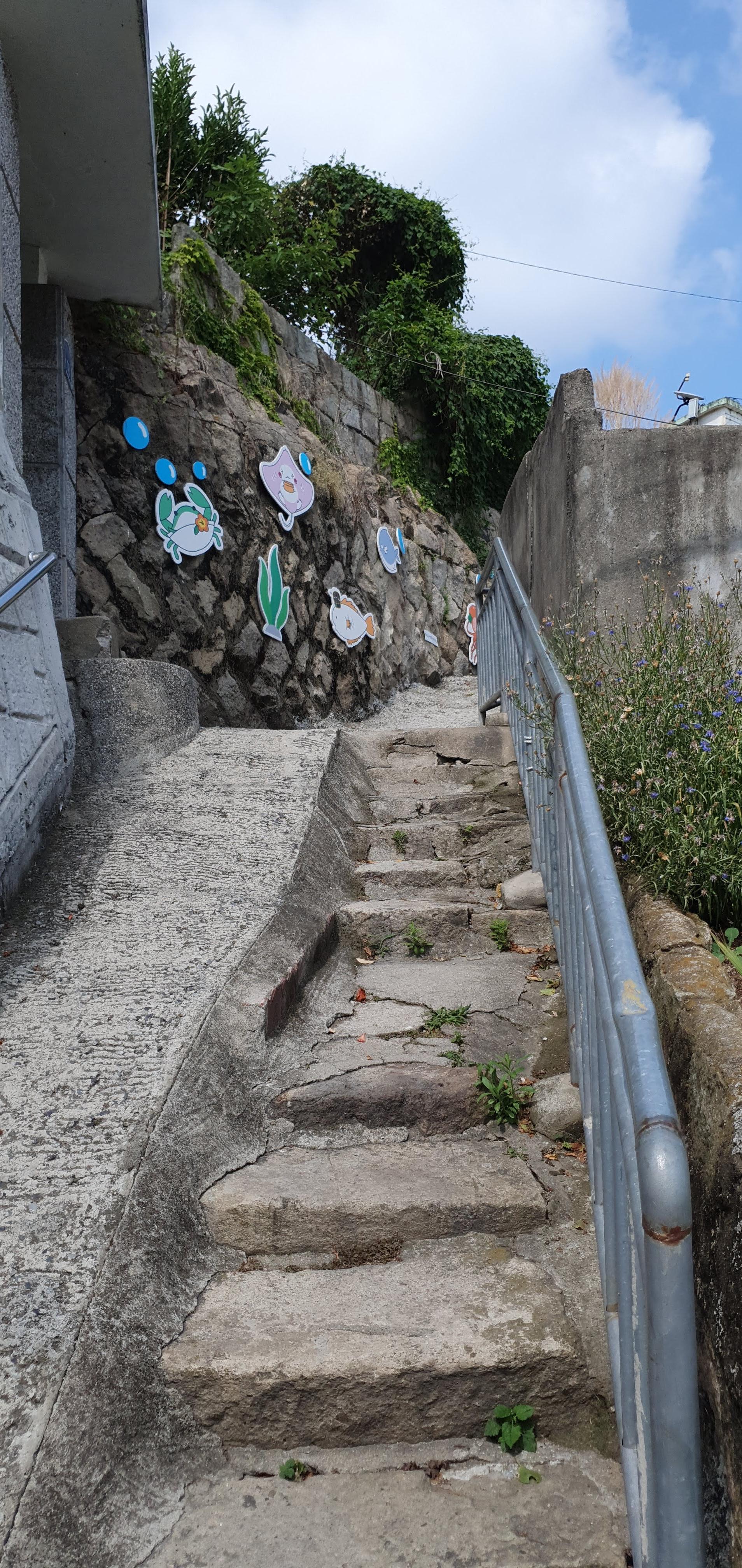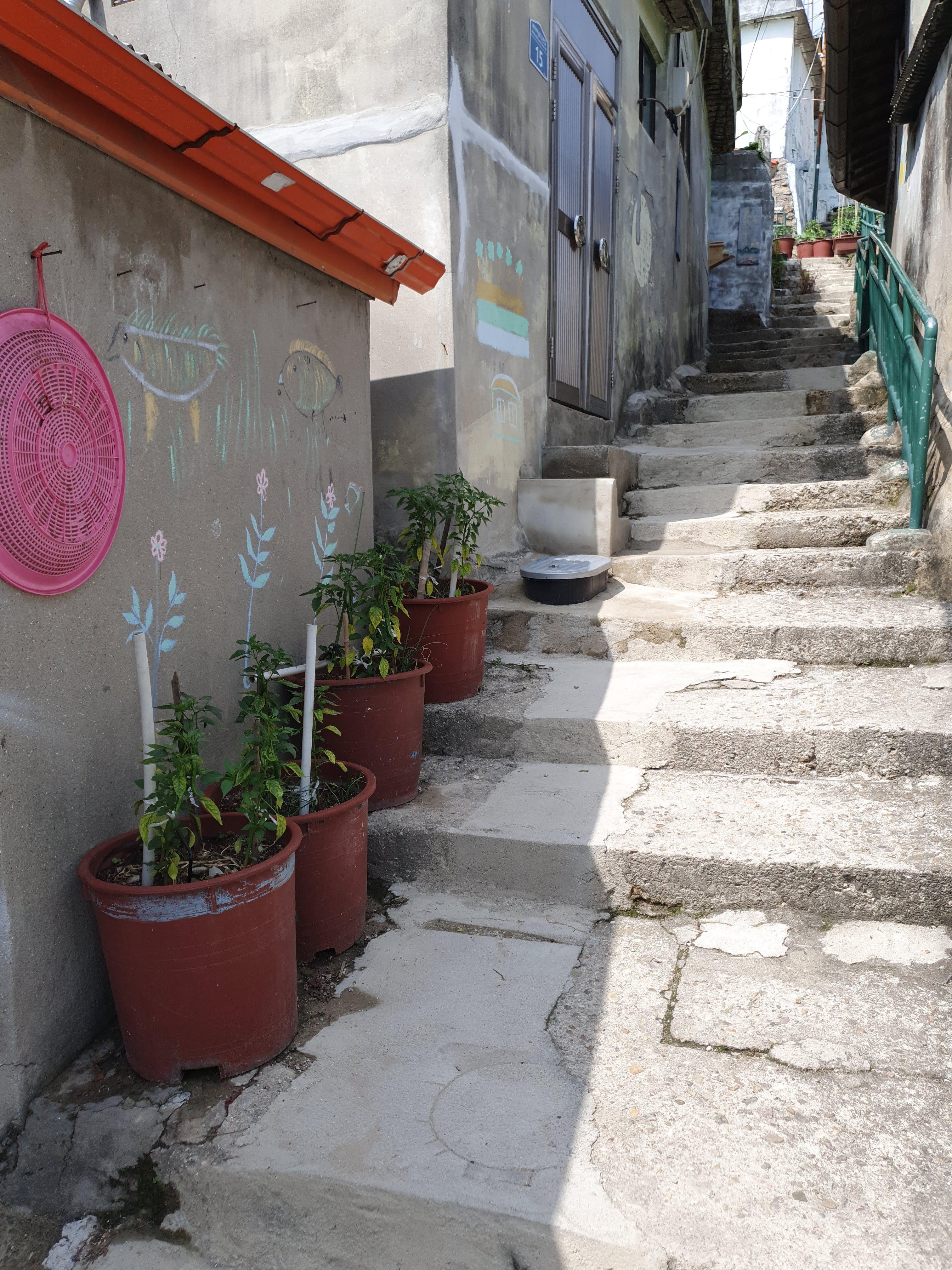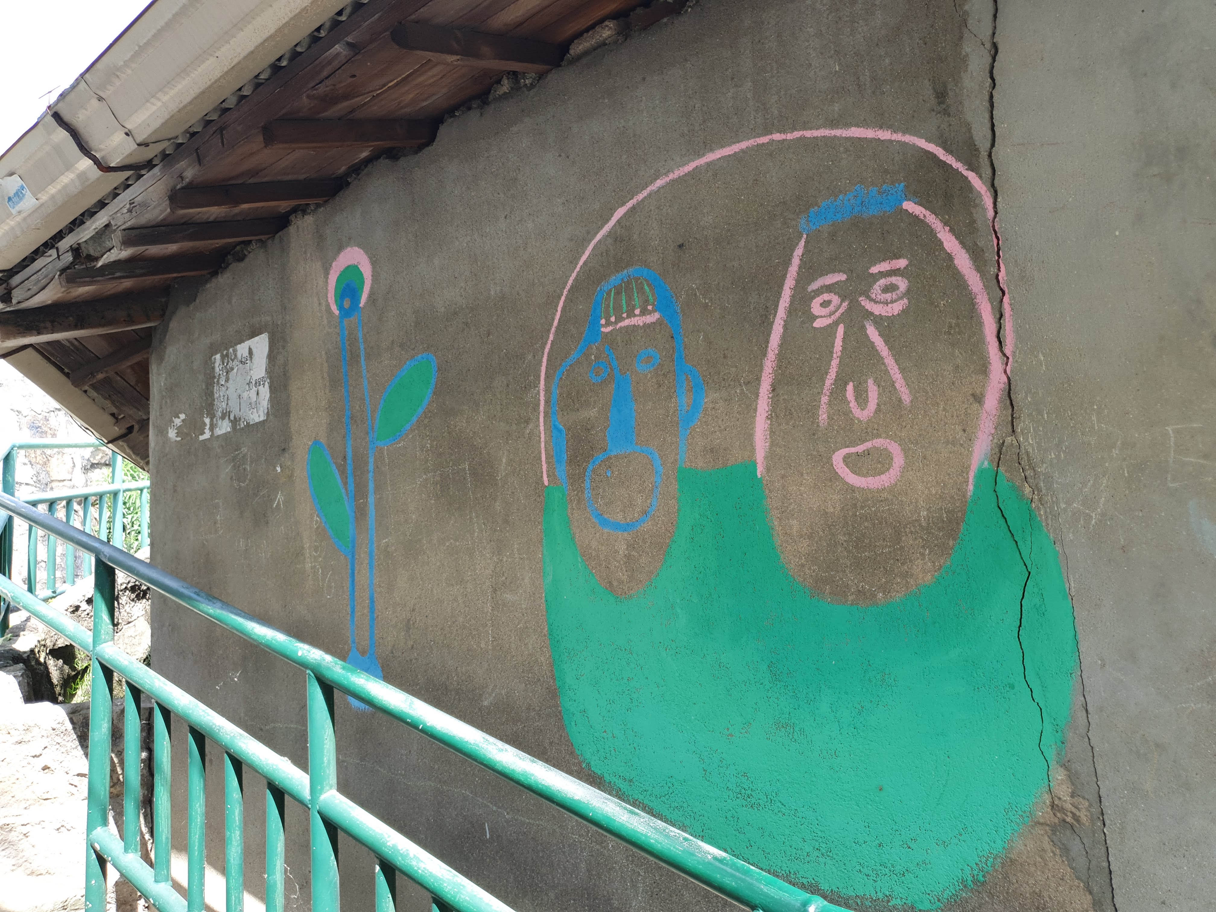 좁은 계단을 올라가다 보면, 담벼락에 분필로 그려놓은 그림과 시들도 보입니다. 비바람, 눈을 많이 맞다 보면 이런 작품들은 나중에는 볼 수 없을 거 같습니다. 그래서 서둘러 사진을 찍었죠^^ 골목길은 어른 2명 정도가 올라갈 수 있는 폭이었습니다. 내려오는 사람도 있기 때문에 한 줄로 가면 더 좋을 거 같다는 생각을 했죠.