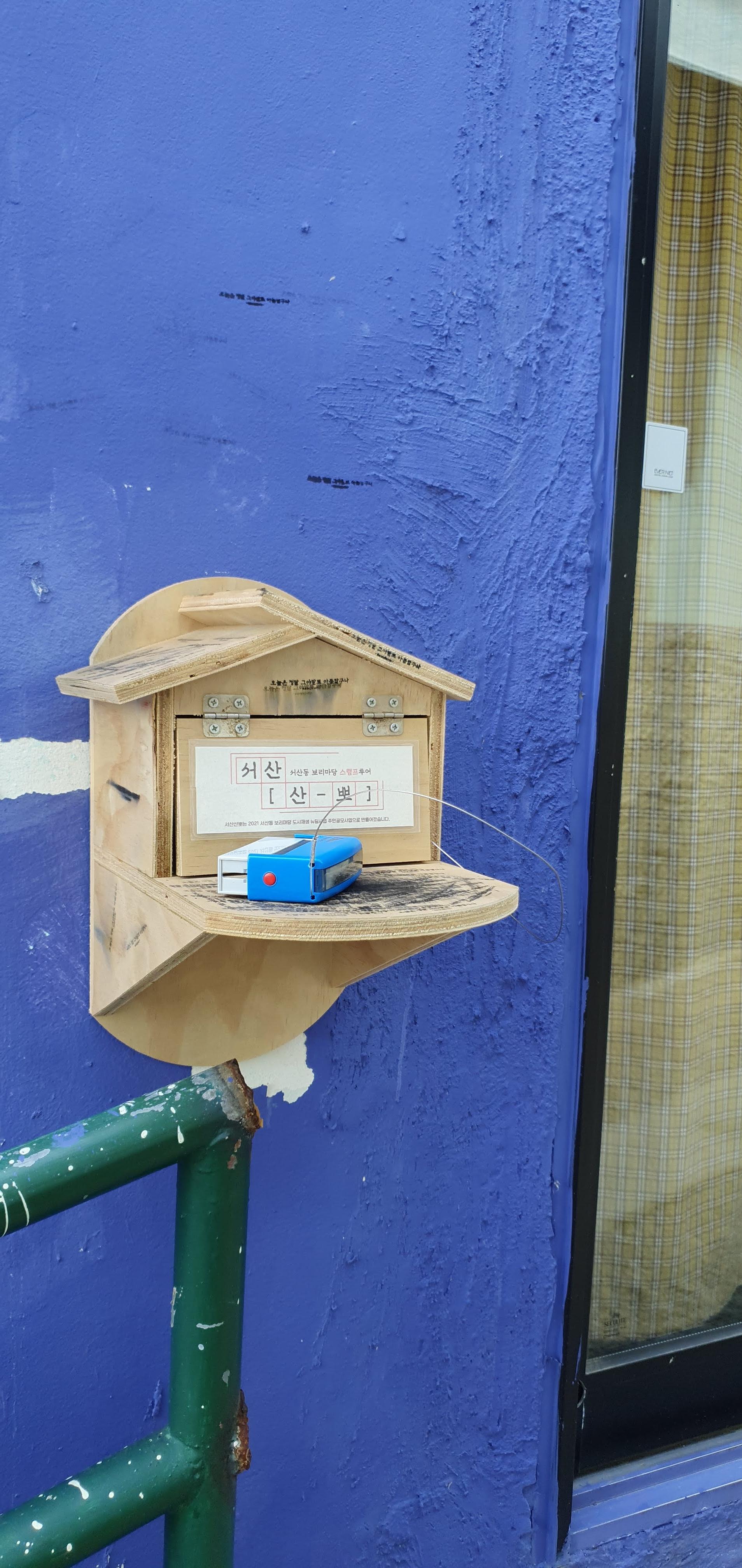 1번 정류장 근처에서 내리면 위 사진처럼 나무상자가 쌓여 있는 곳이 보입니다. 이 길 반대편에 서산동 시화마을 입구가 보이죠.