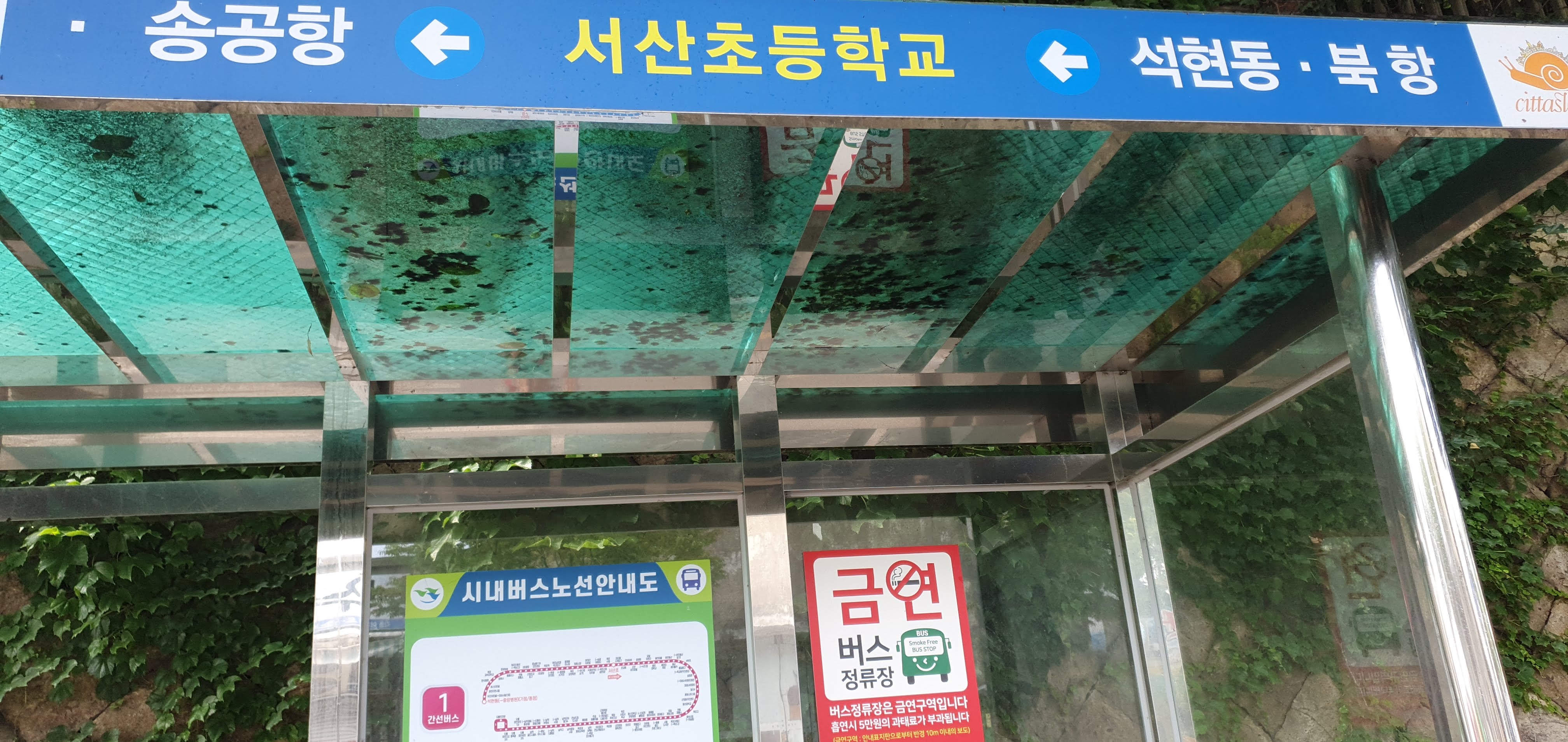 버스를 타고 오실 분들은 정류장 '서산초등학교'에서 내리시면 됩니다. 목포역에서 1번 버스 타셔도 되구요. 다른 번호 버스도 있는데 사진이 잘렸네요 ㅎ 버스를 이용하실 경우, '1번 버스'를 타면 구도심의 웬만한 관광지는 보실 수 있으실 겁니다.