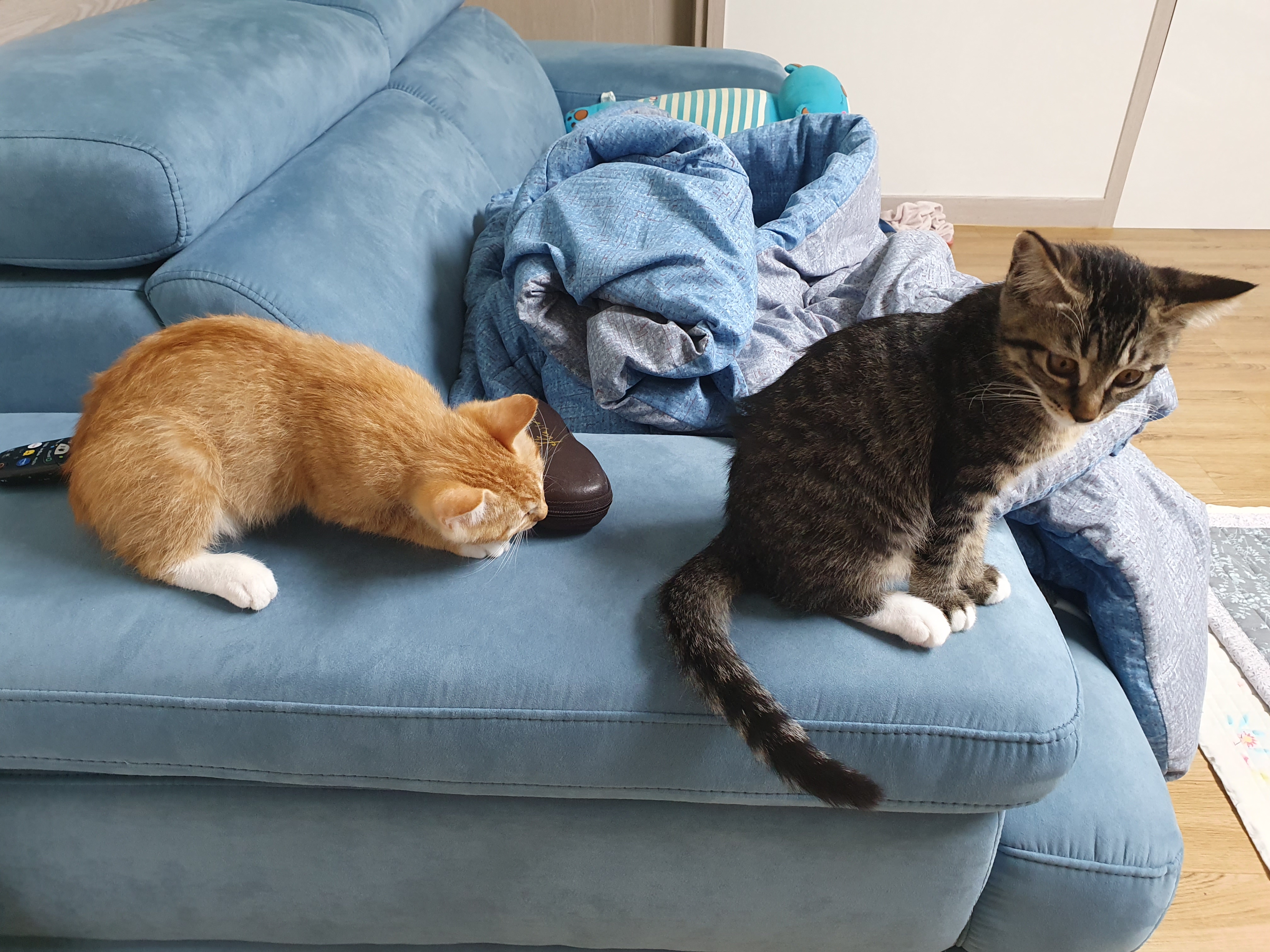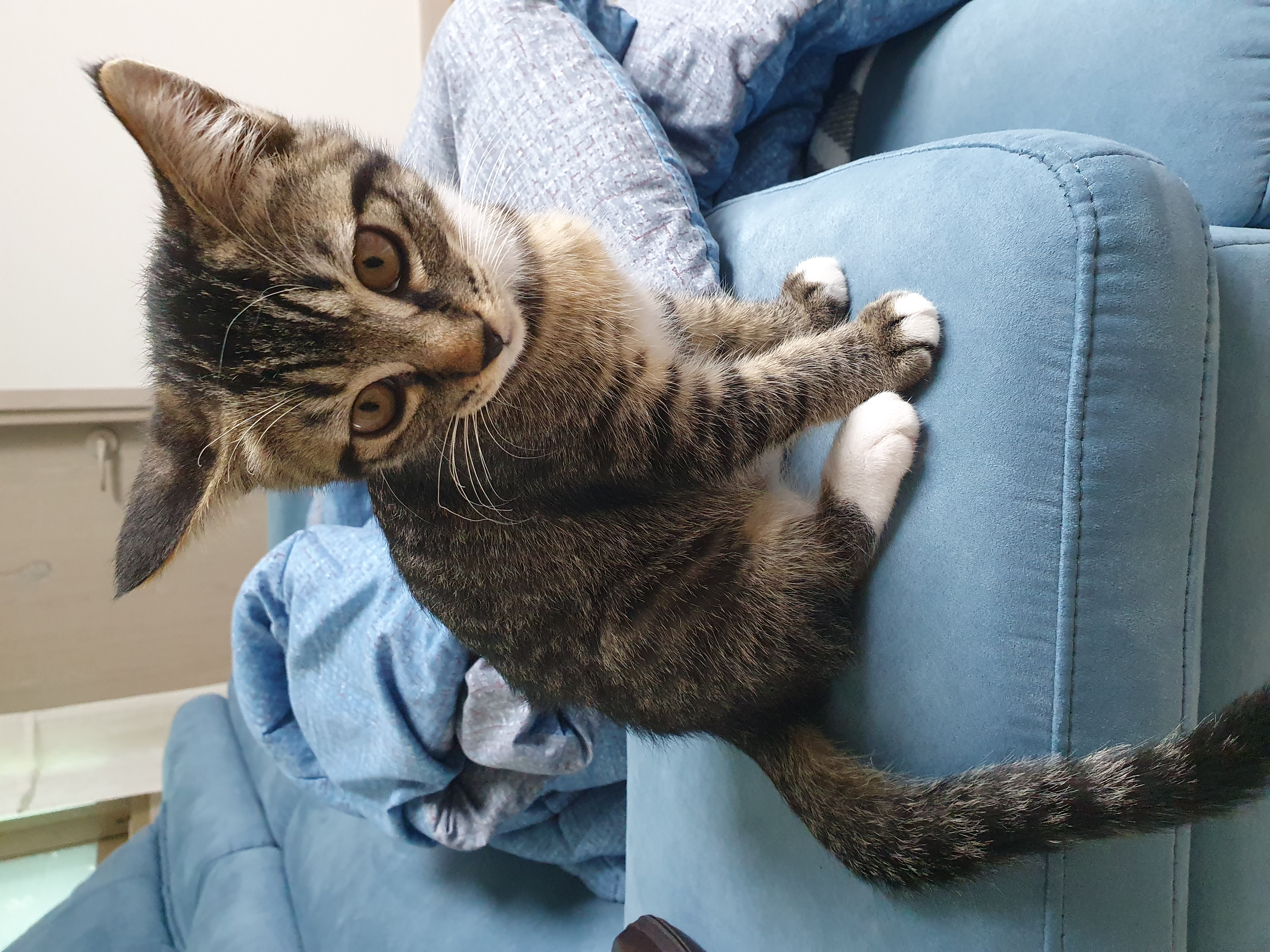 쇼파에 좋아하는 담요를 깔아 놓았더니 그 위에 곧장 올라갑니다.