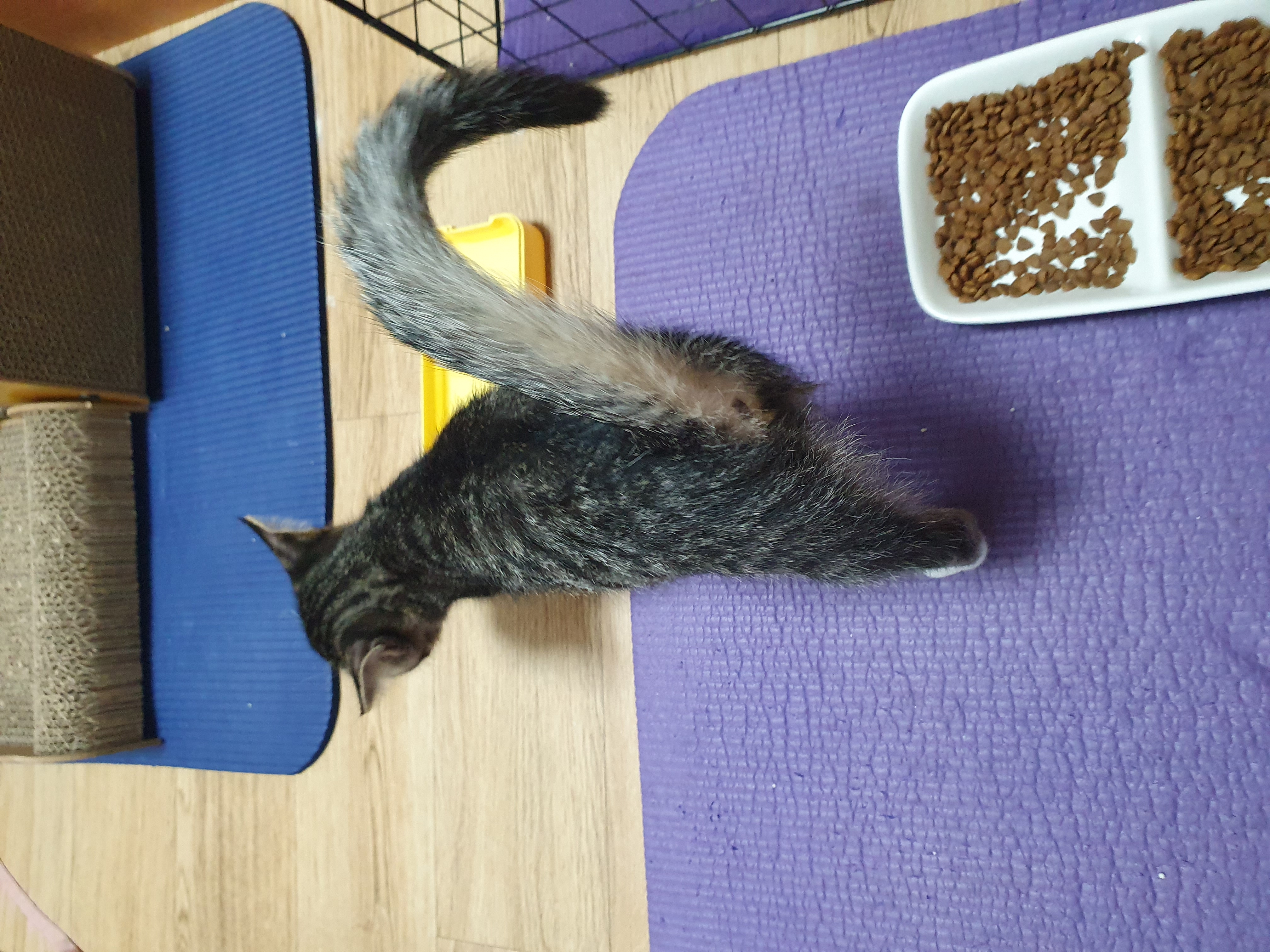송이가 저녁이 되어서야 사료를 먹으러 일어났네요, 휴우~ 다행입니다.