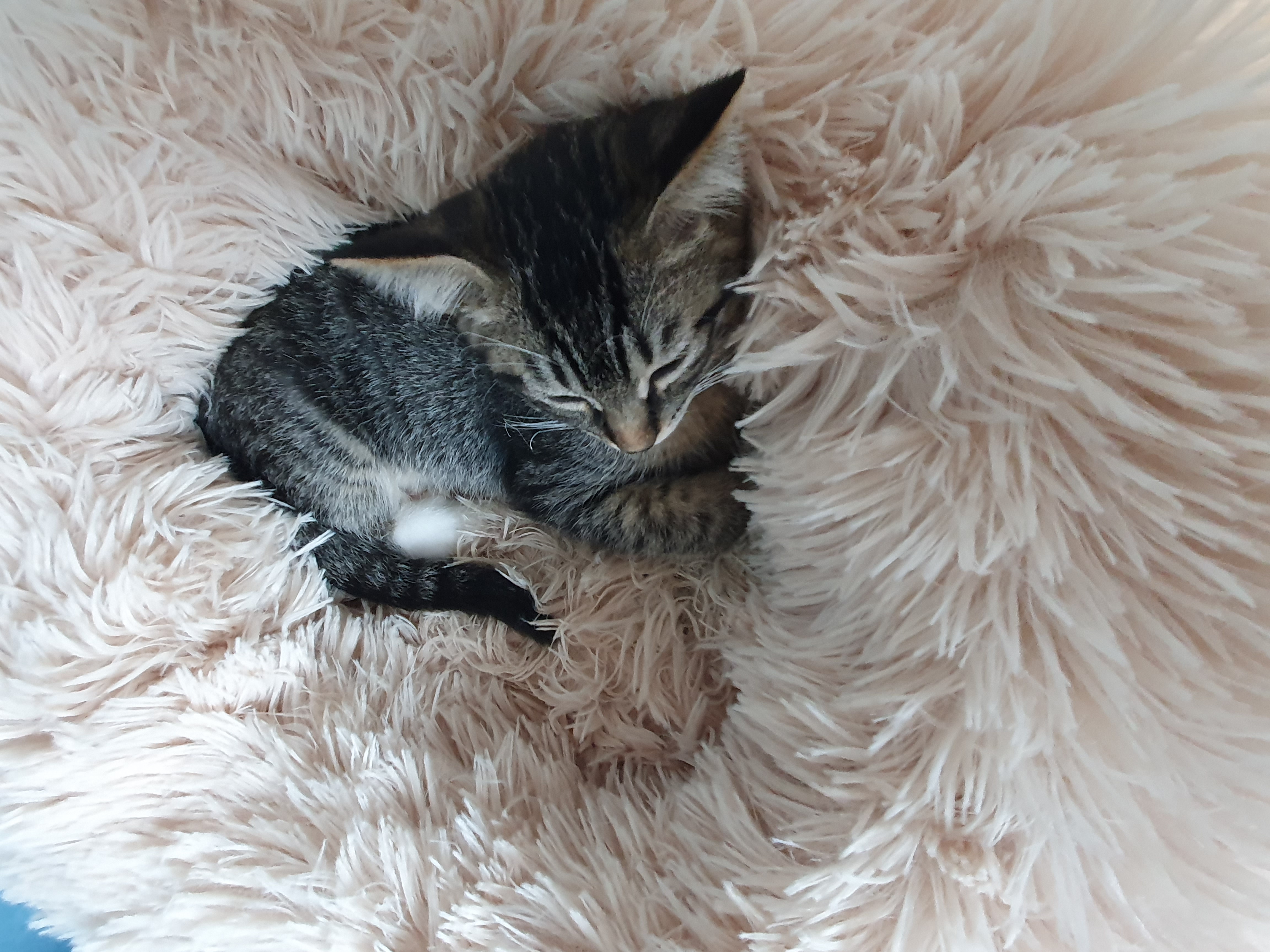 송이가 털방석에 들어가자, 담요로 감싸 주었습니다. 그러자 바로 자네요~
