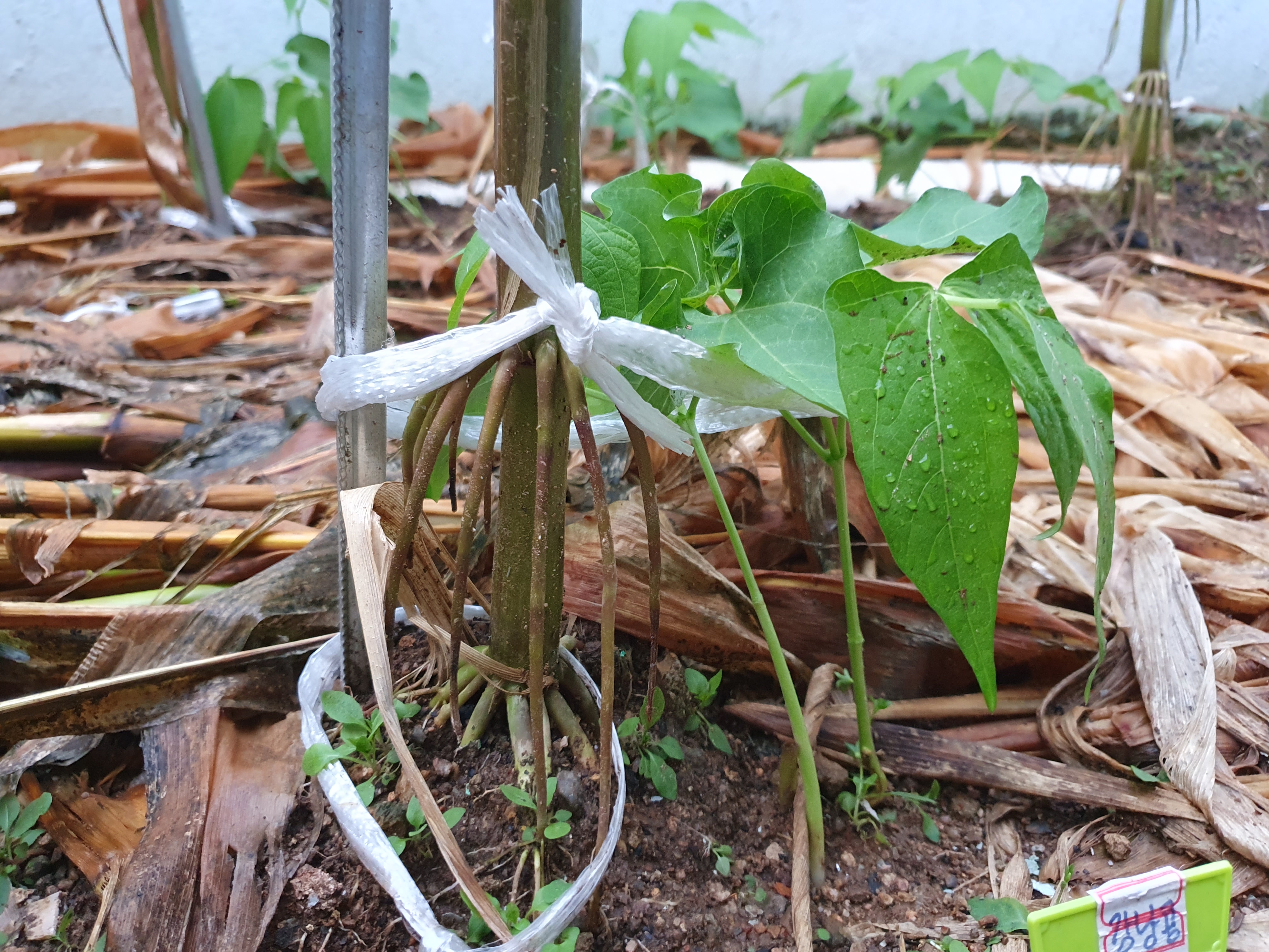 묶는 방법은 따로 없습니다. 강낭콩잎이 흙이 묻지 않도록 해주면 됩니다.