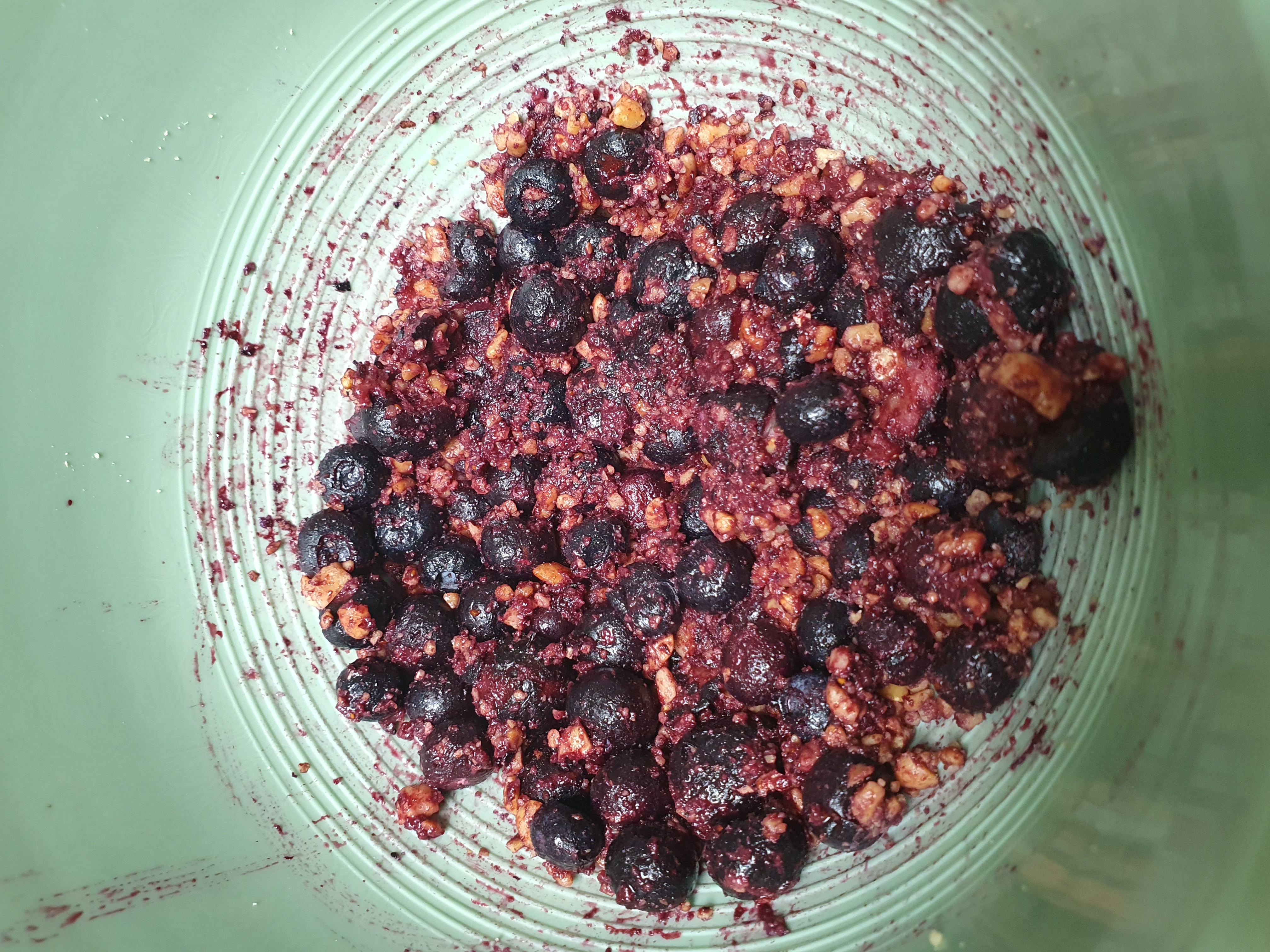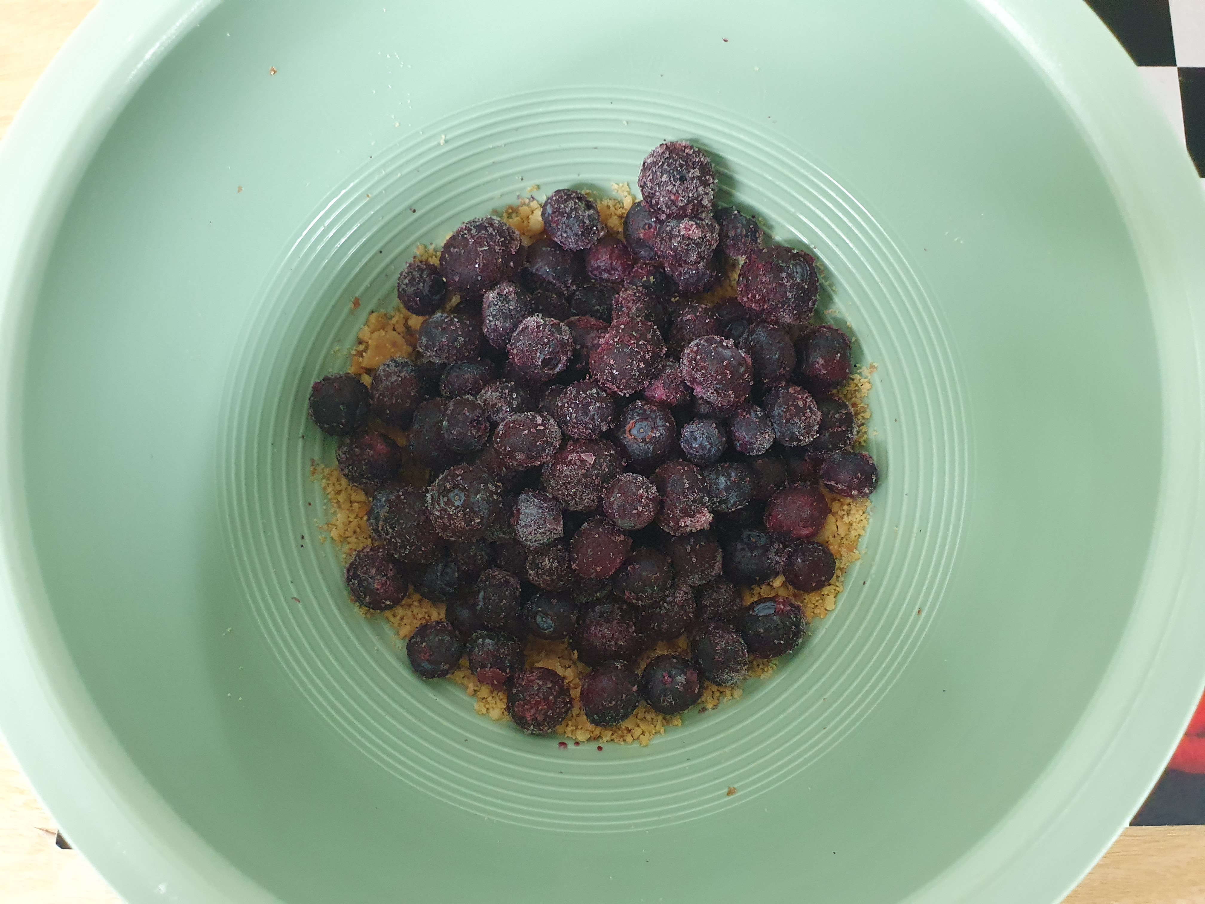 여기에 블루베리를 넣고, 냉동된 블루베리가 녹을 때까지 기다립니다.
