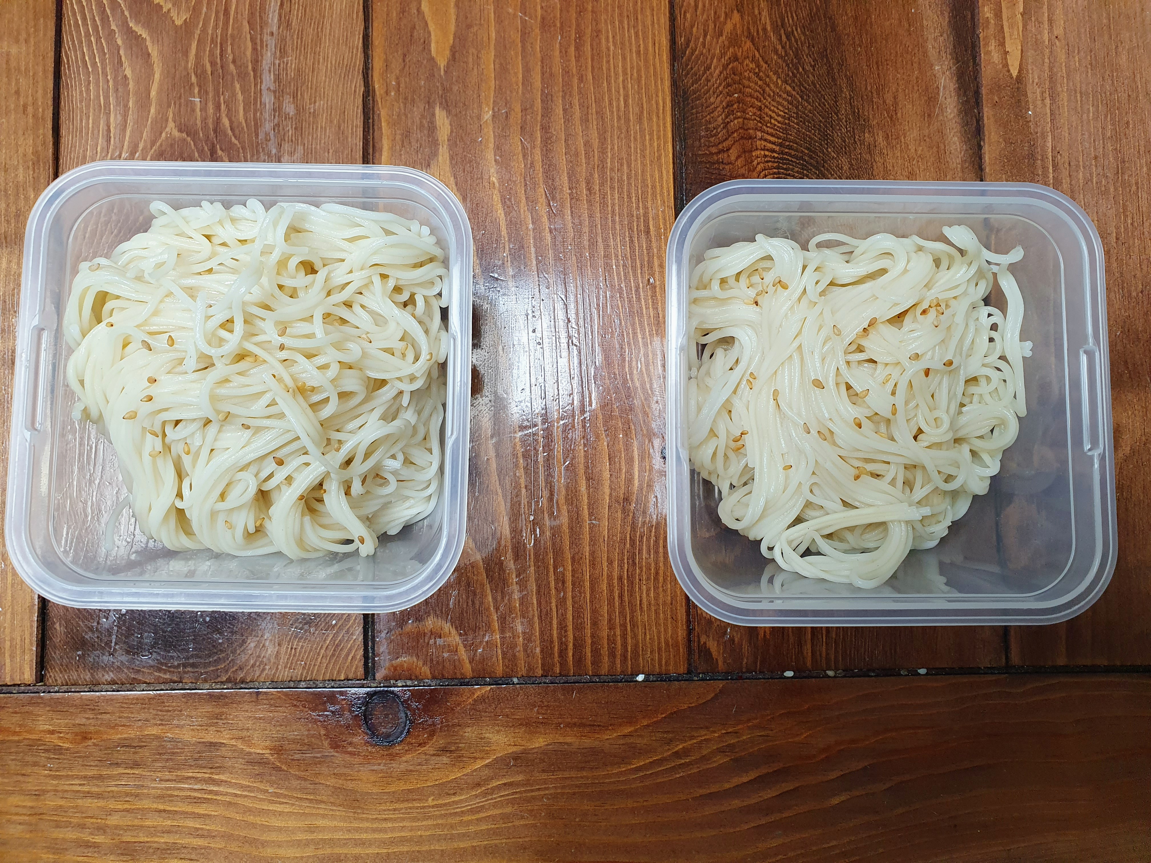 소면을 삶았는데 다 먹지 못했네요. 두 개의 사리가 남아서 어떻게 할까 하다가 냉장 보관을 하기로 했습니다.