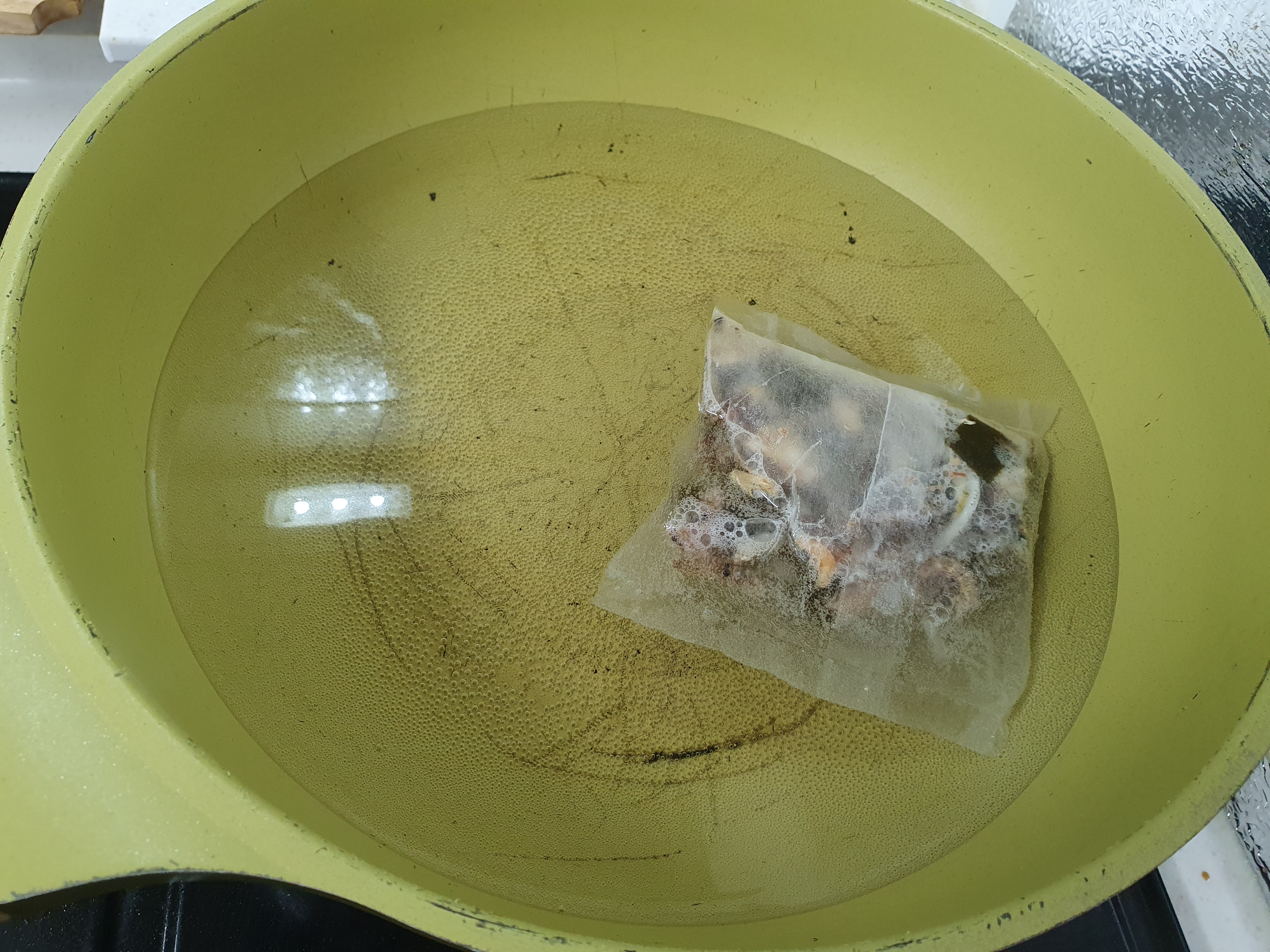 우선 육수티벹을 넣고 팔팔 끓여 줍니다.