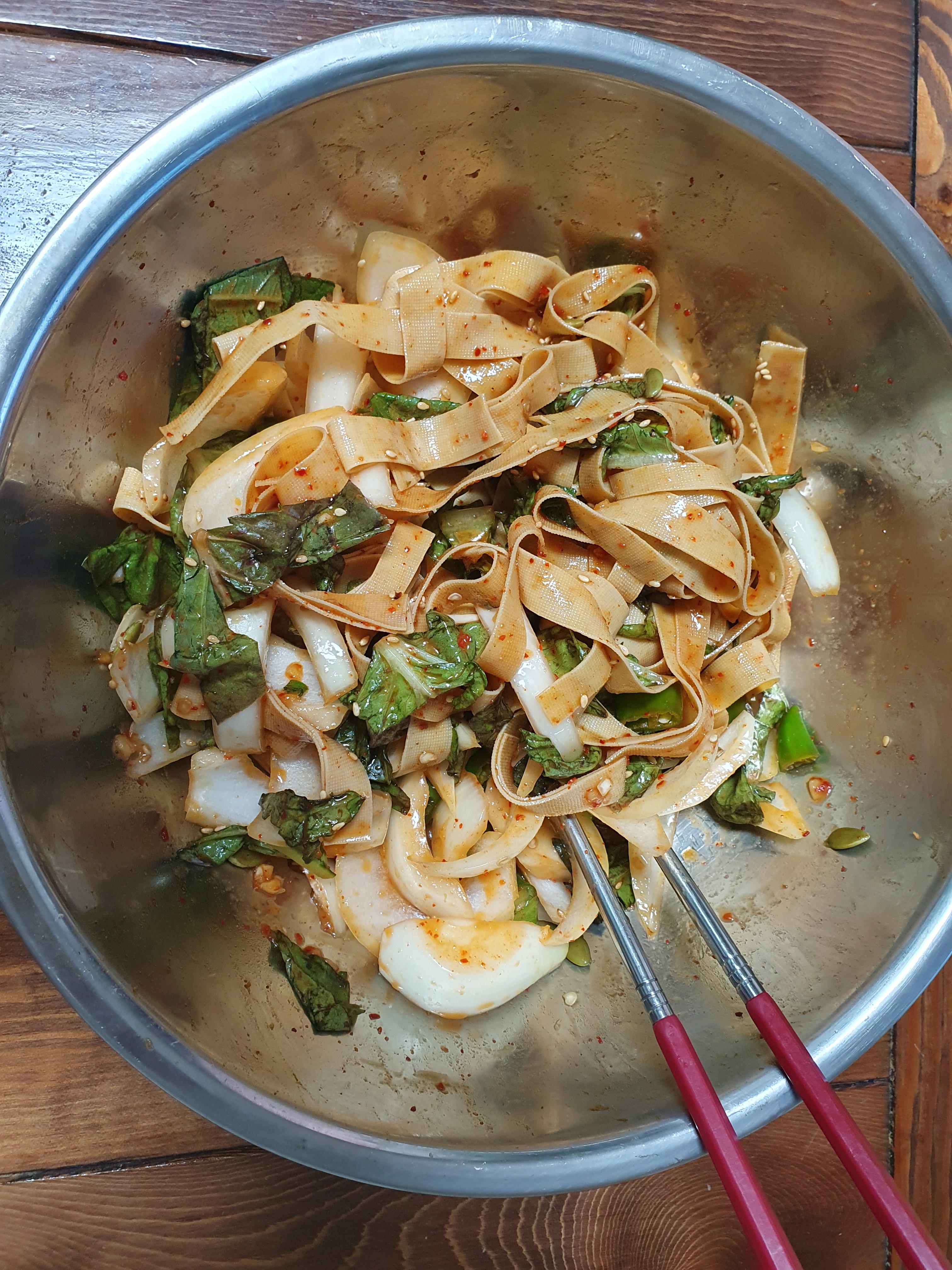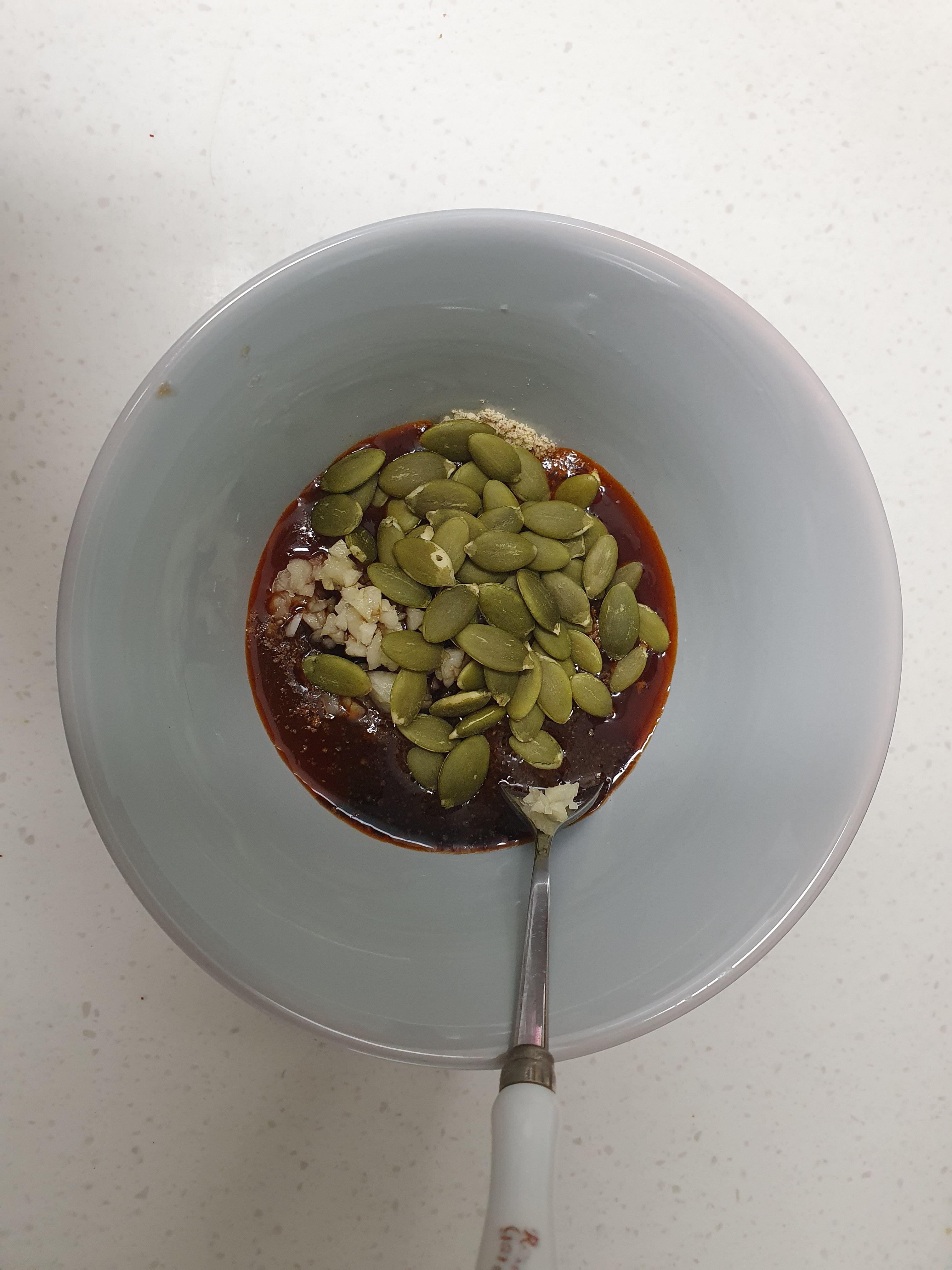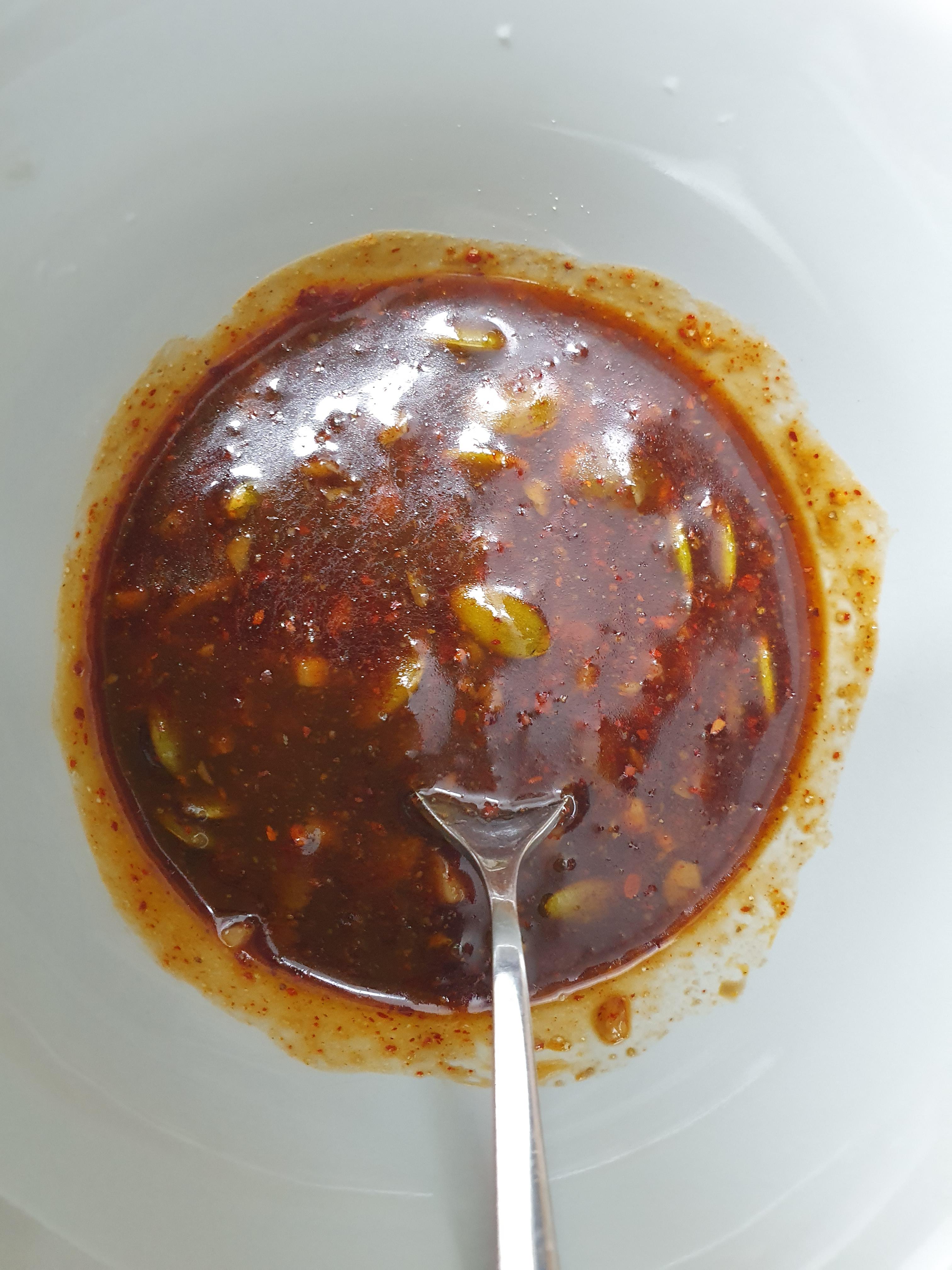 양념장으로는 고춧가루, 초고추장, 간장, 꿀, 마늘, 호박씨를 넣어서 만들어 줍니다.