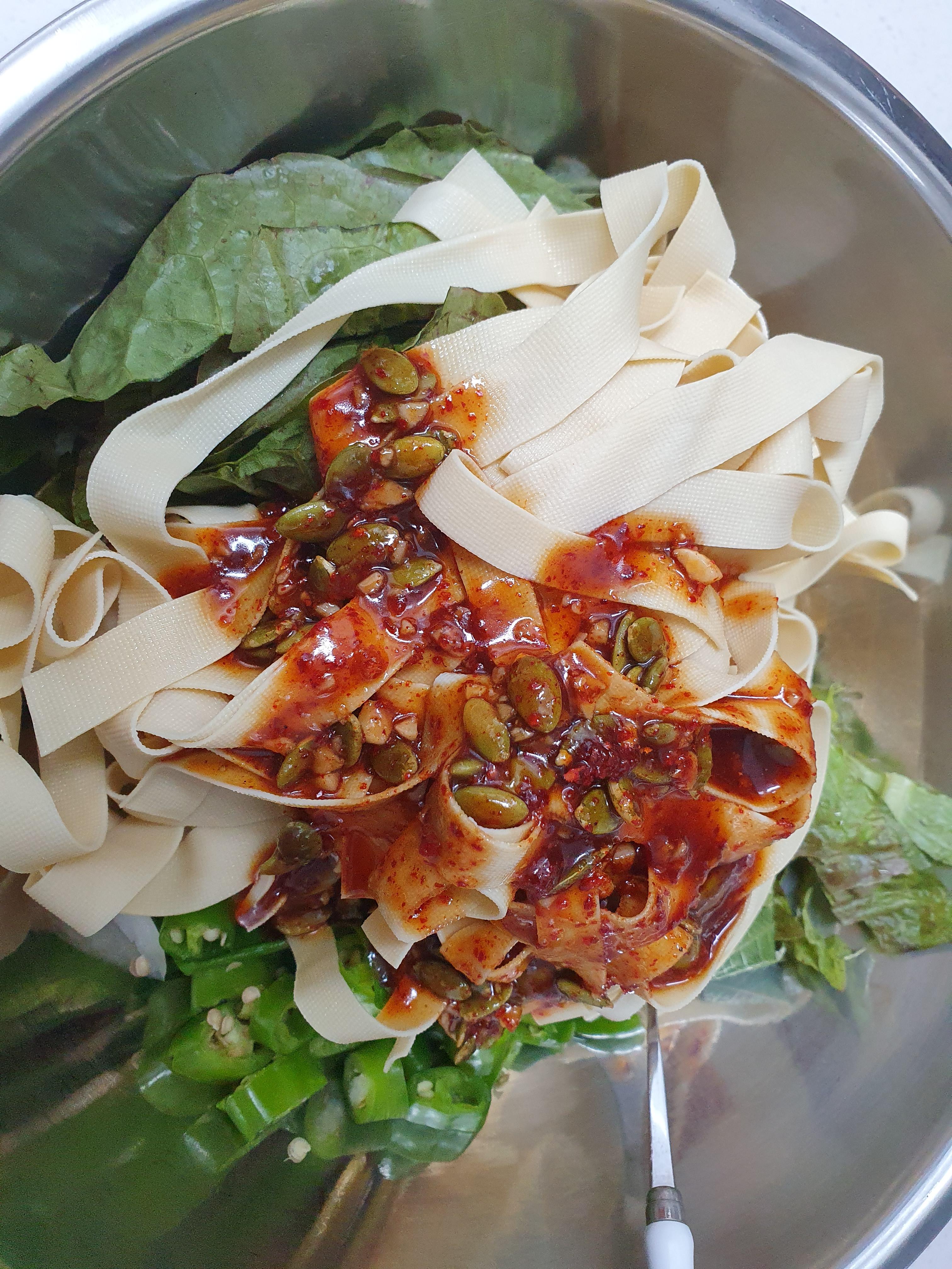 그래서 두부로 건조시켜서 만든 포두부로 무침을 만들어 보았습니다.